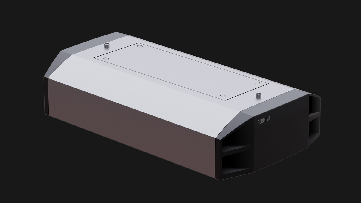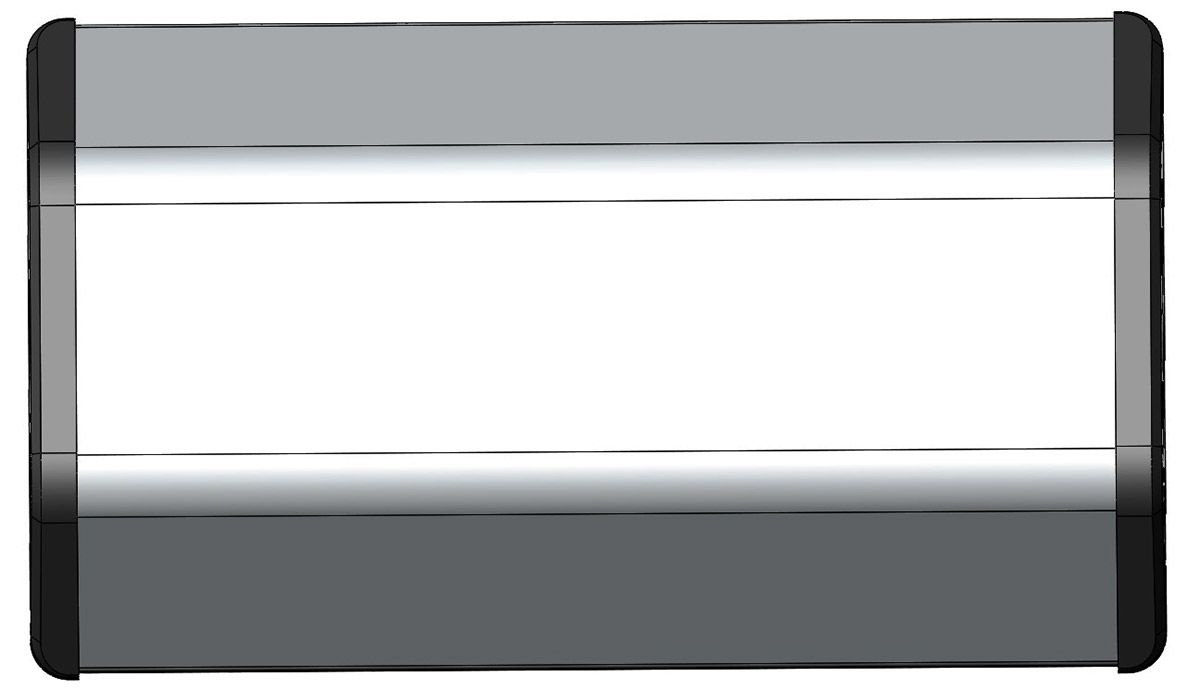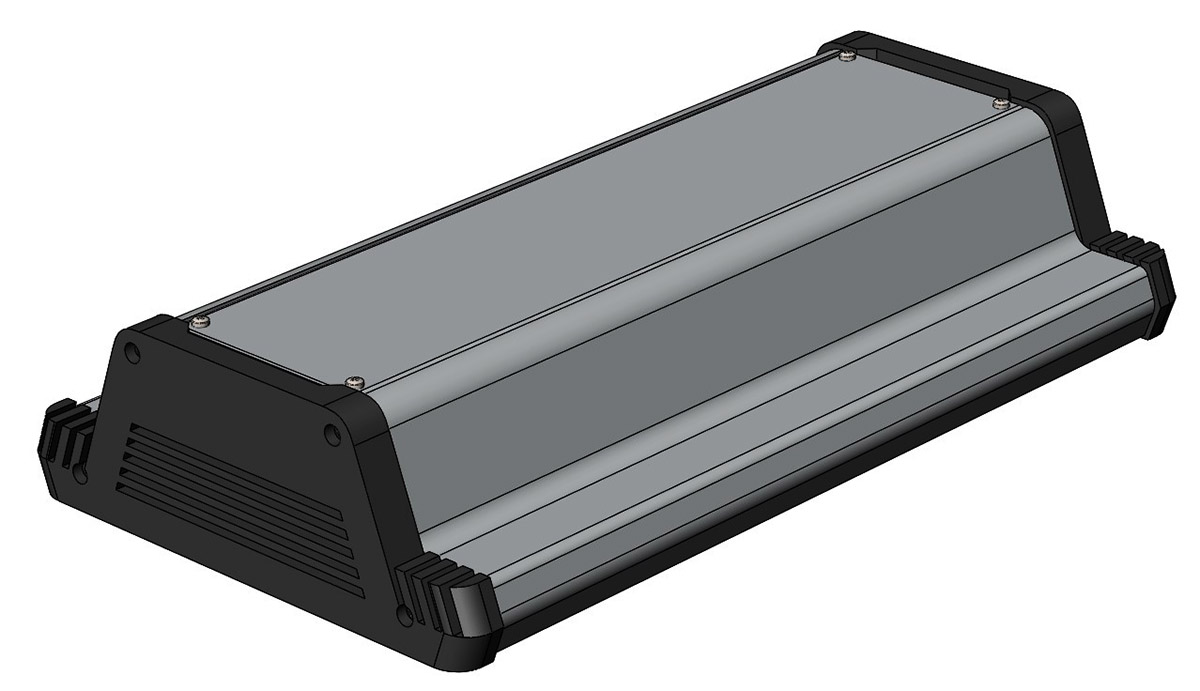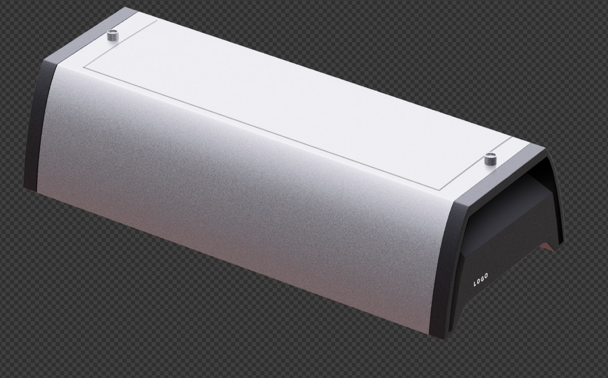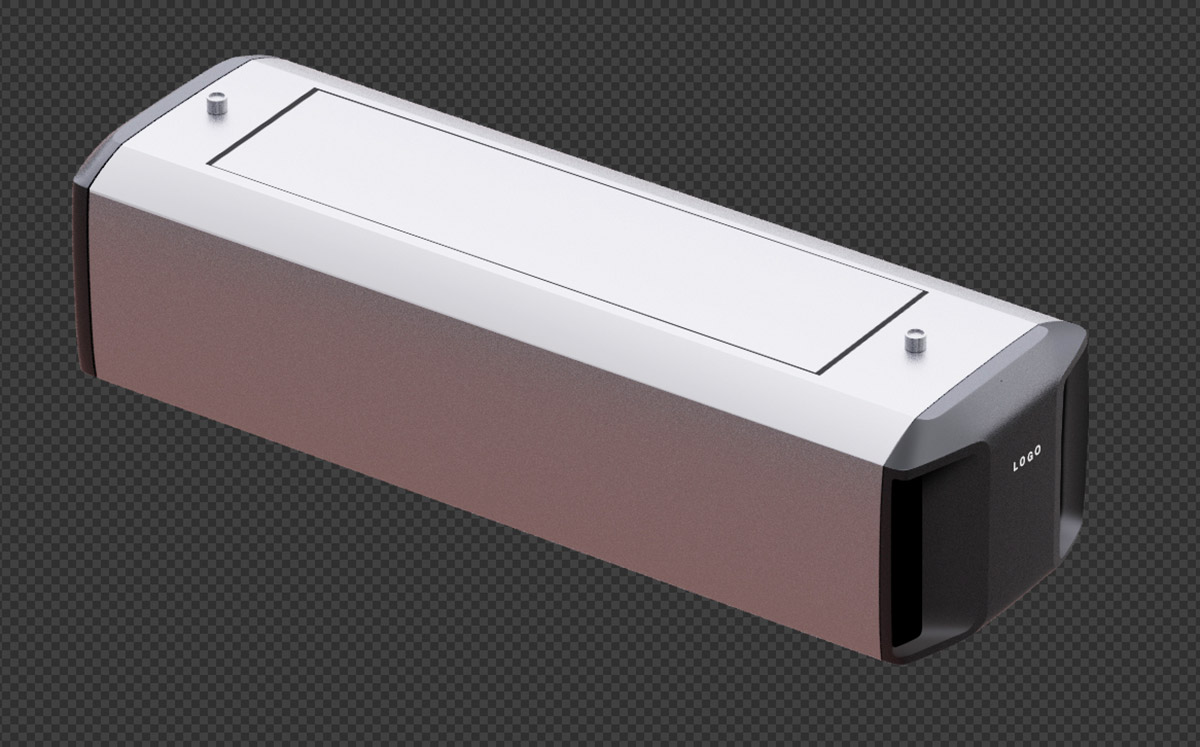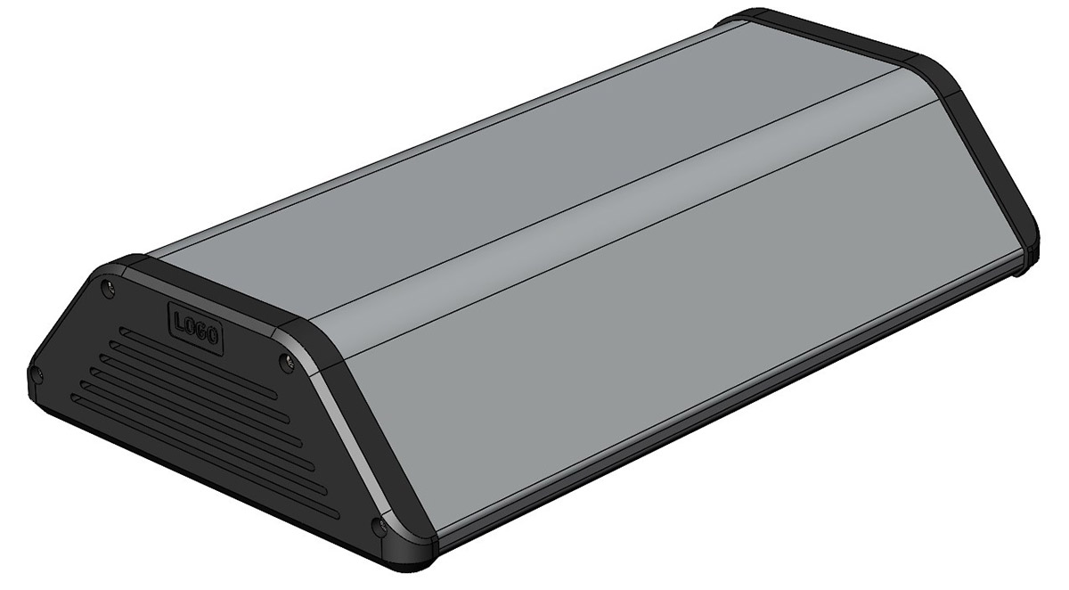 Одновременно заказчику показали самые первые наброски, и его заинтересовала вот эта версия. Понравился и дизайн прорезей на торцевых заглушках, и отказ от выдвижной планки отсека питания в пользу цельной откидывающейся крышки.