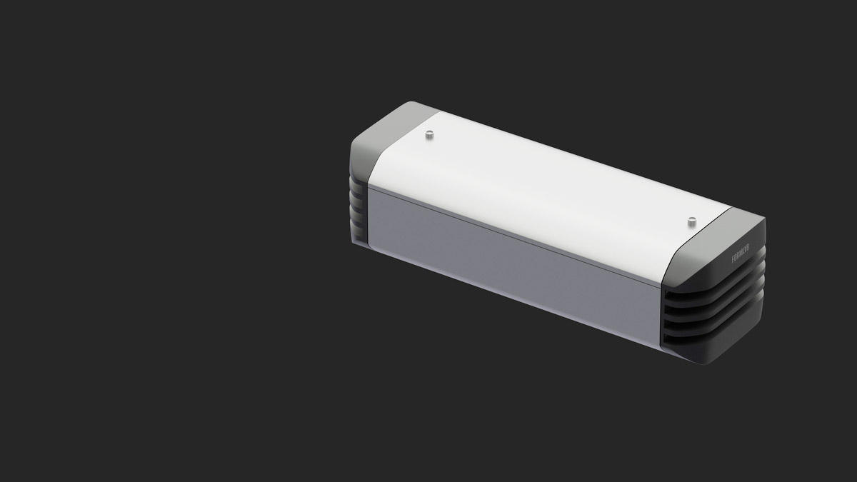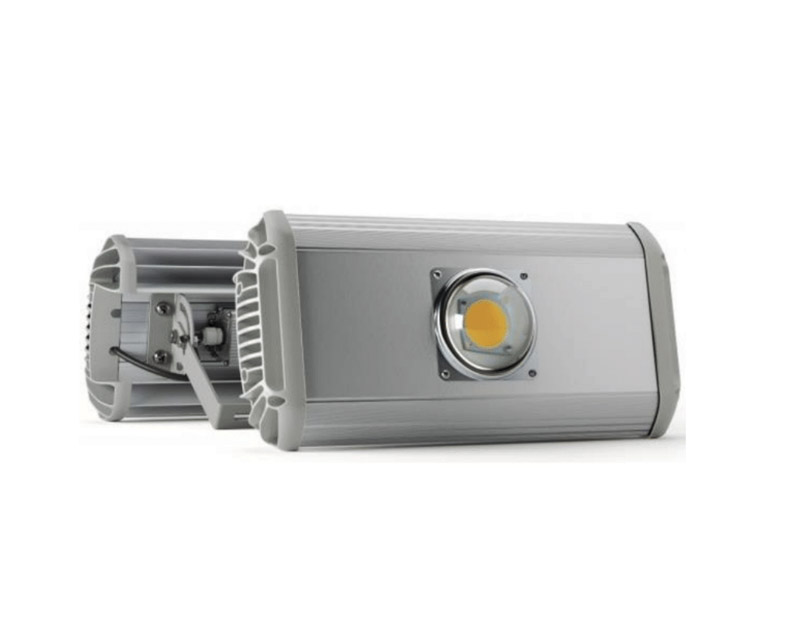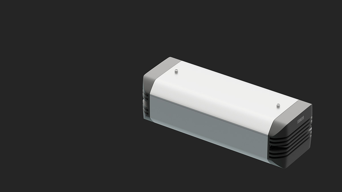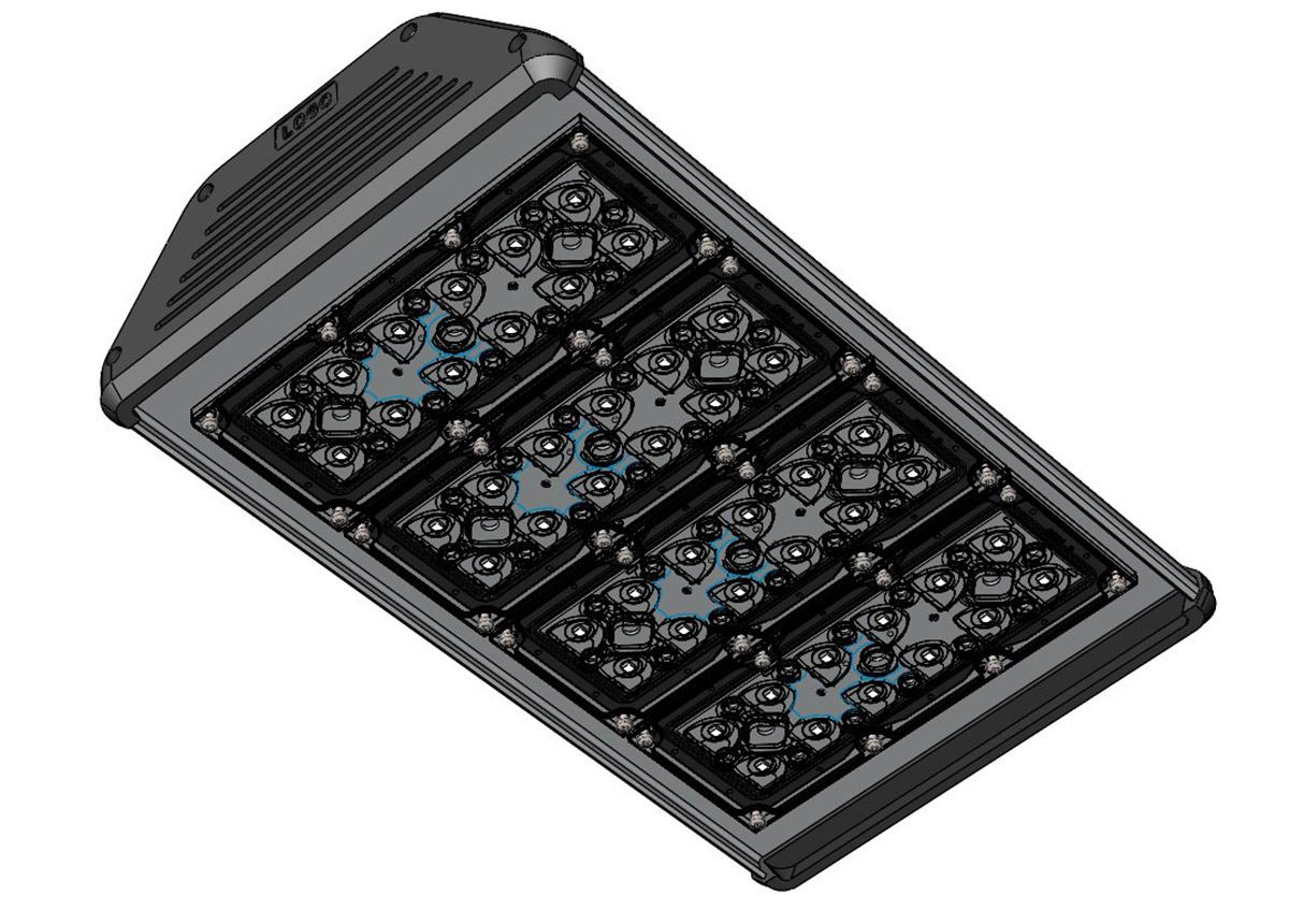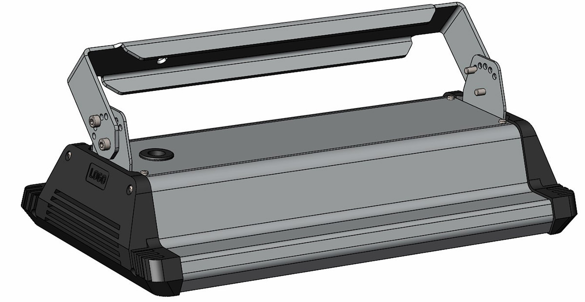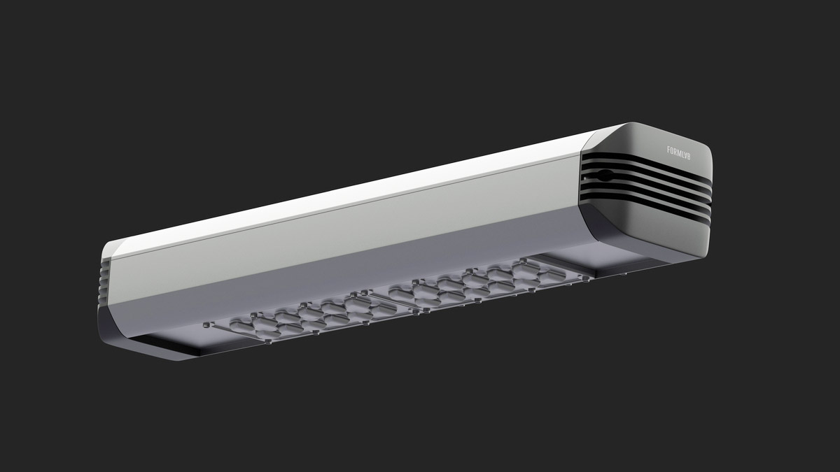 Корпус промышленного светильника будет выполнен из анодированного алюминиевого профиля — без внешнего оребрения. В нём должен быть отдельный отсек для источника питания со степенью защиты IP 54, который закрывается от прямого попадания осадков и пыли выдвижной планкой. При необходимости источник планируется менять без демонтажа светильника, сразу на высоте.