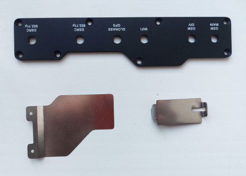 | Что нужно сделать? Задачи | 1. Ограниченные габариты корпуса. Плату и расположение элементов изменять нельзя. 2. Предусмотреть «уши» для крепления терминала в автомобиле. 3. Надежность и простота конструкции, легкость сборки на производстве. 4. Сборка деталей корпуса на винтах. 5. Резиновые прокладки для лицевой панели с разъемами антенн — чтобы корпус мог пройти испытания на влагозащиту. 6. Предусмотреть в конструкции отсек для размещения АКБ. 7. При разработке конструкции обеспечить теплоотвод от процессорного модуля для работы прибора в более широком диапазоне температур. 8. Одна из лицевых панелей корпуса должна демонтироваться — для замены АКБ. 9. Пыле- и влагозащита по стандарту IP52, устойчивость устройства к воздействию помех от электростатического разряда по ГОСТ Р 50607-2012 (ISO 10605:2008), а также вибрационным и ударным нагрузкам. 10. Обеспечить работоспособность прибора при эксплуатации в температурном диапазоне от -40 ºC до +85 ºC. 11. Исключить из состава конструктива легковоспламеняющиеся и выделяющие при горении вредные вещества материалы. 12. Предусмотреть обозначения разъемов на лицевой панели и вырезы под них. Оставить место для маркировочной этикетки на верхней панели |
