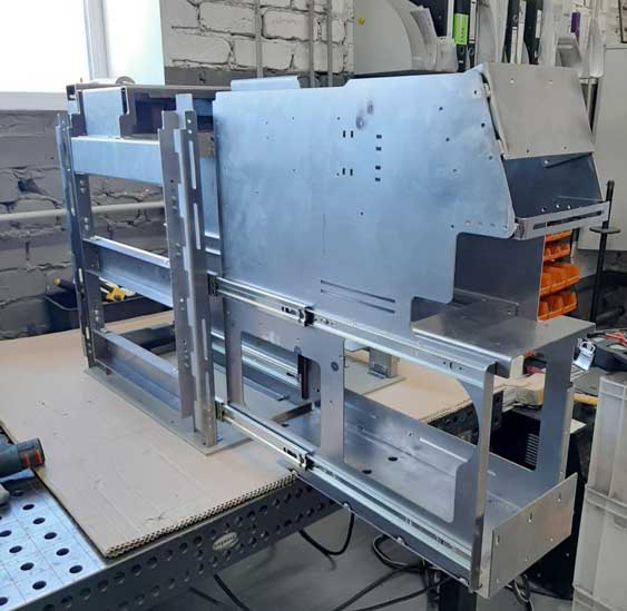 Нужен новый корпус депозитной машины. Это такой гибрид кассы и сейфа: кассир кладет в купюроприемник машины деньги, она их пересчитывает и сразу же зачисляет на указанный в её настройках расчетный счет юрлица. Потом из банка приезжают инкассаторы и забирают купюры.