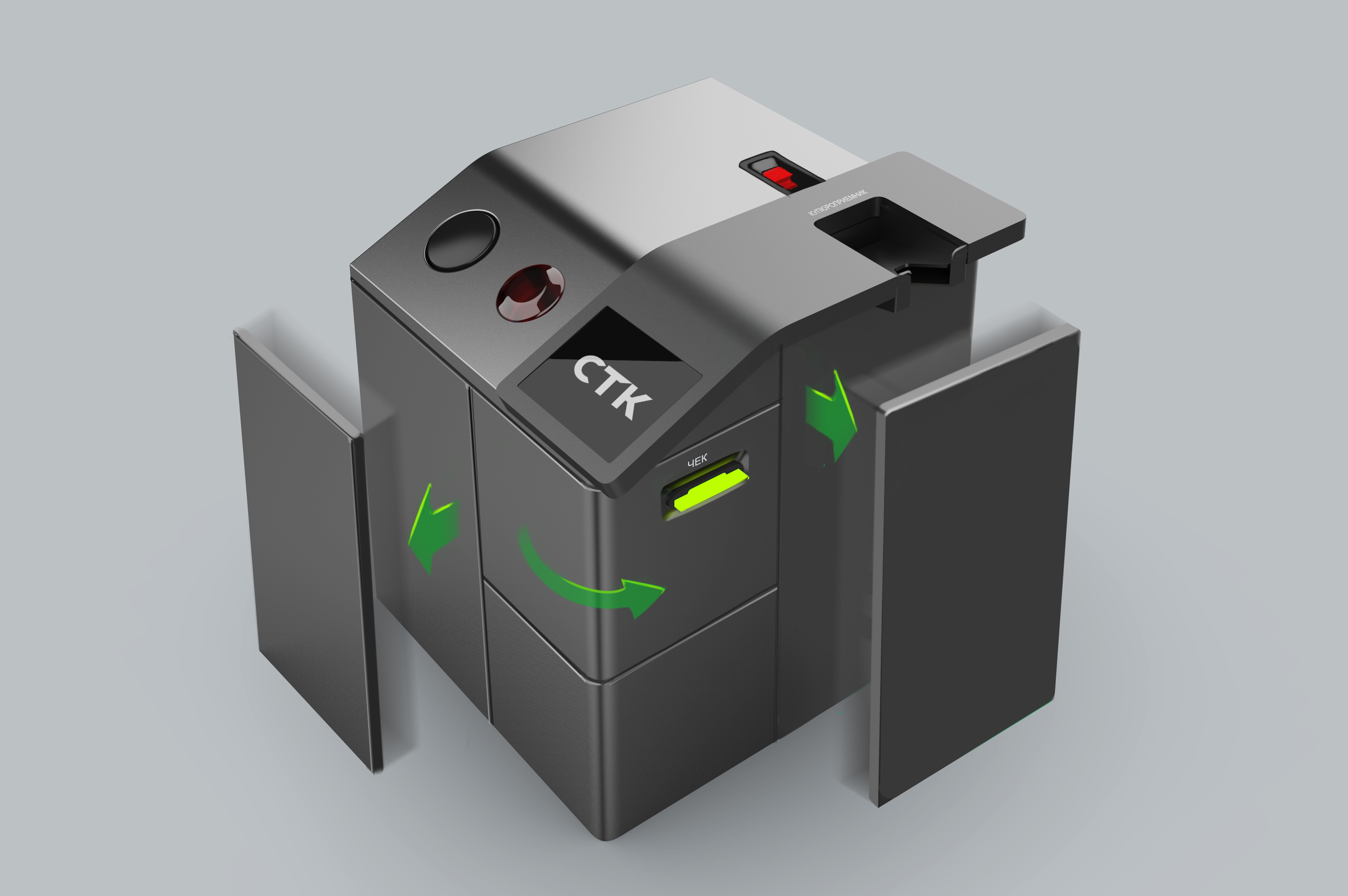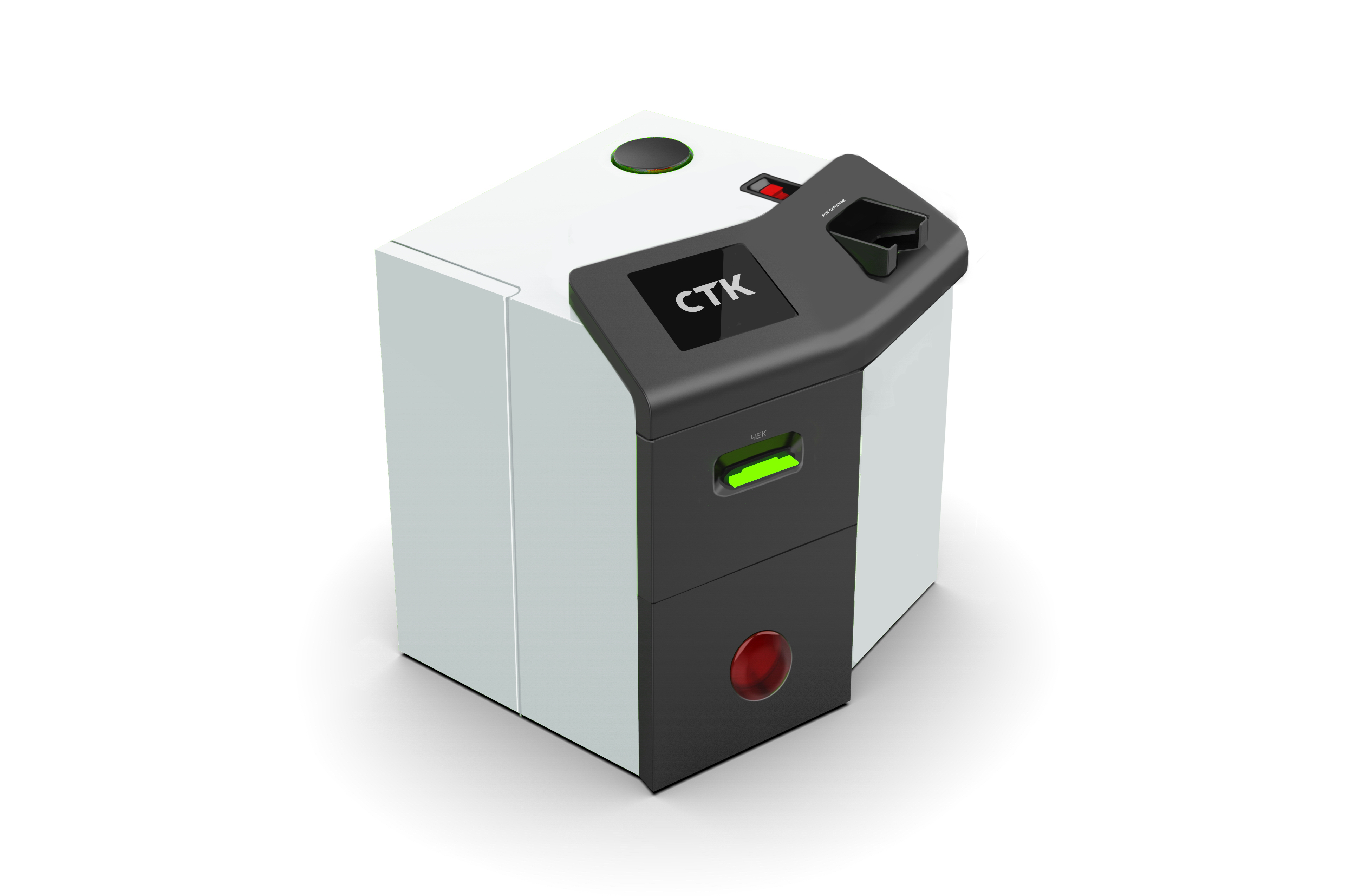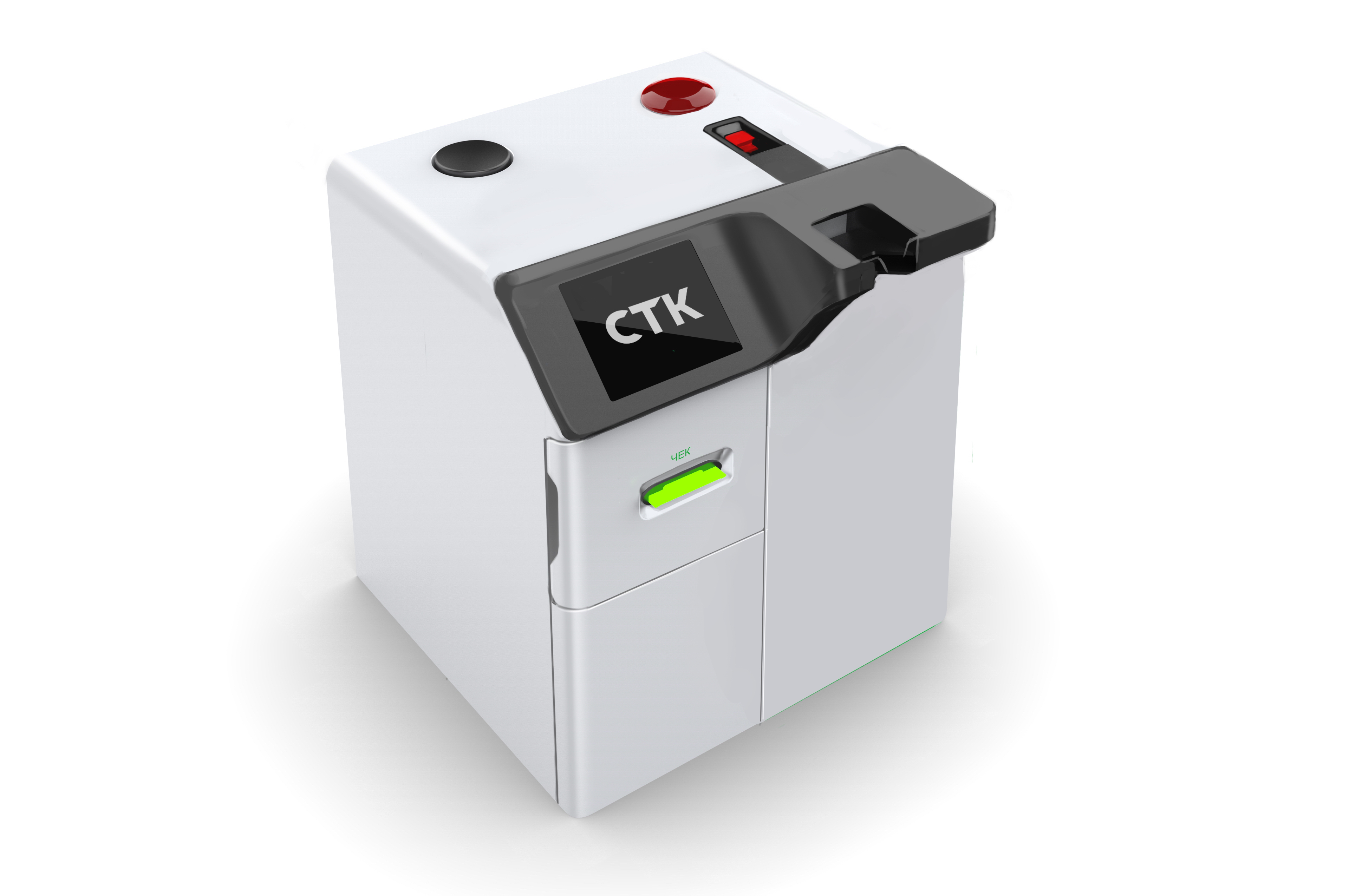 | Решения и объем работ | На эскизах мы показали несколько вариантов внешнего вида машины, в том числе и с дисплеем под углом. Но такой дизайн заказчику не подошел, остановились на консервативном варианте. Довели проект до изготовления прототипа и обнаружили недостатки конструкции: забраковали покупные петли дверцы сейфа как неработоспособные, нашли угрозу безопасности (через зону кассира был доступ к USB-хабу); поняли, что неудобно заправлять бумагу в термопринтер и предложили решение, дополнили конструкцию кабель-каналами, которых изначально не было в компонентах и т.д. Согласовали правки и перешли к изготовлению второго прототипа. |