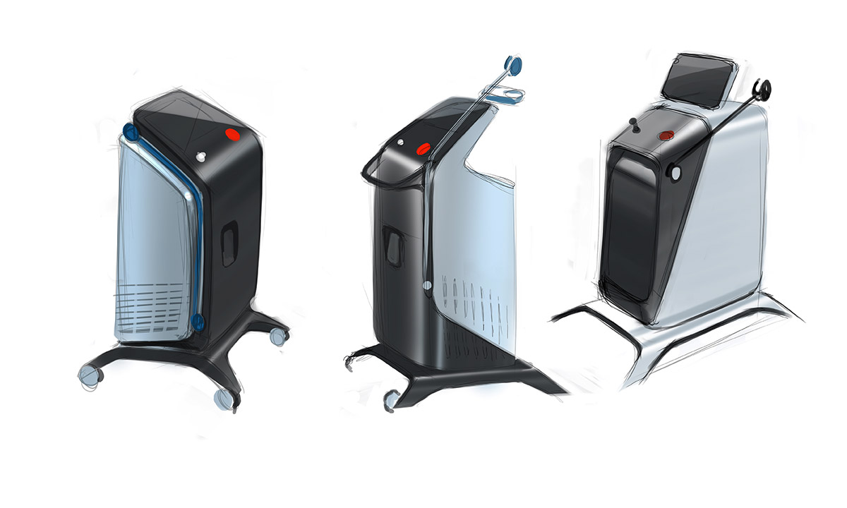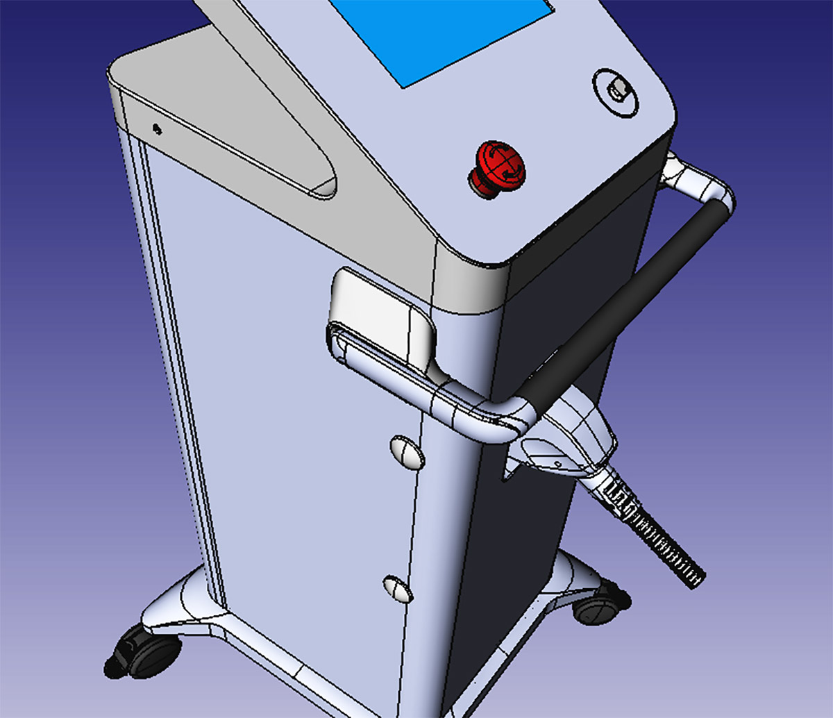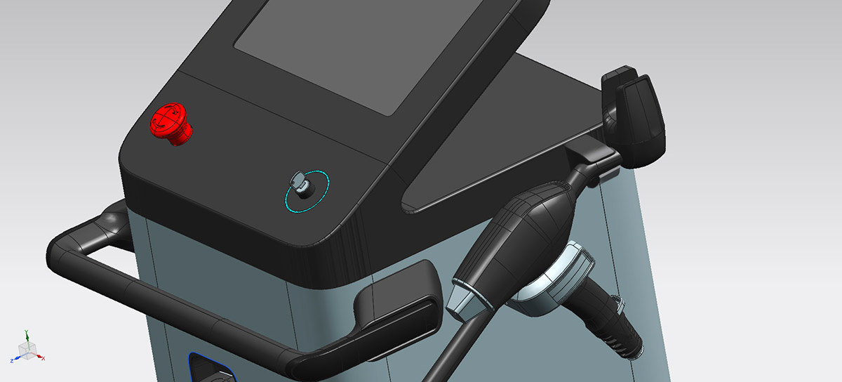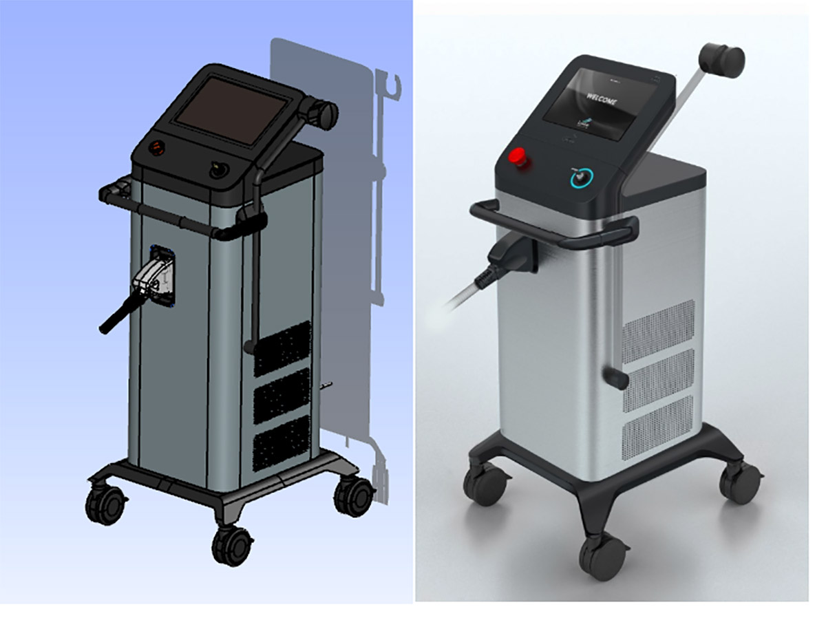 Работаем над новой моделью стационарного вертикального аппарата для лазерной эпиляции. Лазерный луч разрушает волосяные фолликулы — через три недели волос там, где не надо, у пациента не будет.