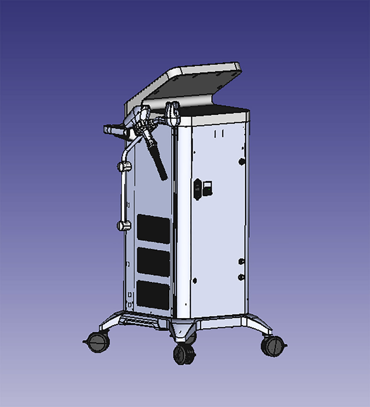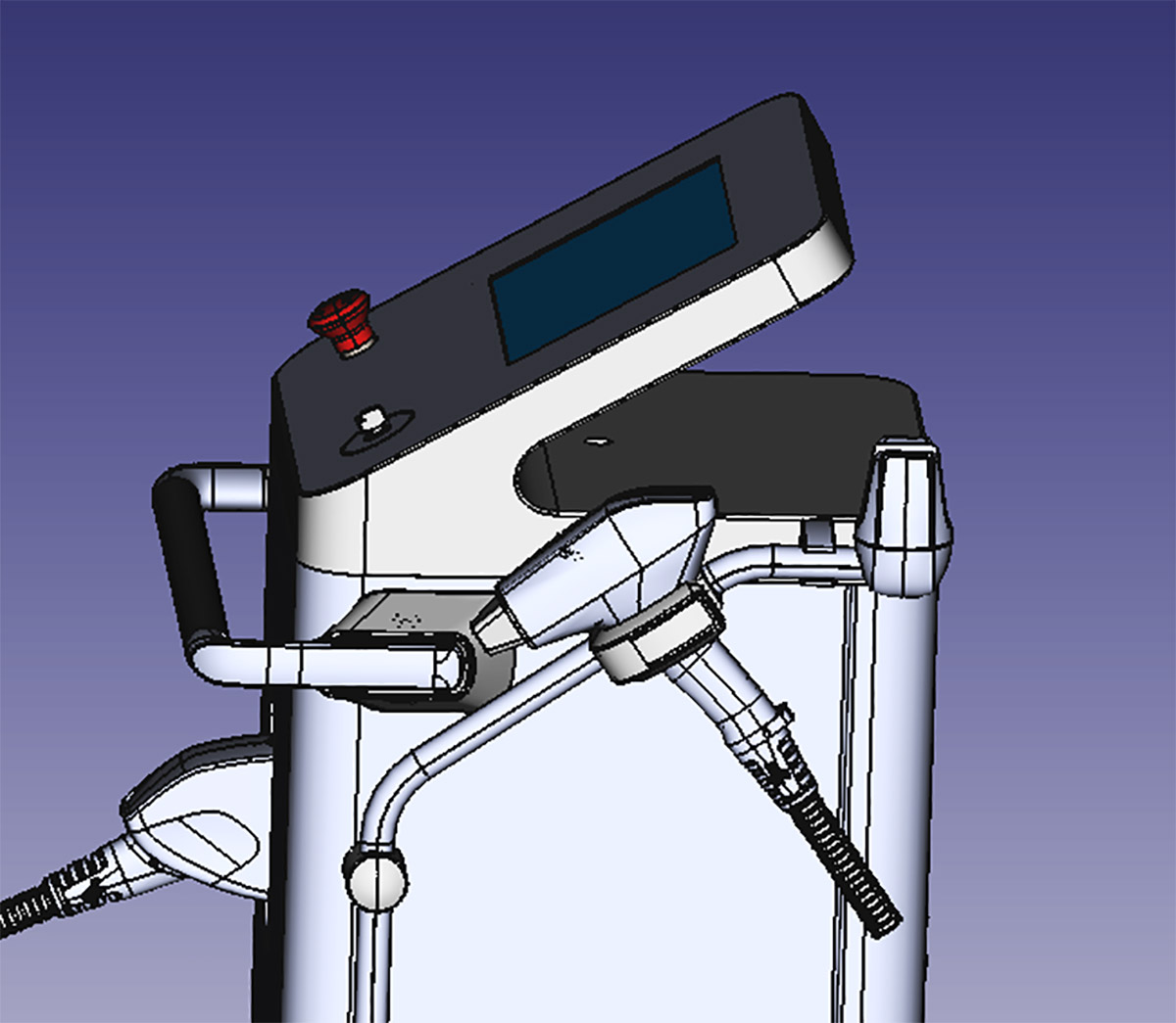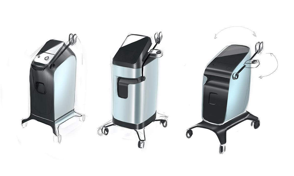 Работаем над новой моделью стационарного вертикального аппарата для лазерной эпиляции. Лазерный луч разрушает волосяные фолликулы — через три недели волос там, где не надо, у пациента не будет.
