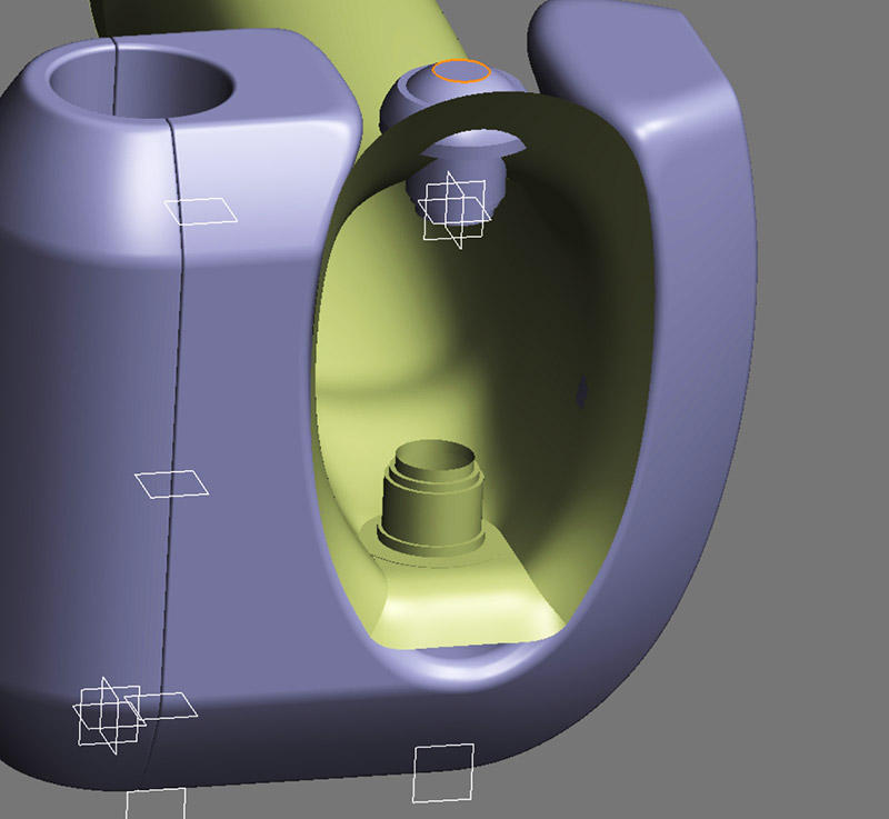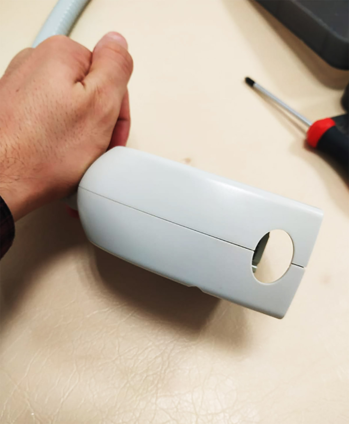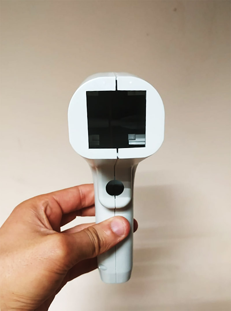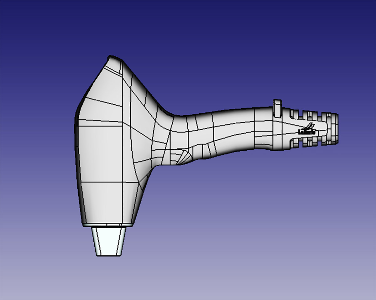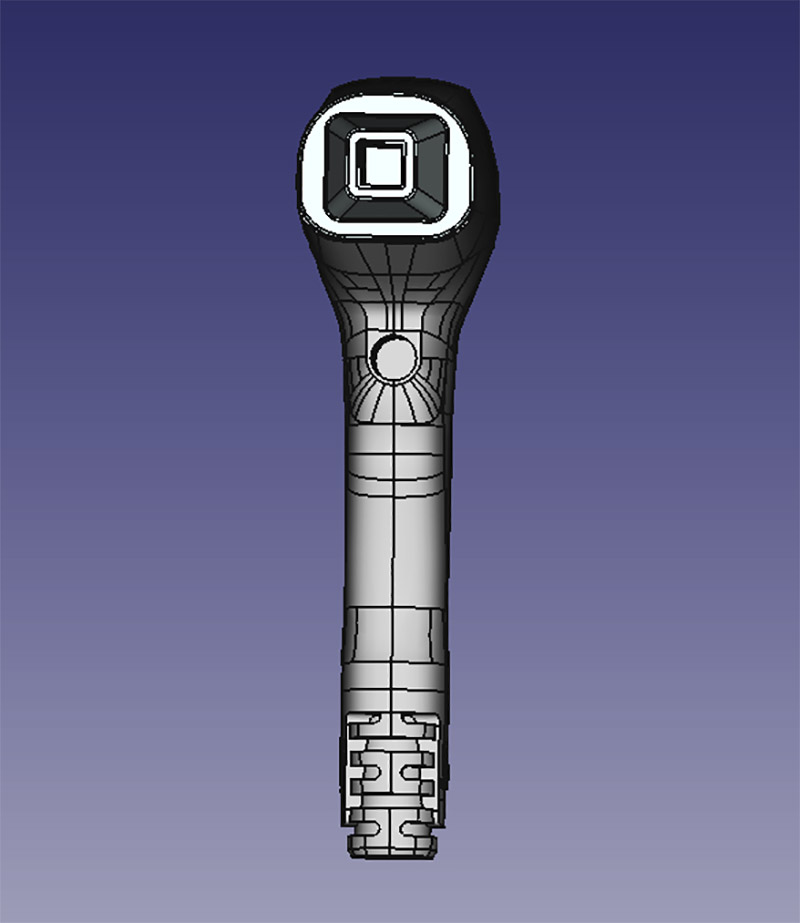 Ручка насадки — в том числе и с отверстиями под пальцы, чтобы оператору было удобно работать (эргономика у образца, на который ориентируемся при разработке, плохая — прибор легко может выскользнуть из рук):