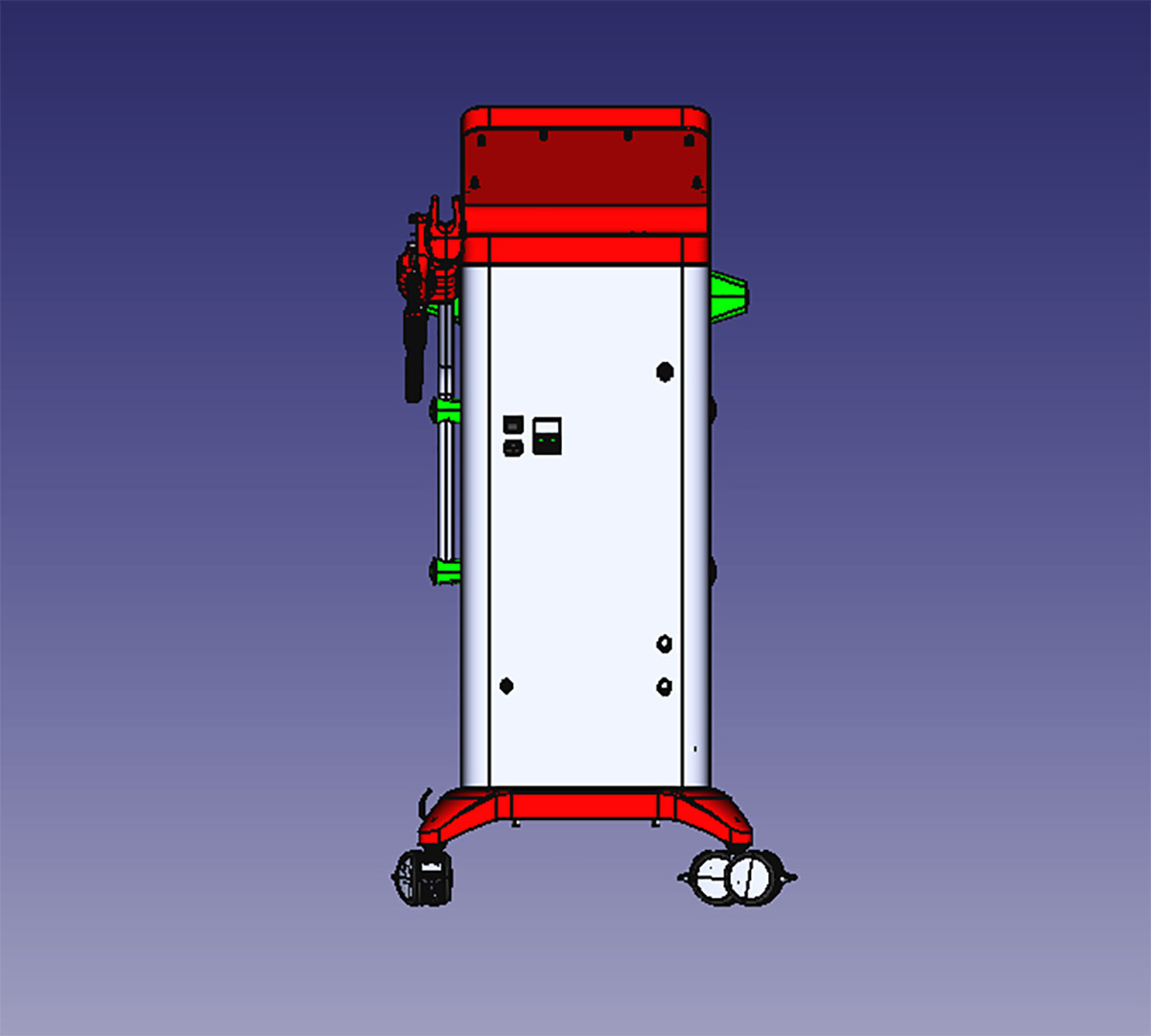 В составе конструкции аппарата достаточно много специфических элементов: это и ключ для рабочего экрана — защита от случайного включения, и кнопка аварийного отключения, и особая деталь, предотвращающая попадание шланга насадки на пол, и много других мелочей, которые на самом деле важны как для корректной работы аппарата, так и для того, чтобы оператору было удобно работать.