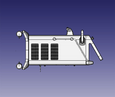 Планируется, что кожух основного корпуса будет из стального листа, закреплённого на металлической раме, ножки-колёсики — из пластика. Кожух закроет раму с трёх сторон, остальные элементы — задняя крышка и опять же светодиодная подсветка.