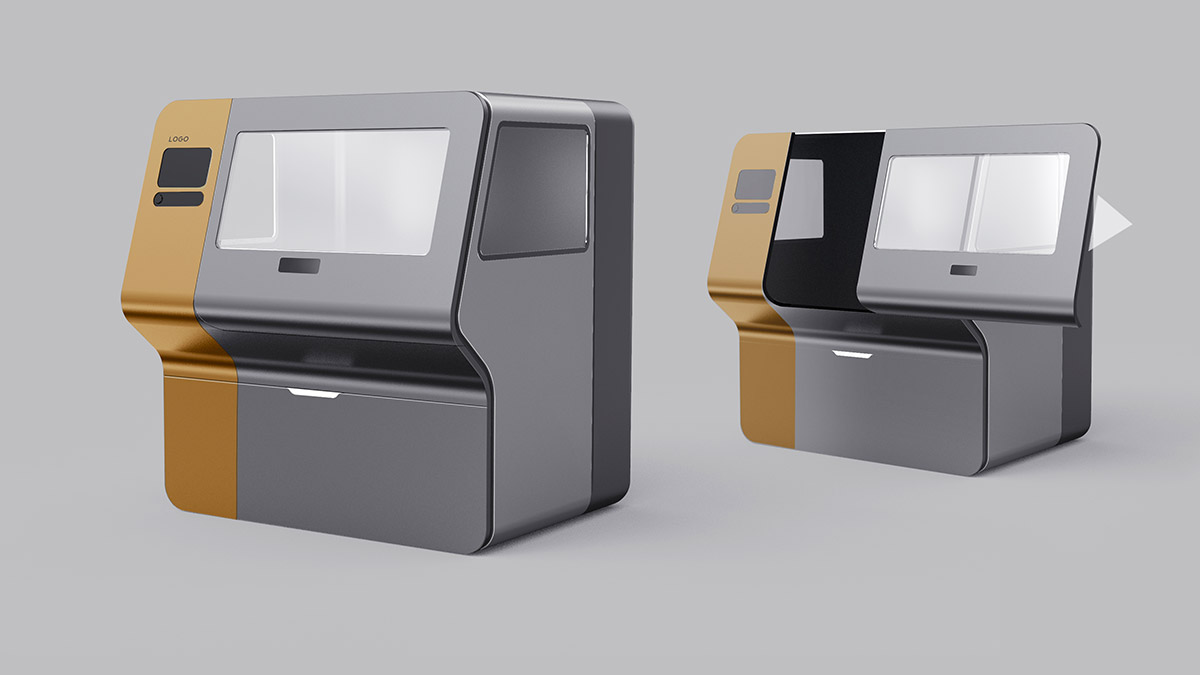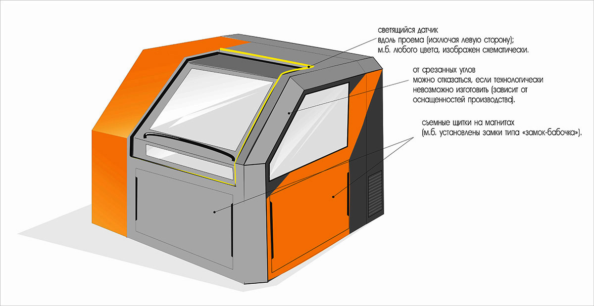 На дверце необходимо предусмотреть «статусную» LED-подсветку в виде линии (прямой или изогнутой), которая меняет цвет в зависимости от статуса станка (режим ожидания/в работе).