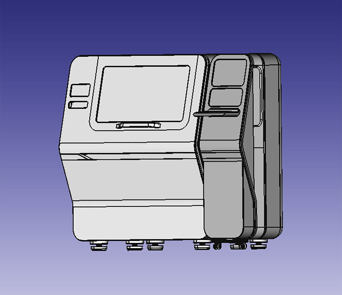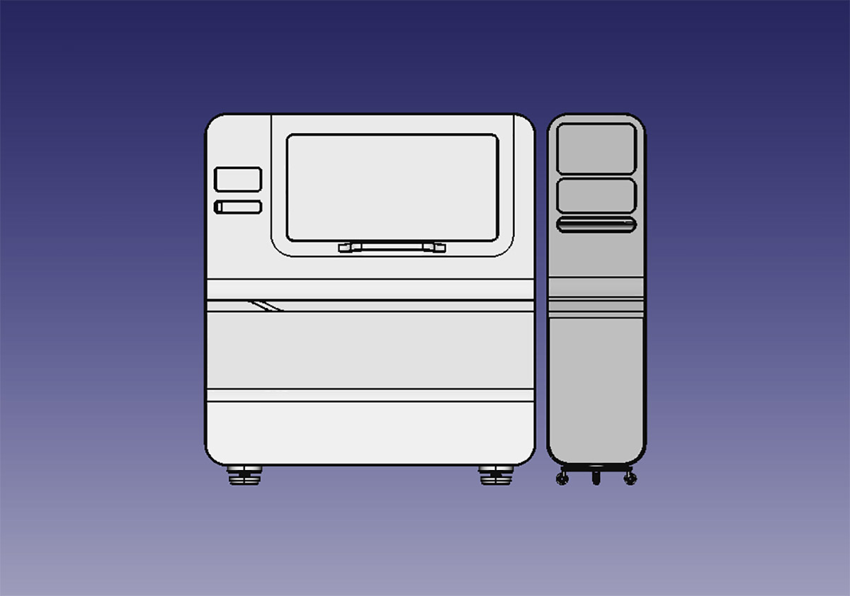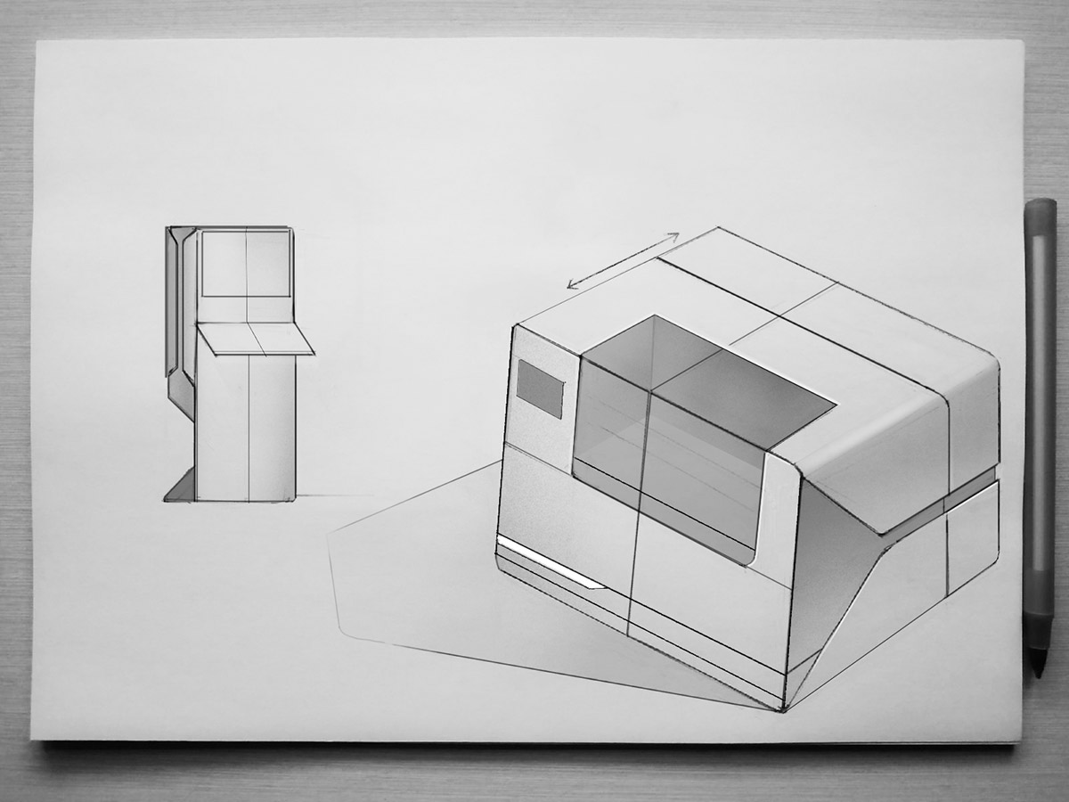 Что же касается дверей для доступа к рабочей камере, то их не будет. Нужна одна большая сдвижная дверь, смещённая в правую сторону. А на место, которое освободится с противоположной стороны, можно установить монитор, например. В крайнем случае — разместить там логотип производителя.