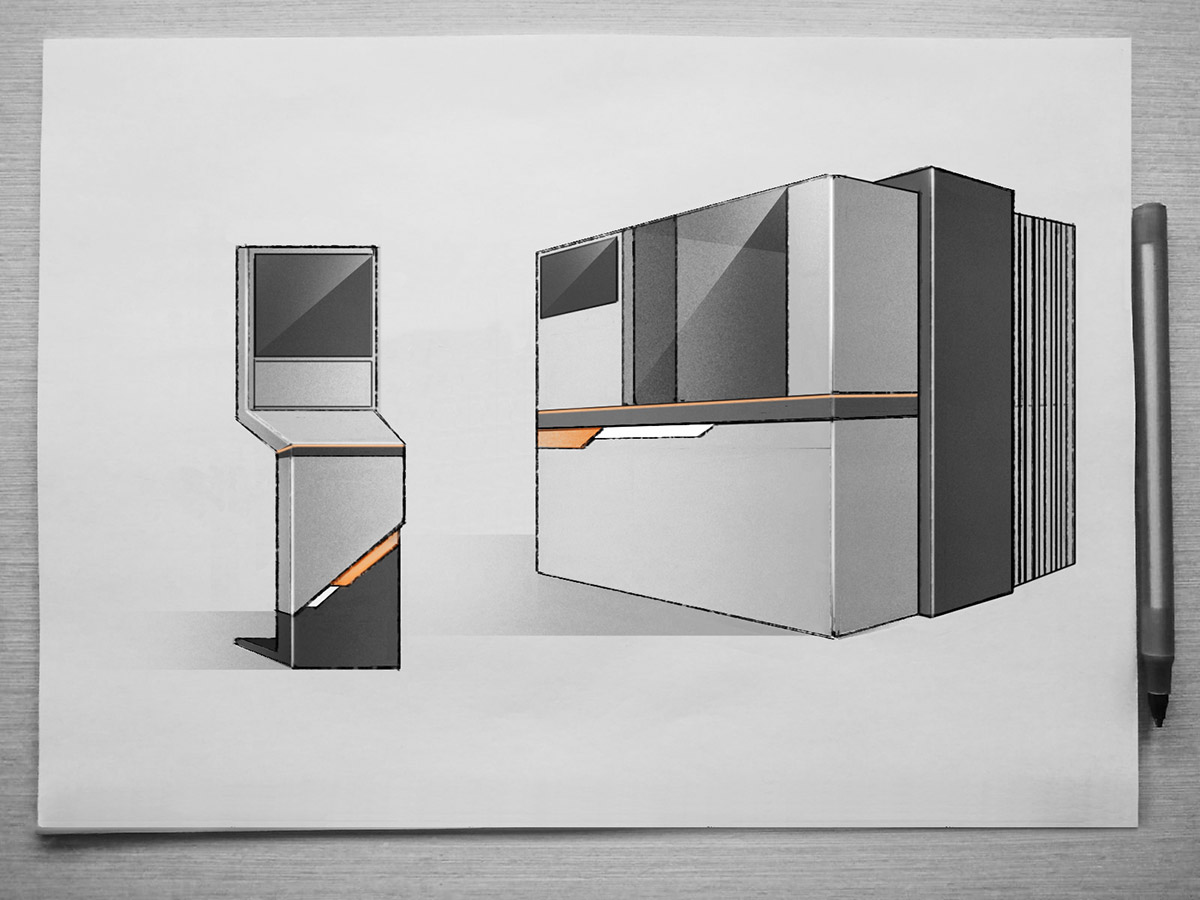 Дизайн, по сути, должен выполнять представительские функции — чтобы уже при первом взгляде на станок любому сразу становилось ясно, что такие устройства могут стоять только на продвинутых производствах. Цветовая гамма — светло-серая с чёрным и элементами оранжевого или жёлтого.