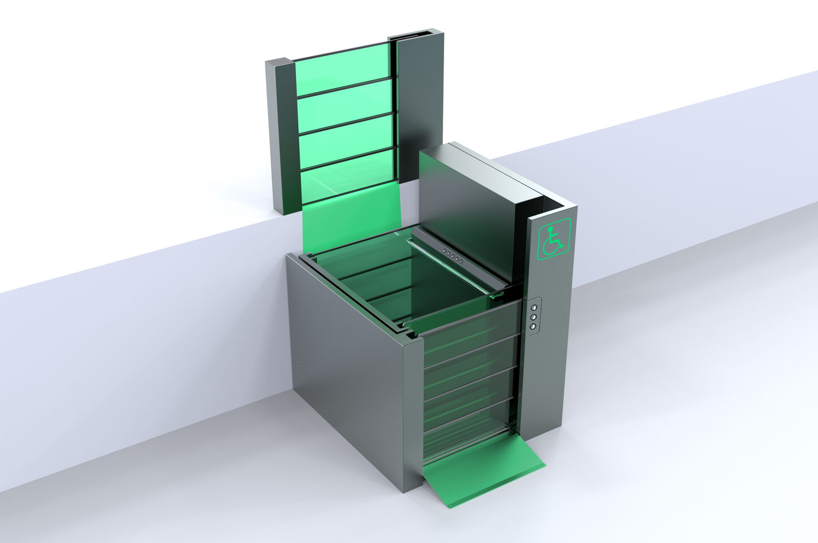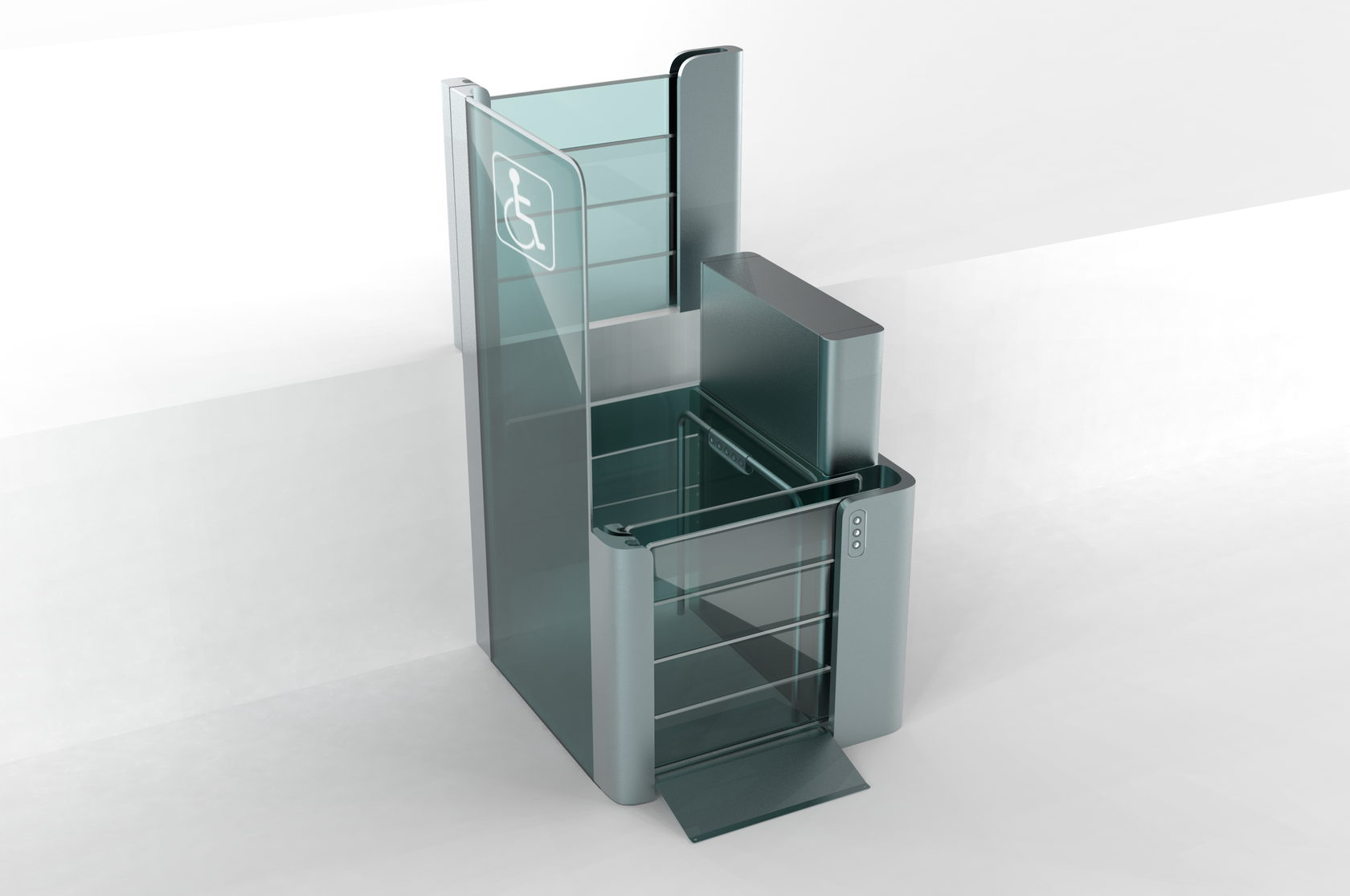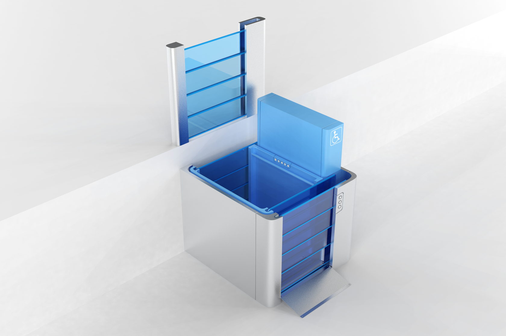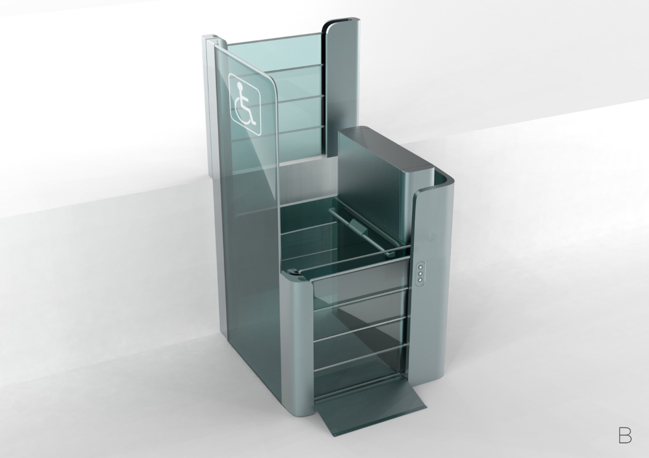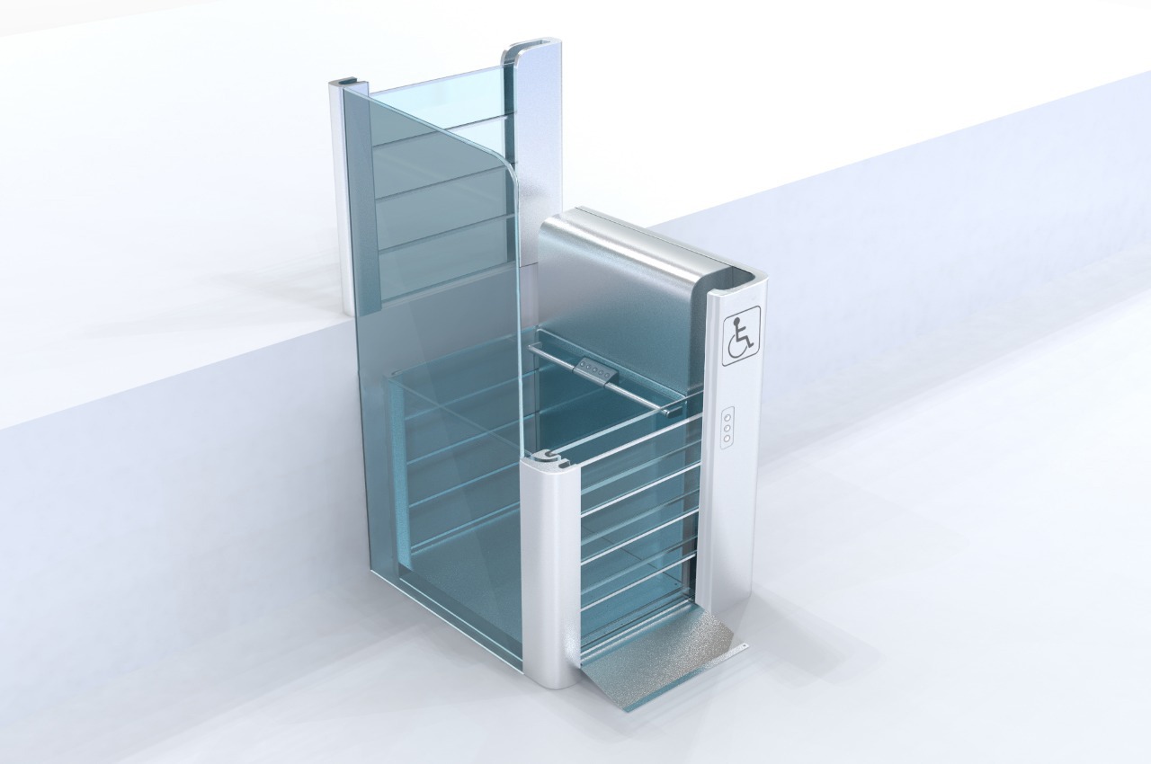 Пандусы на входе в здания для инвалидов — это полумера. Забраться на инвалидной коляске наверх, пусть даже это всего лишь несколько ступеней, — задача более чем серьёзная. ОКБ «Турбомаш» создаёт и производит оборудование для инвалидов, а Формлаб взялся за разработку нового дизайна подъёмника. Вот его предыдущая версия: