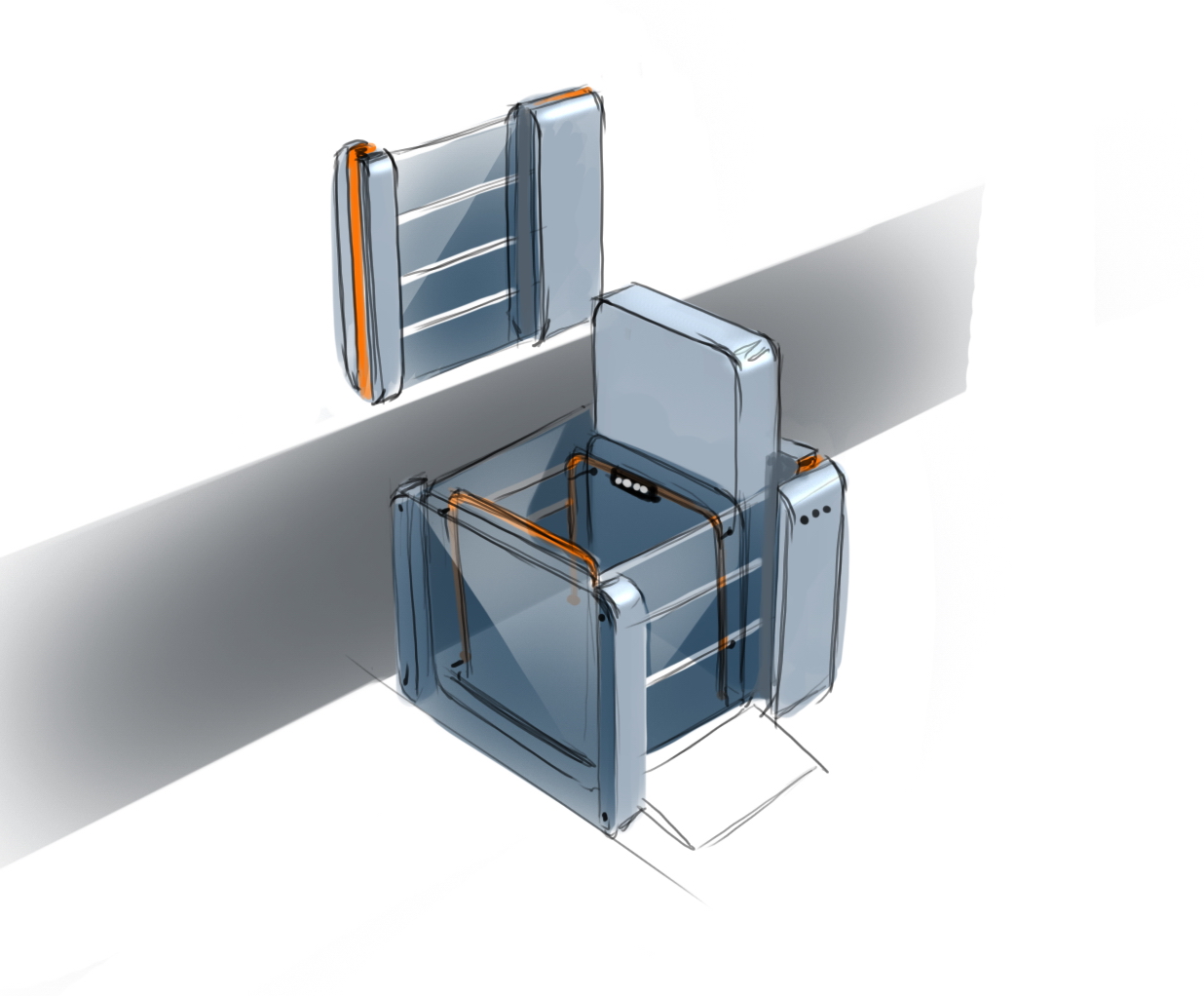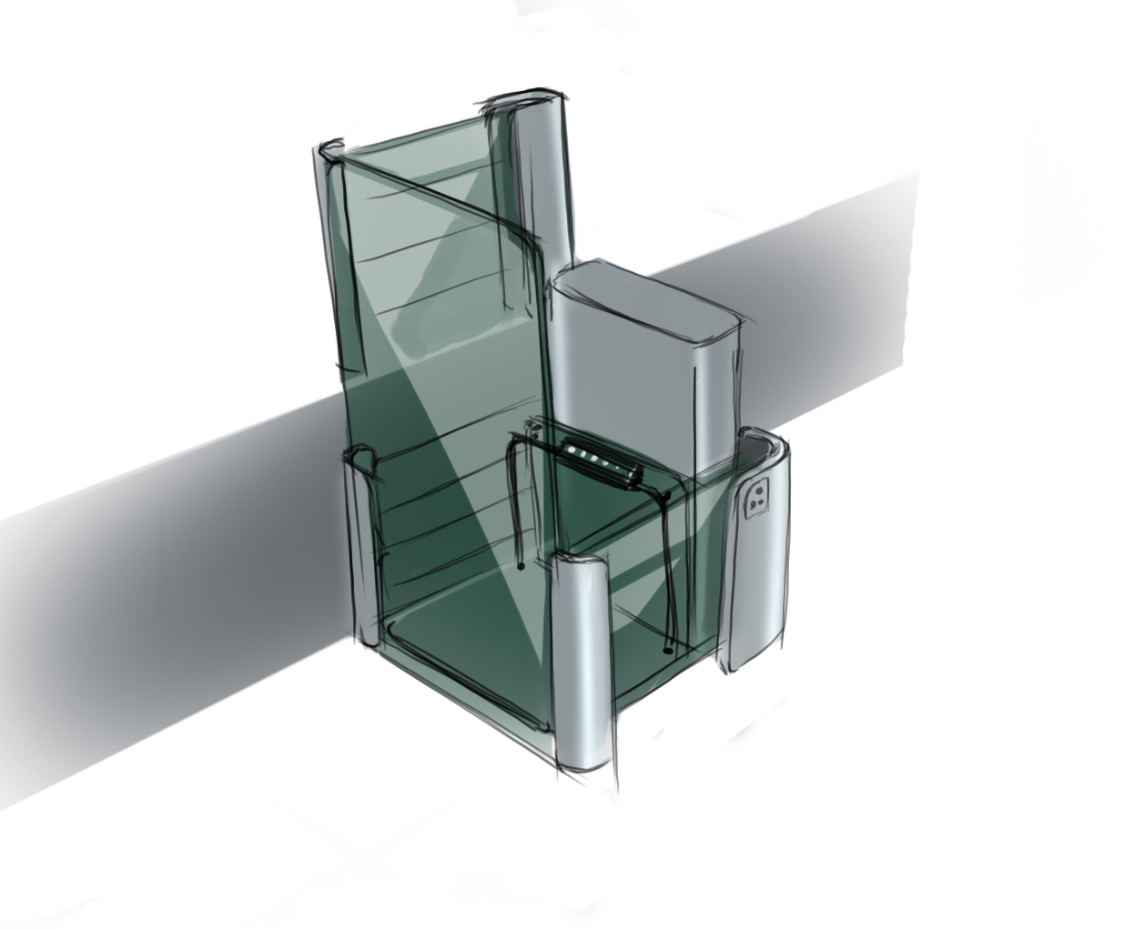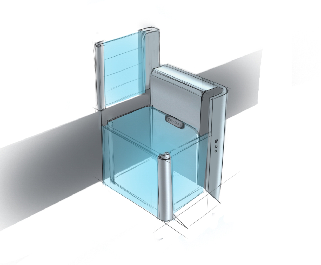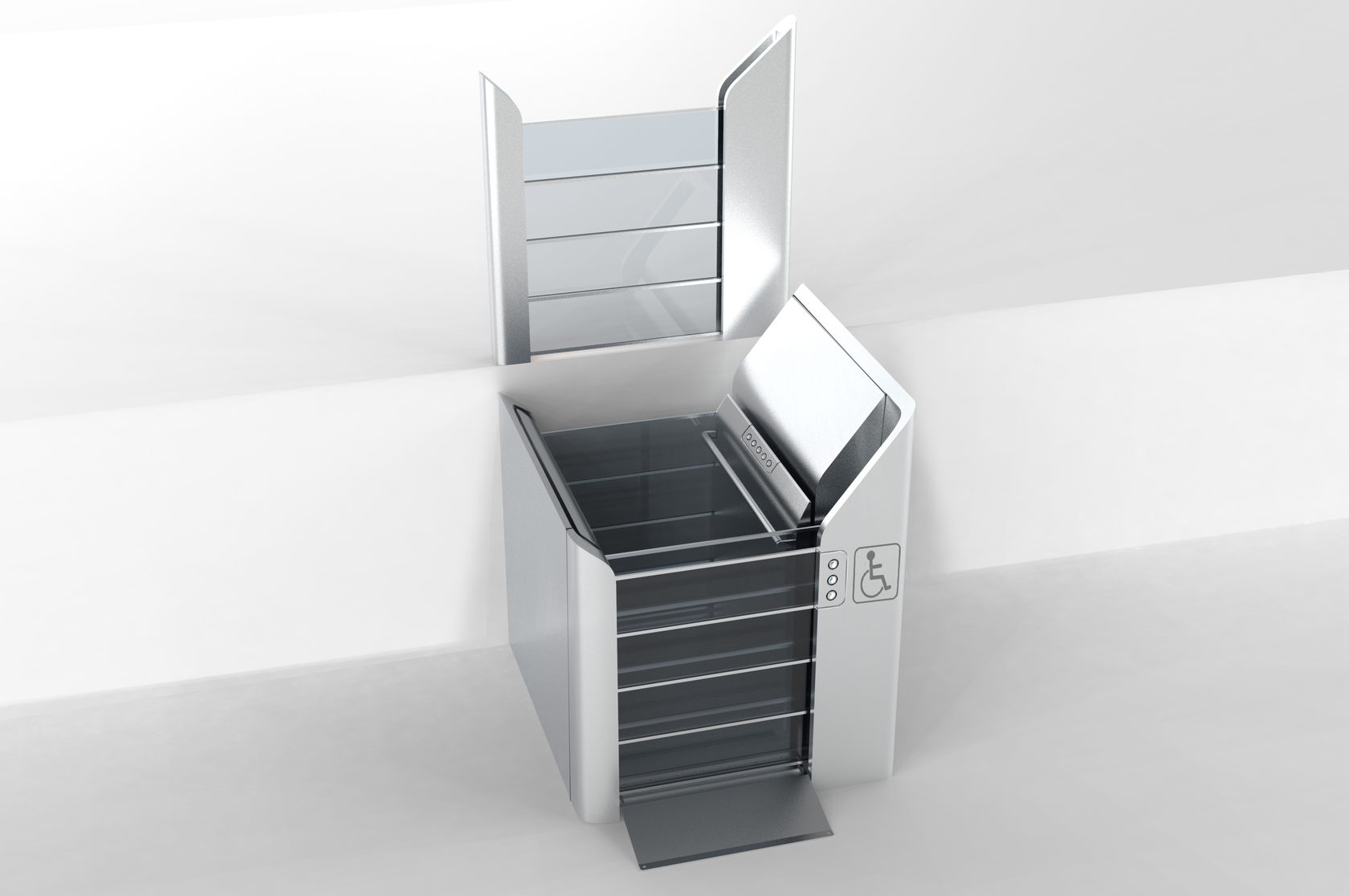 Пандусы на входе в здания для инвалидов — это полумера. Забраться на инвалидной коляске наверх, пусть даже это всего лишь несколько ступеней, — задача более чем серьёзная. ОКБ «Турбомаш» создаёт и производит оборудование для инвалидов, а Формлаб взялся за разработку нового дизайна подъёмника. Вот его предыдущая версия: