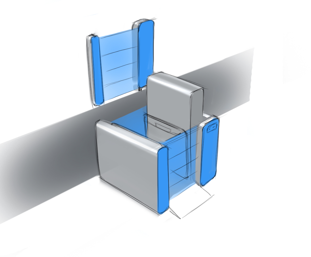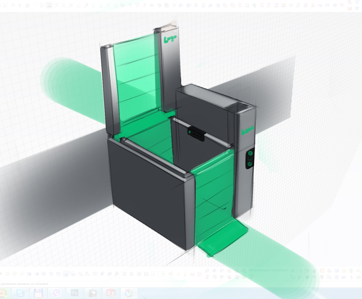 Выслушав замечания заказчика, объединяем пару предложенных вариантов в один (и помним, что пульт управления должен располагаться на поручне).