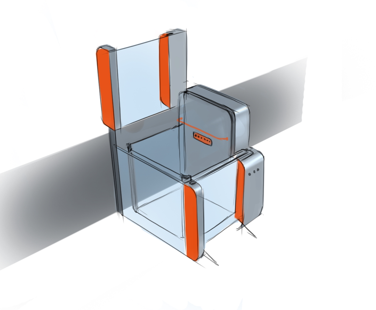 Доступ ко всем механизмам нужно оставить свободным. Платформа металлическая, поэтому доступные технологии производства — резка, гибка и сварка металла, а также гибка алюминиевого профиля. Все части из металла окрашены, а это значит, что можно экспериментировать с цветом.