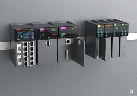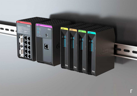 Задача — создать линейку корпусов для модулей станции удаленного ввода-вывода (СУВД) на DIN-рейку: промдизайн, эргономика, графика (значки и символы). Такие модули нужны для сбора данных с датчиков и управления исполнительными устройствами в системах промышленной автоматизации. Мы работаем над дизайном и эргономикой коммуникационного модуля, модуля ЦПУ (это центральный процессорный узел, «мозг» СУВД) и модулей аналогового и дискретного ввода-вывода, всего 6 штук в линейке. Все они собираются на DIN-рейке и соединяются жестким шлейфом.