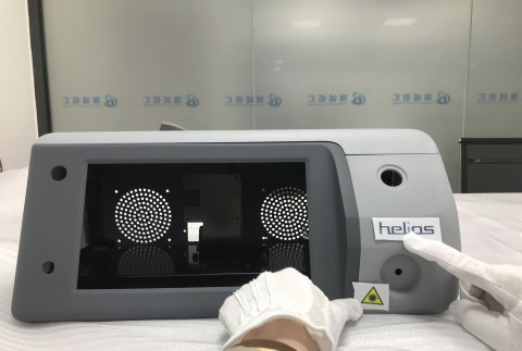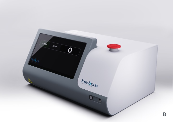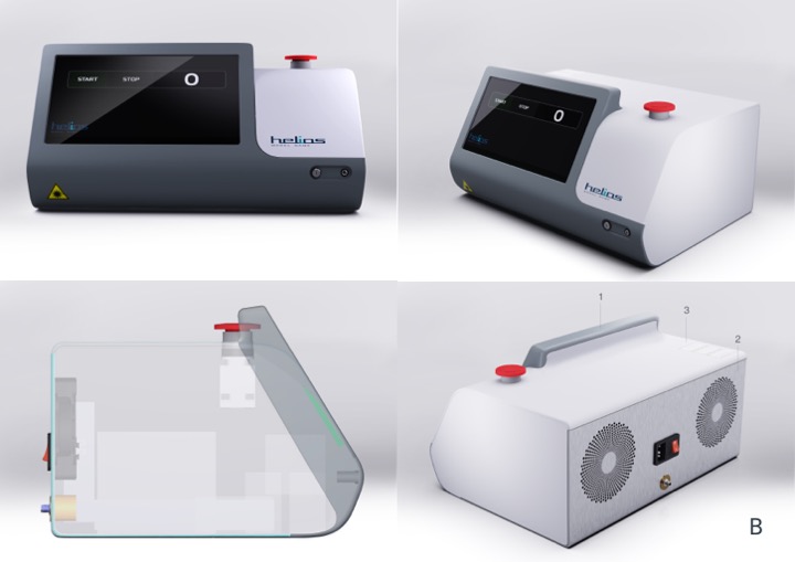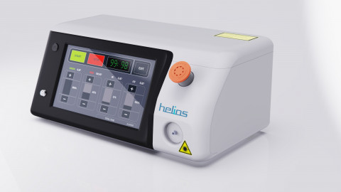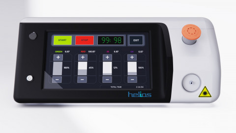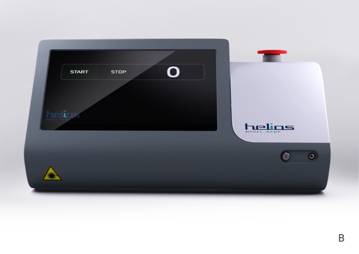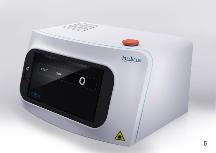 Это корпус четырехволнового терапевтического лазера «Гелиос», который применяется в гнойной хирургии и эндоскопии для ускорения заживления. Аппарат стоит довольно приличных денег, поэтому и выглядеть должен «дорого-богато».