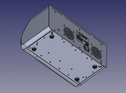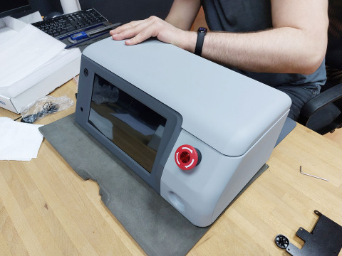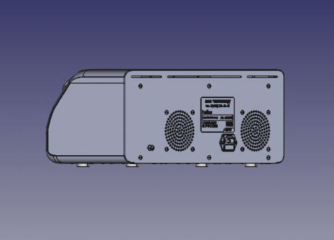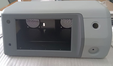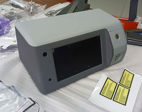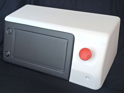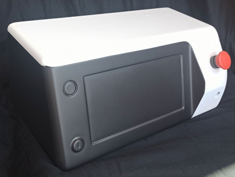 | Что нужно сделать? Задачи | 1. Корпус из пластика и металла, состоящего из 3 или 4 деталей, с ЖК-дисплеем. В составе прибора также — 4 блока питания, стандартный мини-компьютер, источники излучения: несколько лазерных диодов и один УФ-диод; два радиатора, вентиляторы охлаждения, кнопки питания, разнообразные разъемы. 2. Сборка на винтах. 3. Размеры корпуса заданы, уменьшать их нельзя. Хорошо бы утяжелить корпус. А еще ему необходимы ножки — для устойчивости. 4. Разборность для сервисного обслуживания, ремонтопригодность. 5. Панель с лазерными диодами — съемная. 6. Защиту внутреннего наполнения от брызг по стандарту IP30. 7. Нетоксичный материал. 8. Поверхность корпуса должна быть приятной на ощупь и легко переносить стерилизацию. 9. Дизайн, оправдывающий высокую стоимость прибора. Белый и серый цвета. 10. Места на корпусе для размещения названия компании-производителя, названия модели, логотипа производителя, подписей и знака лазерной безопасности. 11. Ограниченная себестоимость корпуса |