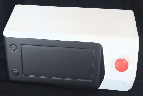2. Пришлось изменить цвет корпуса — с молочно-белого на серый. Опять же не просто так. Белый непрактичен, особенно в условиях эксплуатации прибора (который могут использовать в том числе в полевом госпитале). Белый пластик наверняка выгорит и пожелтеет. Попробуем вариант с черным вместо серого?