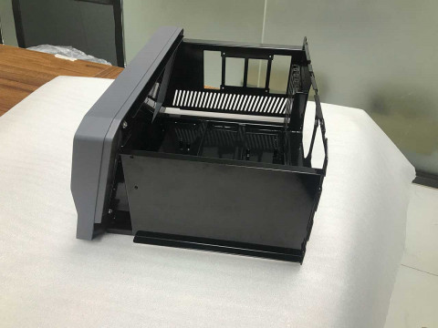 Для корпуса рекордера потребуются два материала:основная часть будет из металла, лицевая панель — из пластика. Внутри — материнская плата с тремя платами расширения, блок питания, дисплей 11.6 дюймов, тачскрин и вентилятор охлаждения. На лицевой панели — экран с наклоном 15 градусов, кнопки управления, индикаторы и два порта USB.