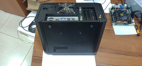 На задней панели — разъемы матплаты, плат расширения и заземления, отверстия охлаждения блока питания.