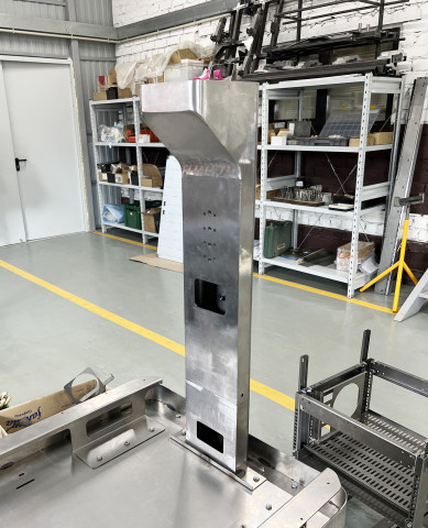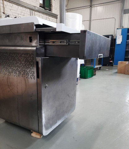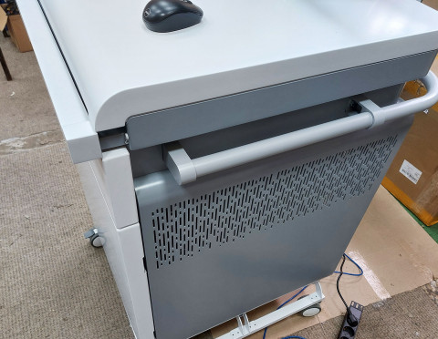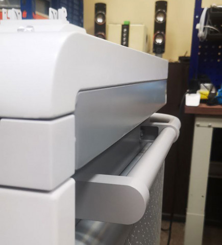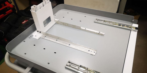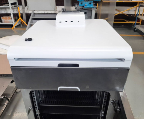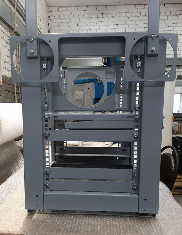 Прототип показал, что нужно облегчить конструкцию, потому что вес стойки — аж 150 кг; усилить кронштейн колонны, изменить крепление полки под клавиатуру, обеспечить доступ ко дну тележки, сместить блок нижних вентиляторов, разобраться с зазорами и т.д. И проследить за качеством верхней пластиковой крышки. Можно также увеличить диаметр колес тележки.
