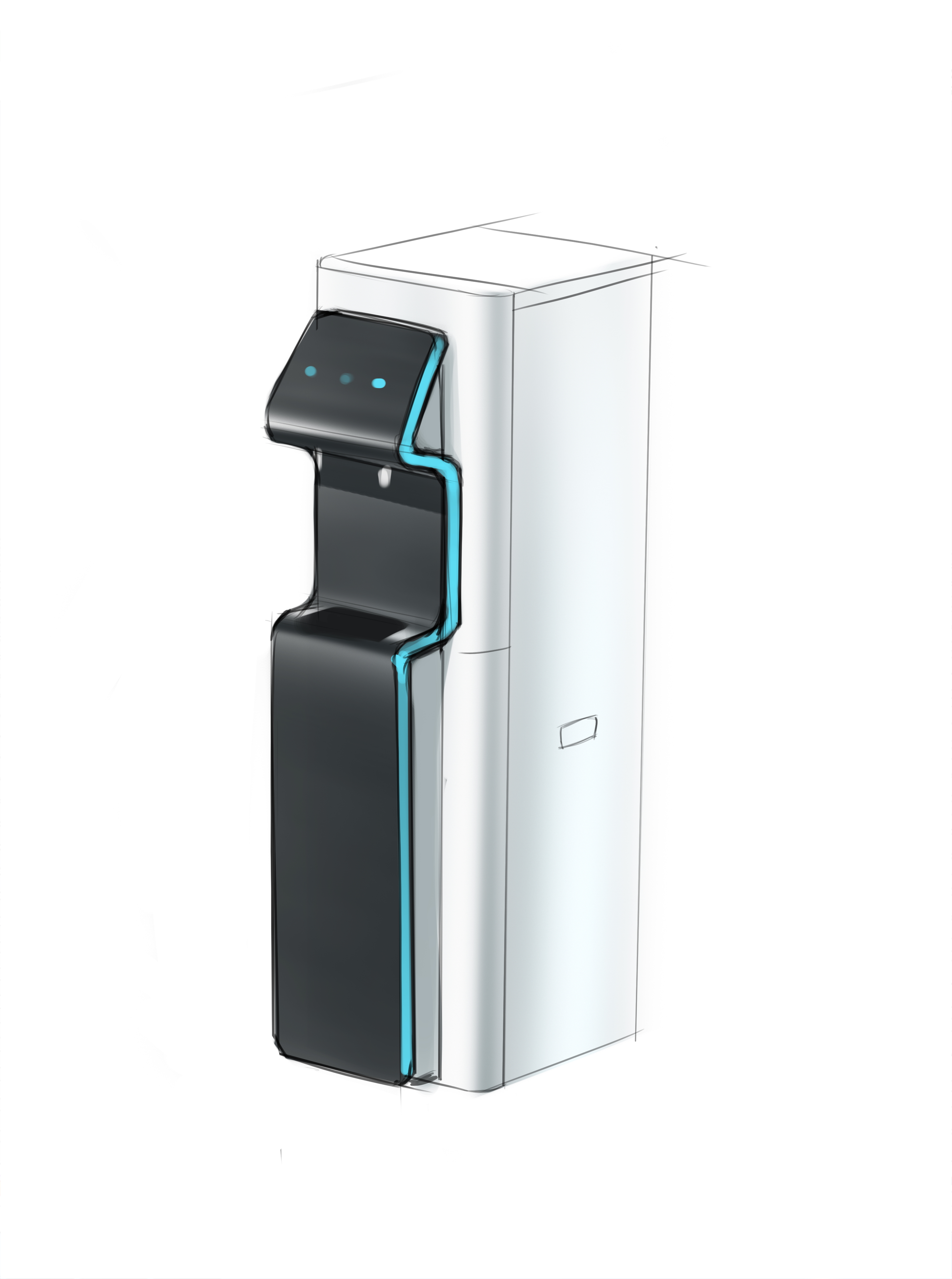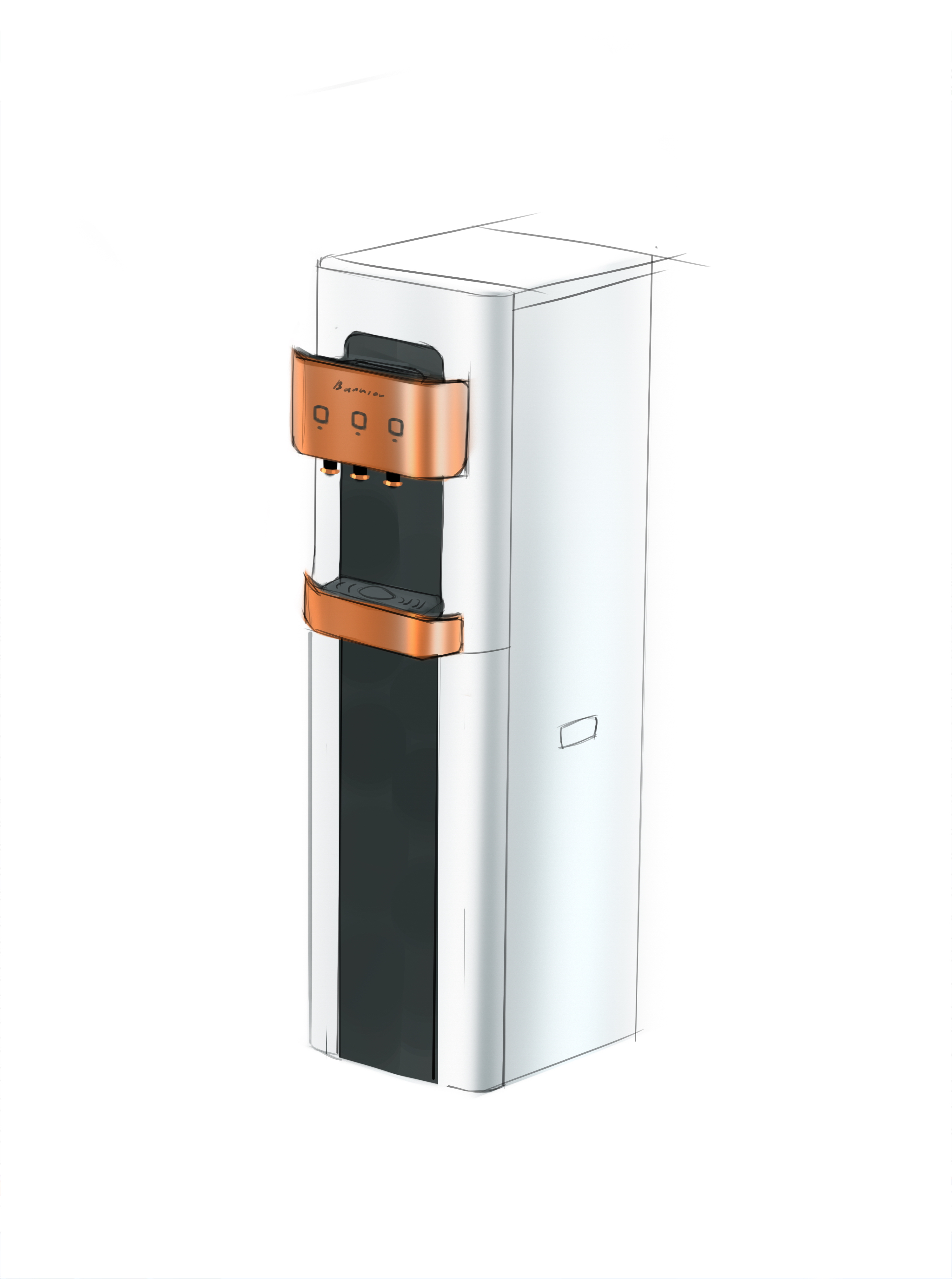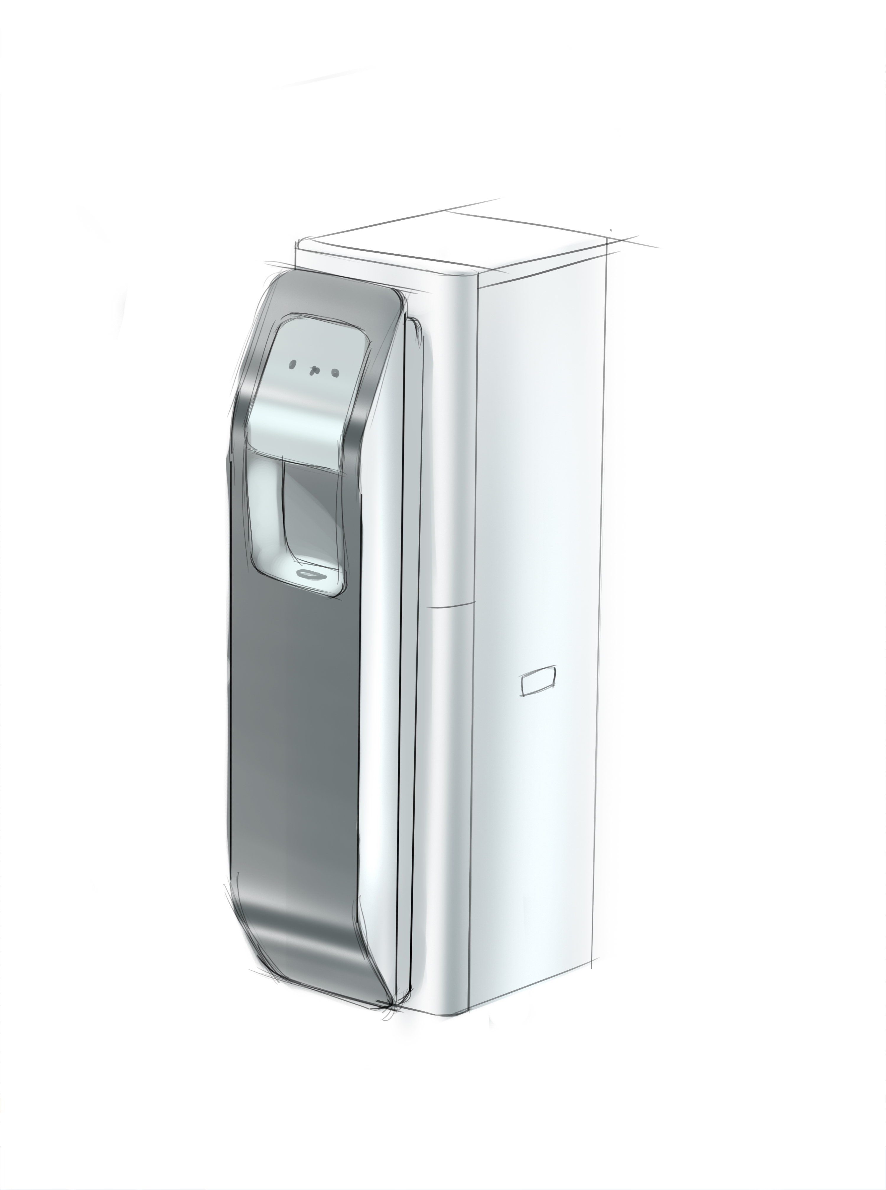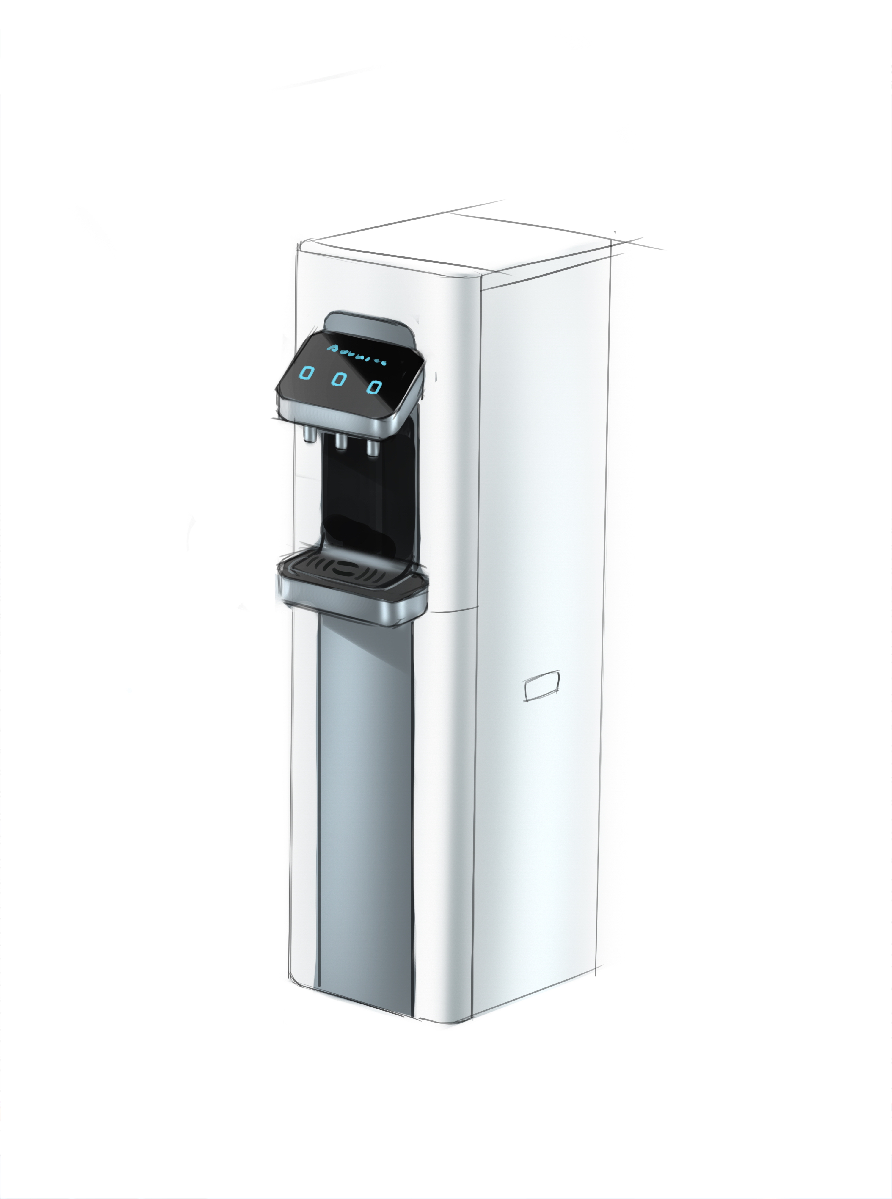 | Что нужно сделать? Задачи | 1. Взять за основу конструкцию корпуса старого пурифайера и на его базе разработать новую. 2. Сделать два концепт-дизайна — для панели из нержавеющей стали и из обычной стали (с последующей порошковой окраской). 3. Механизм налива горячей воды с защитой от детей. 4. Элементы управления на панели — либо антивандальная кнопка с RGB-подсветкой, либо сенсор выбора температуры воды. 5. Легкий и быстрый демонтаж передней панели для свободного доступа внутрь корпуса: вообще без использования инструментов. 6. Дизайн должен «сообщать» о том, что пурифайер относится к премиум-сегменту таких устройств. |