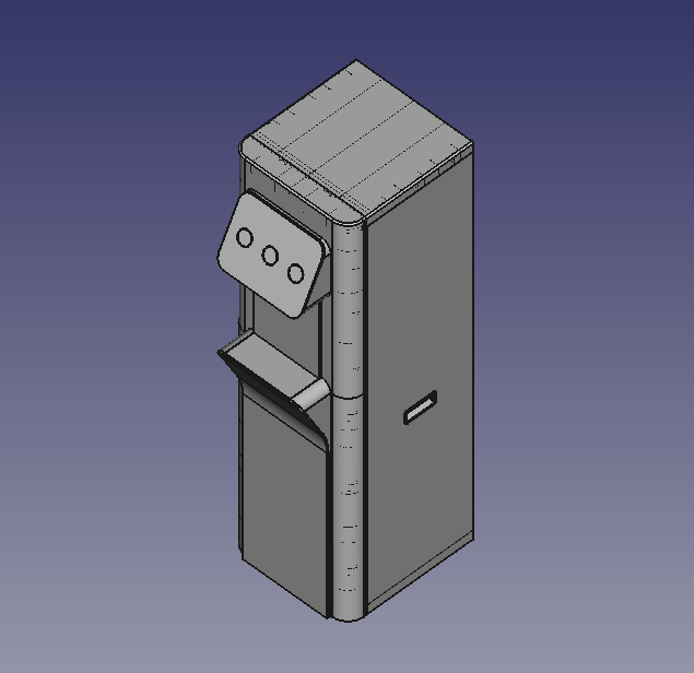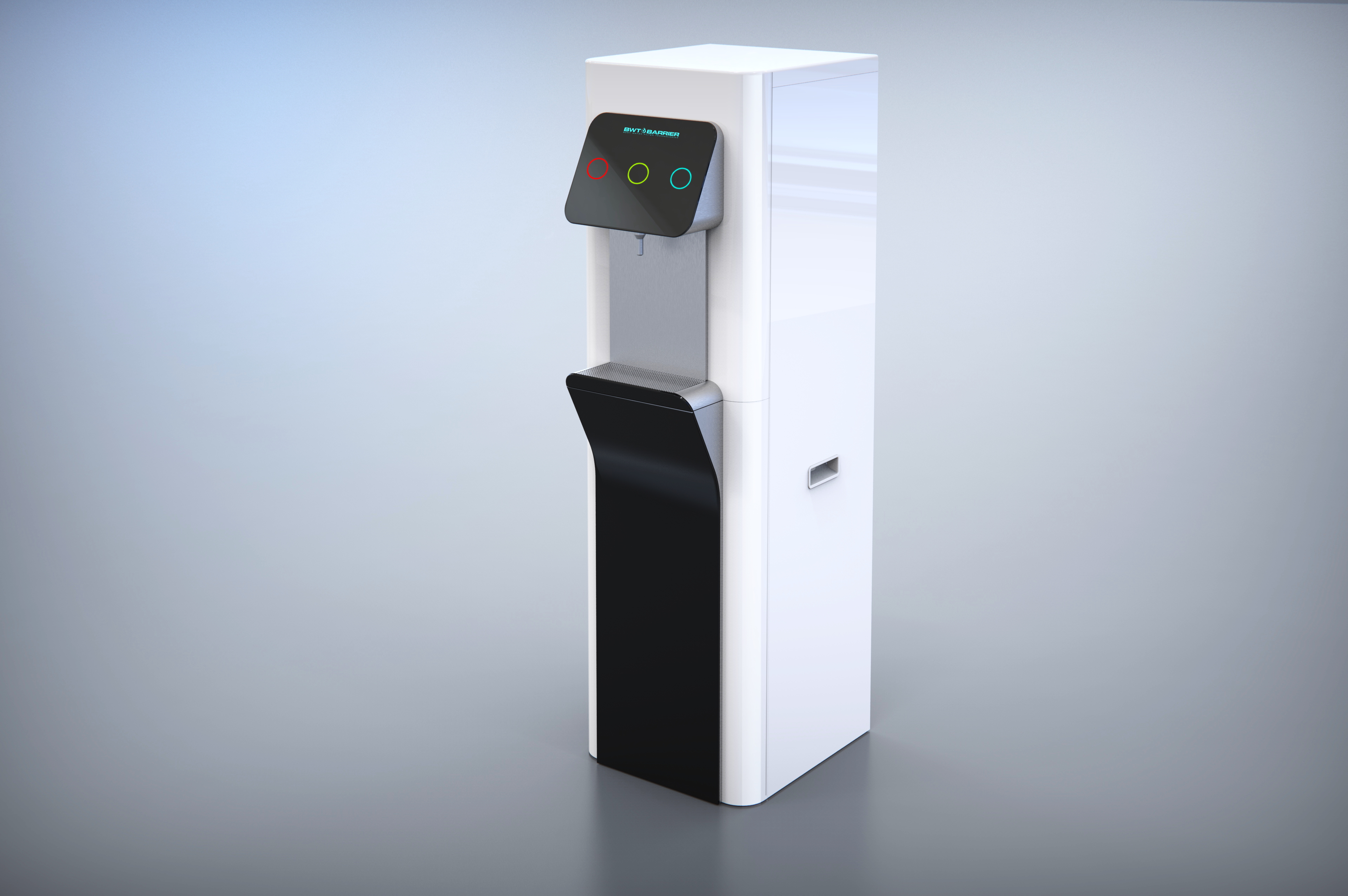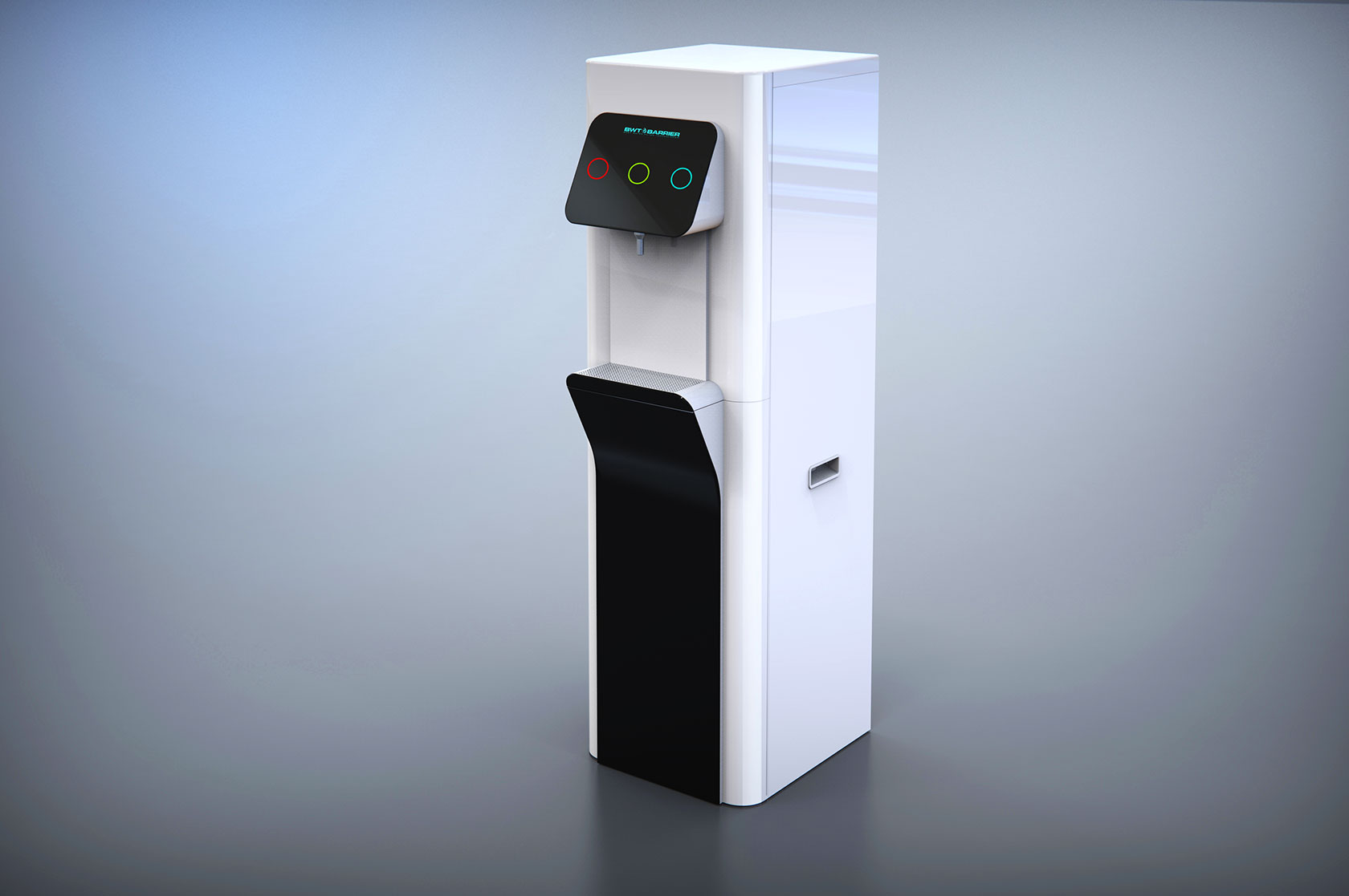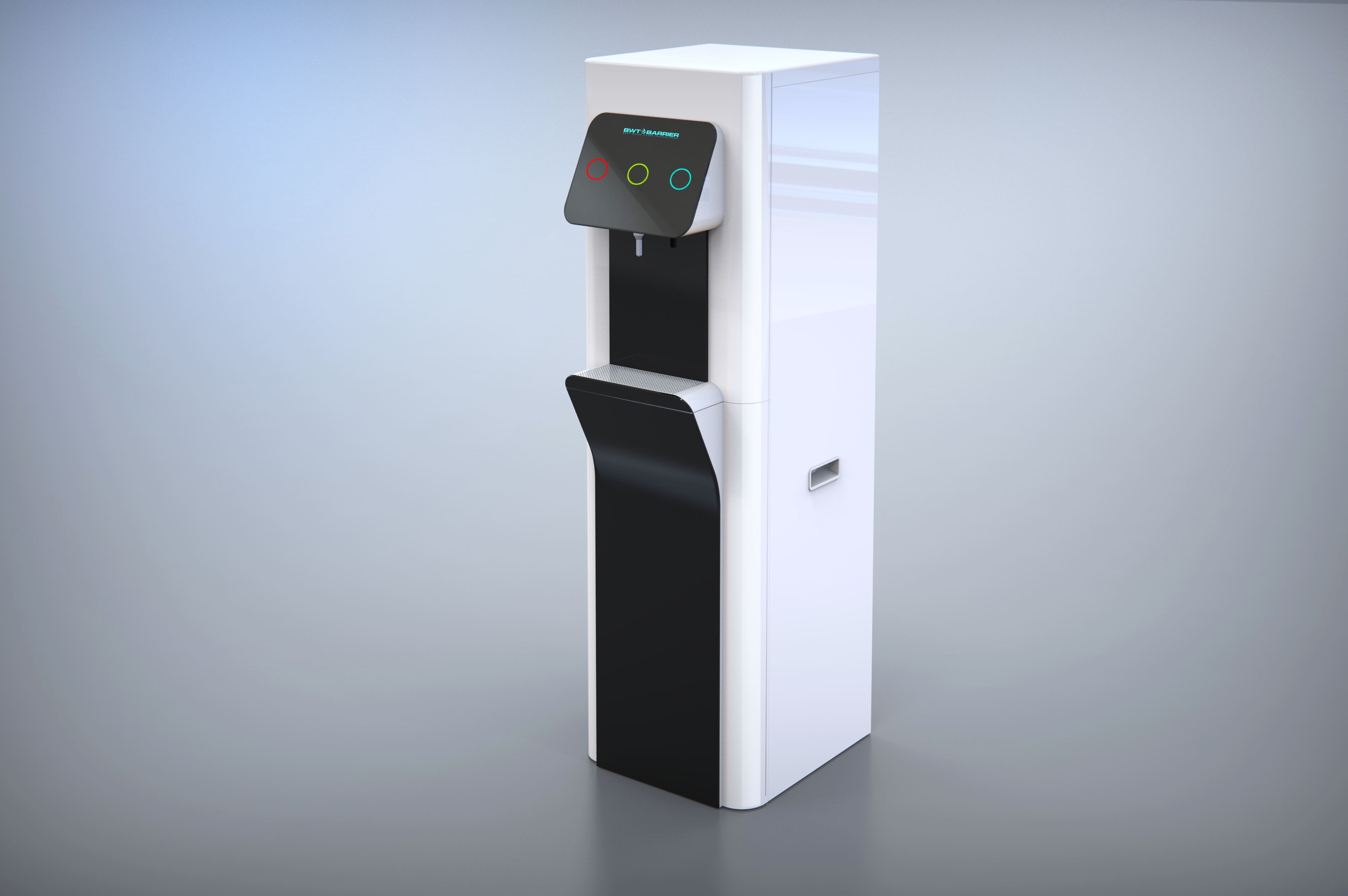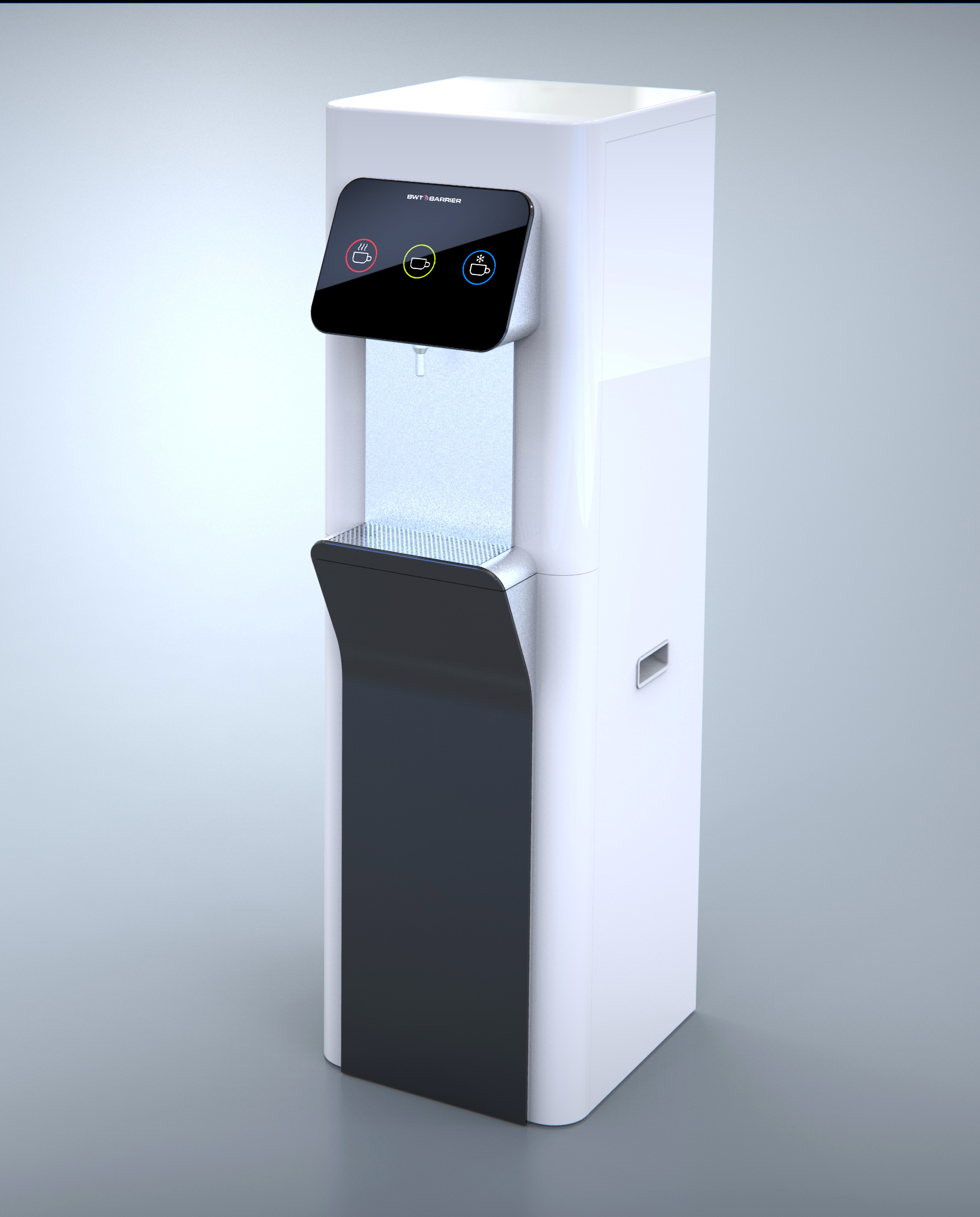 | Что нужно сделать? Задачи | 1. Взять за основу конструкцию корпуса старого пурифайера и на его базе разработать новую. 2. Сделать два концепт-дизайна — для панели из нержавеющей стали и из обычной стали (с последующей порошковой окраской). 3. Механизм налива горячей воды с защитой от детей. 4. Элементы управления на панели — либо антивандальная кнопка с RGB-подсветкой, либо сенсор выбора температуры воды. 5. Легкий и быстрый демонтаж передней панели для свободного доступа внутрь корпуса: вообще без использования инструментов. 6. Дизайн должен «сообщать» о том, что пурифайер относится к премиум-сегменту таких устройств. |