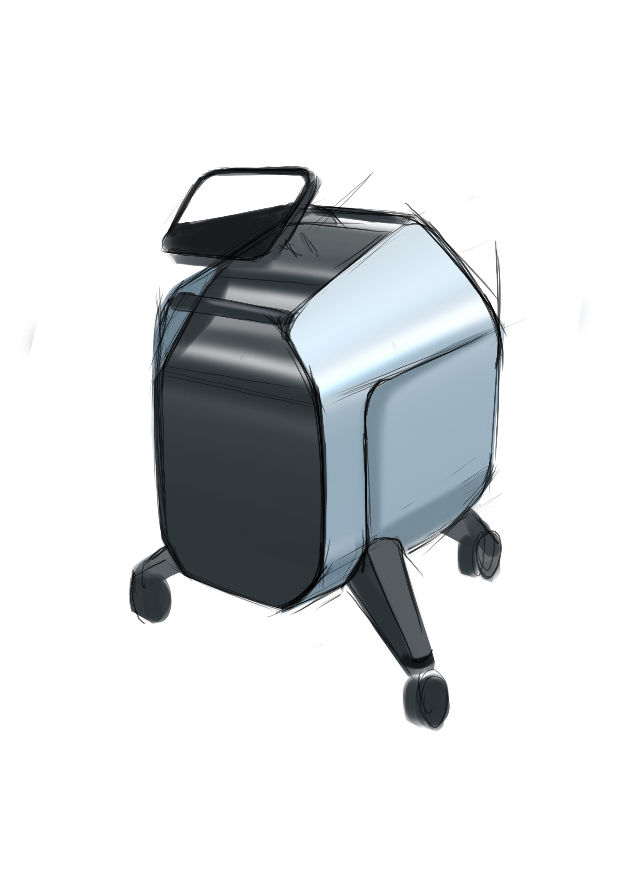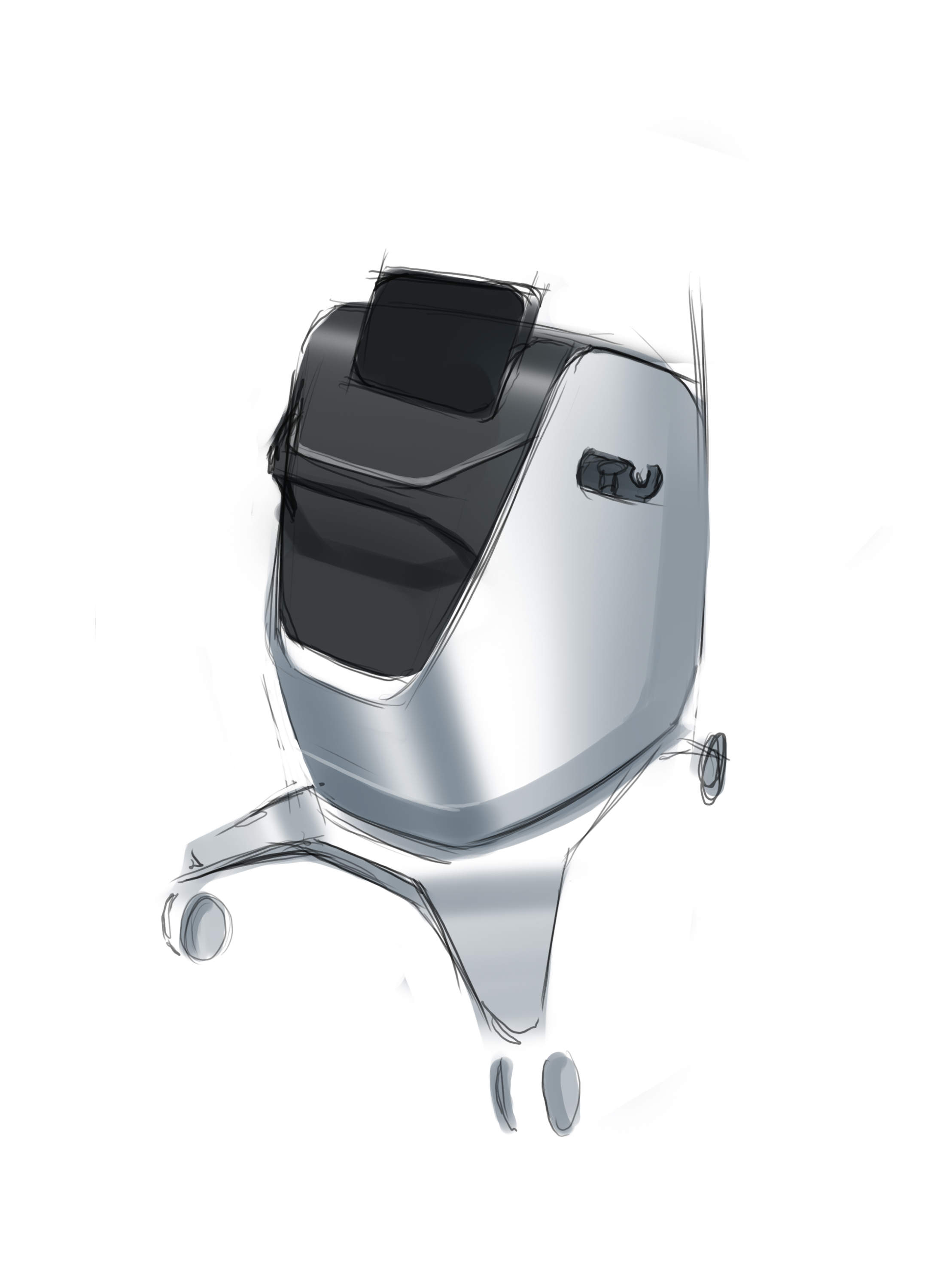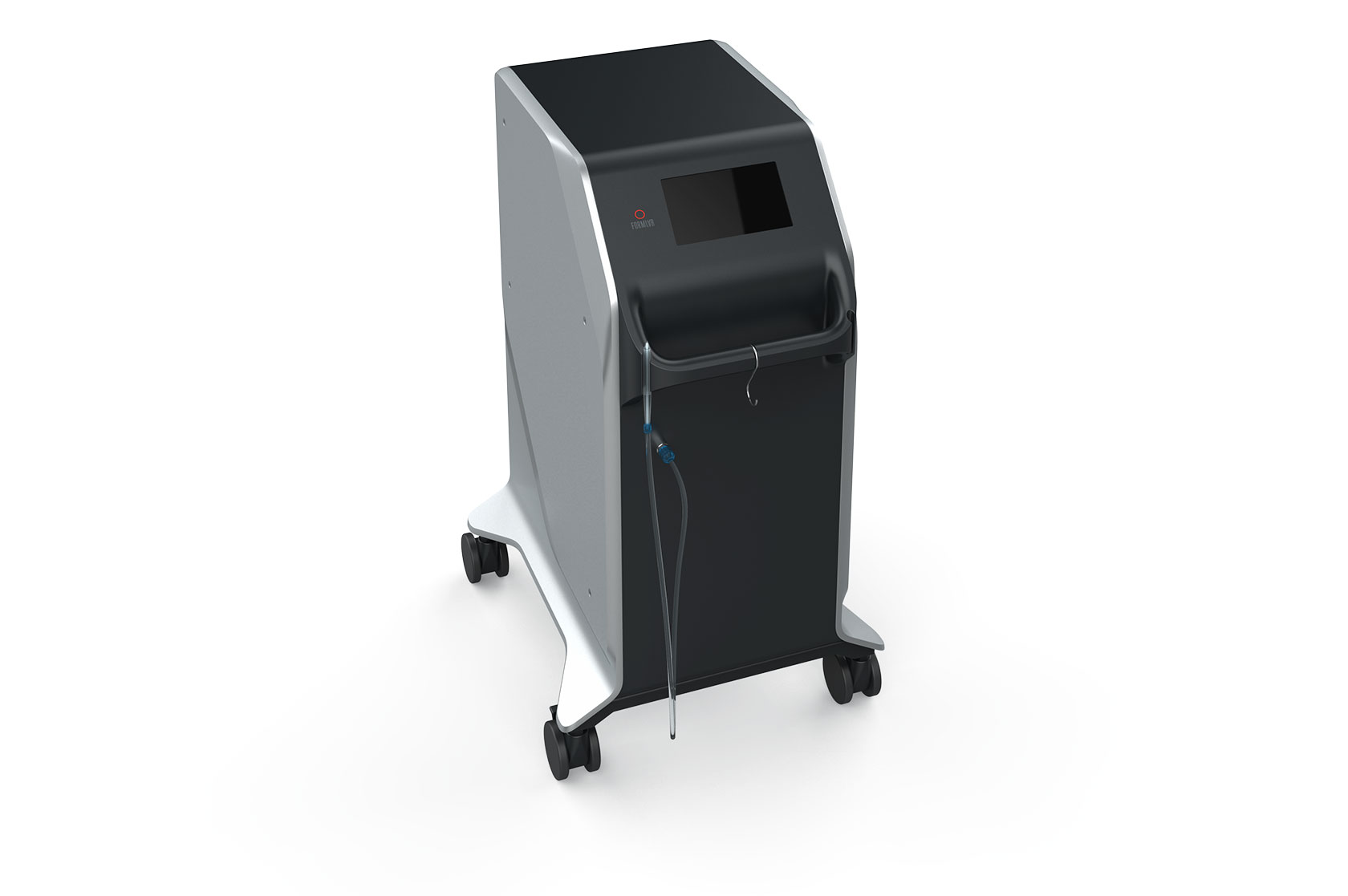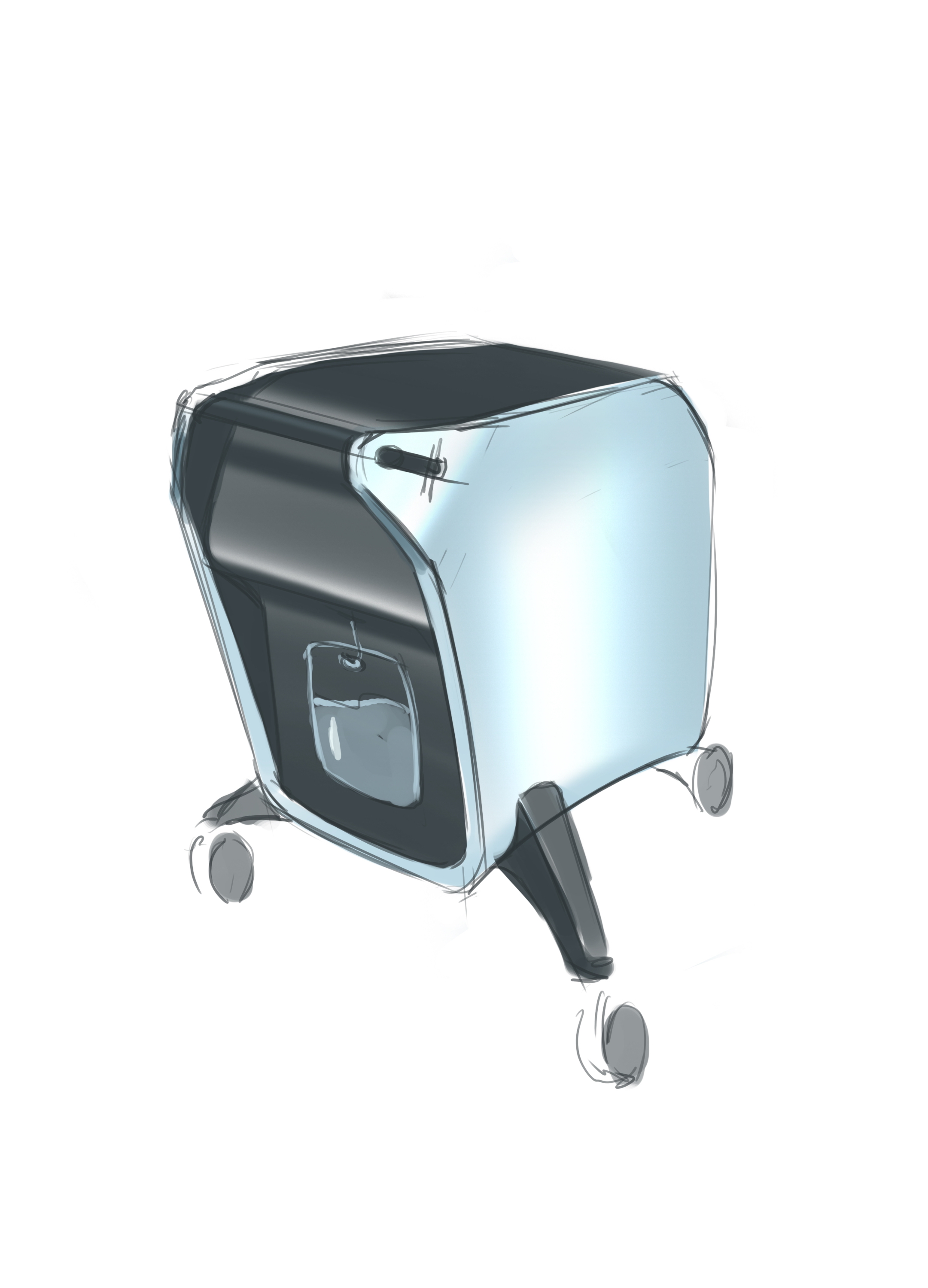 Делаем напольный корпус аппарата для косметической процедуры — жидкостного пилинга. Он работает как краскопульт с компрессором: последний подает под давлением воздух через пневмомагистрали в специальную насадку. Ею, собственно, и проводят процедуру; сам аппарат в это время стоит на полу рядом с врачом и управляется при помощи педали и дисплея.