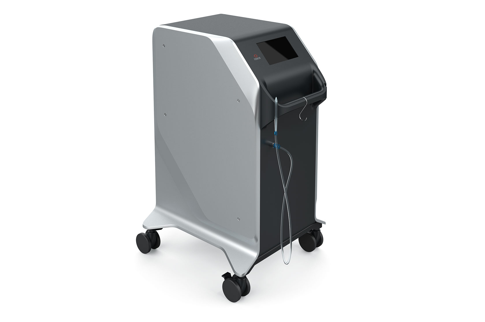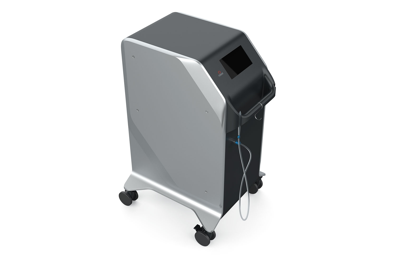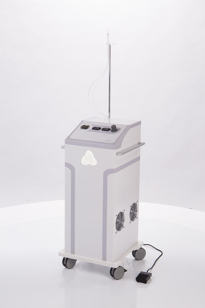 Требования к корпусу: сборка на винтах, хорошо закрепленные боковые крышки, которые не должны дребезжать при работе устройства, качественные колесики (лучше 3, а не 4: так, оказывается, удобнее катать аппарат по кабинету), ручки и выемки для переноски. Крепление для насадки и физраствора можно совместить. Защита от брызг — IP20.