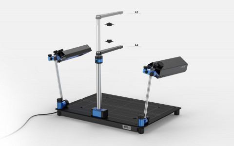Камера на штанге регулируется по высоте, также можно менять углы наклона ламп подсветки. И, самое главное, этот комплекс очень компактный: его легко быстро разобрать и сложить в чемоданчик. А когда потребуется, вытащить и собрать.