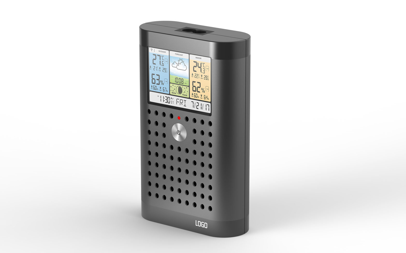 Детектор радона — экомонитор для помещений. Раз в минуту он определяет уровень радона и продуктов его распада в воздухе. Модификации экомонитора могут также измерять температуру, влажность, атмосферное давление и прочие показатели.