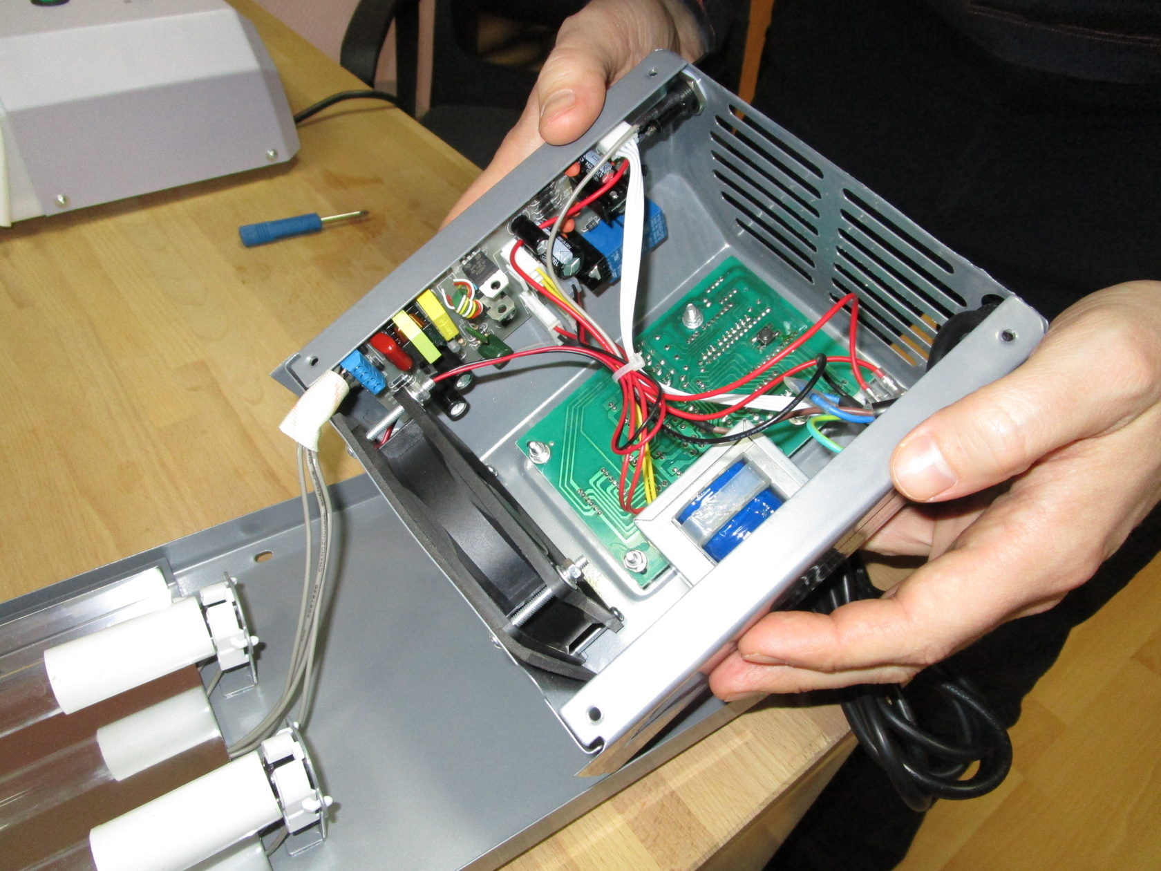 Периодически в рециркуляторе придётся менять лампы, поэтому нужно предусмотреть его лёгкую сборку-разборку.