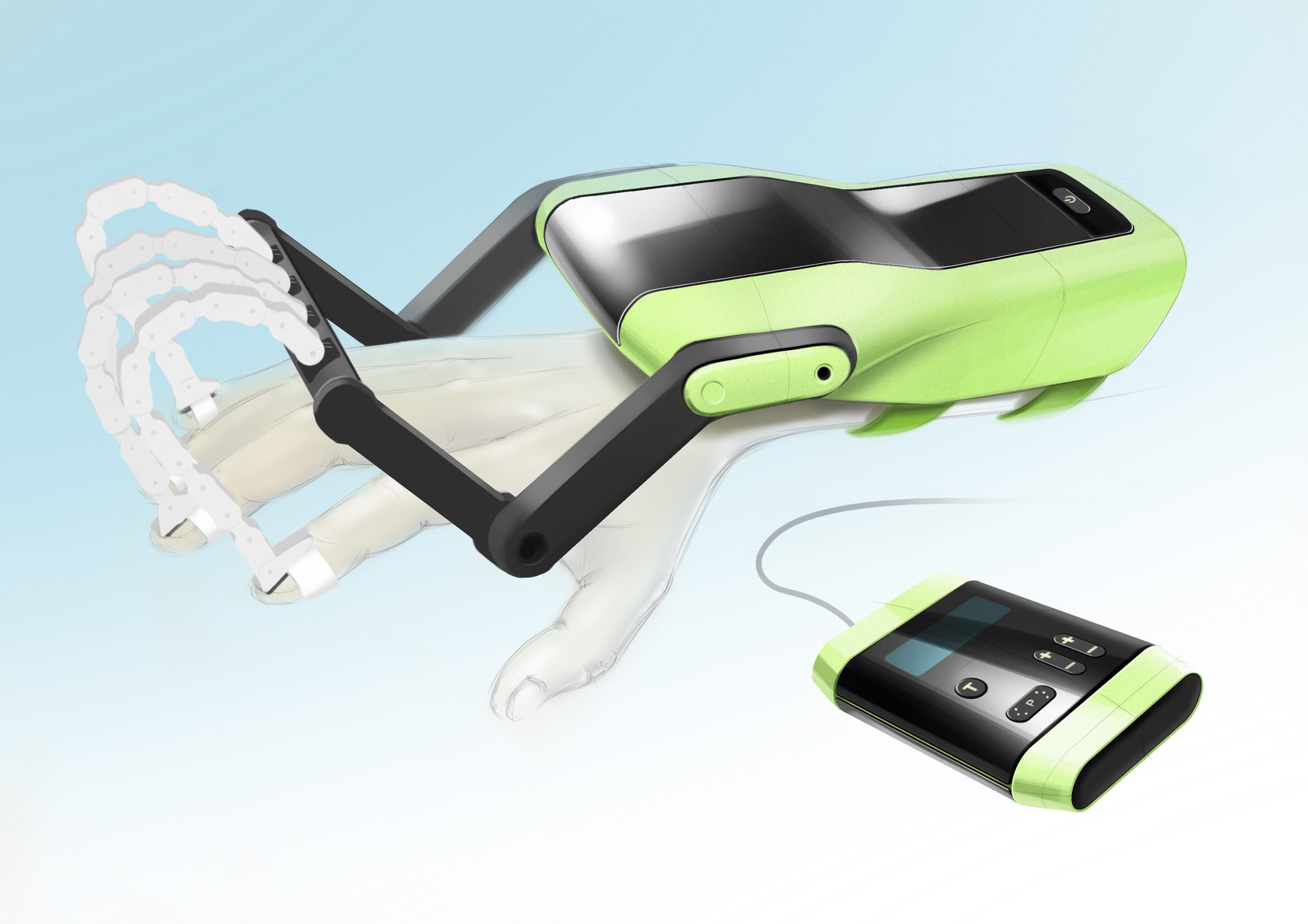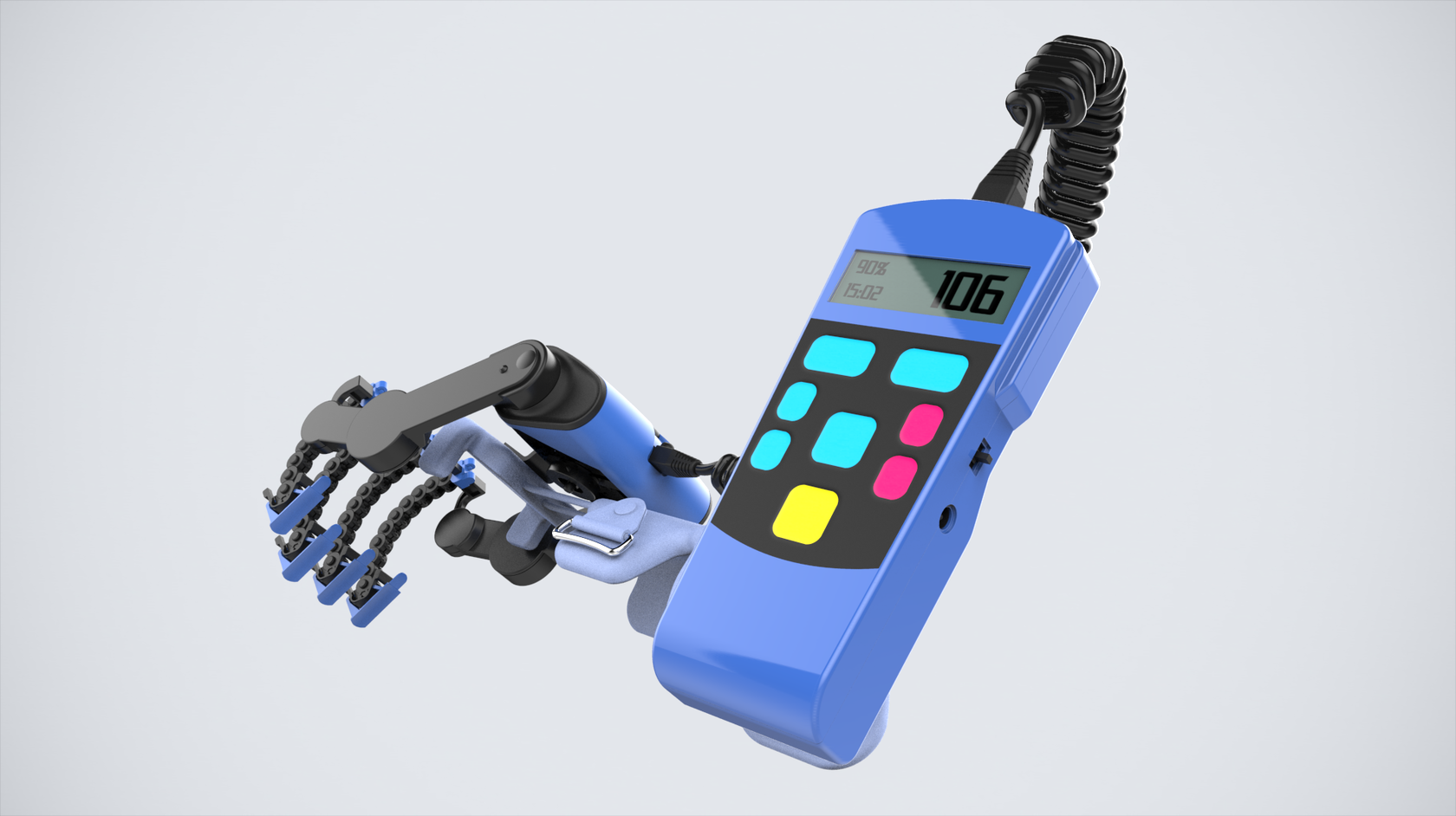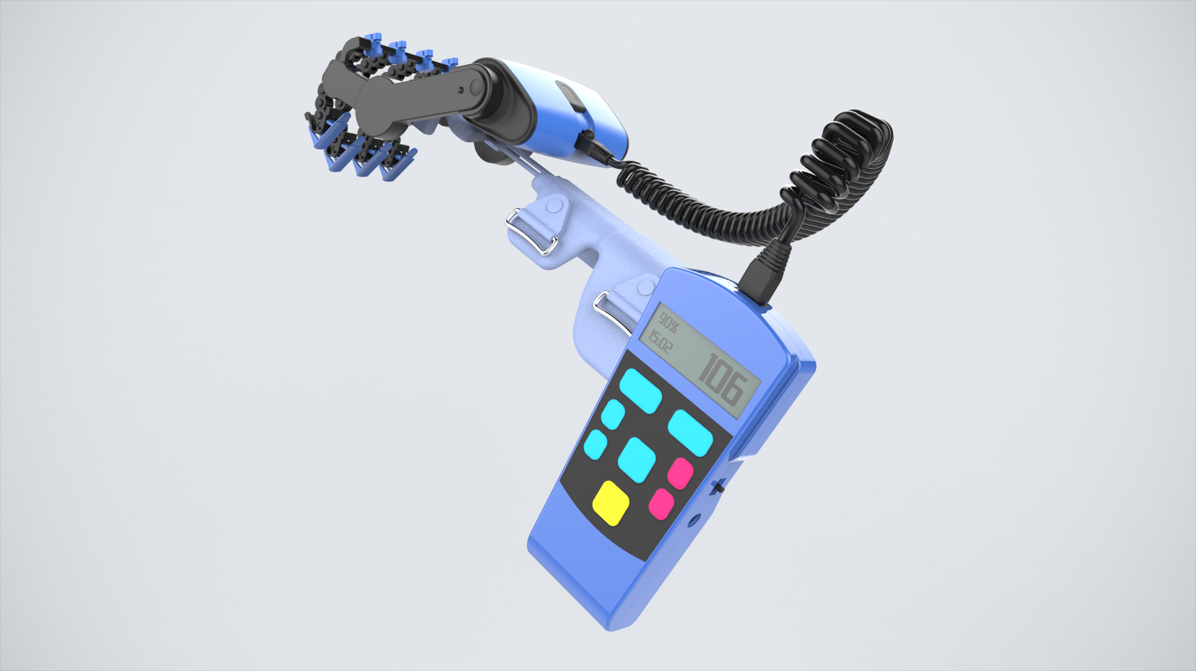 Перед заказчиком тренажёра — молодой компанией из Волгограда — стояла задача максимально удешевить производство аппарата, при этом сохранив его уникальный функционал. Ведь предстояло сконструировать и адаптировать для серийного выпуска очень сложный прибор: тренажёр с разной скоростью может сжимать и разжимать пальцы руки, помогая тем самым сохранить подвижность суставов. Он применяется в реабилитационной терапии после инсультов или травм кисти.
