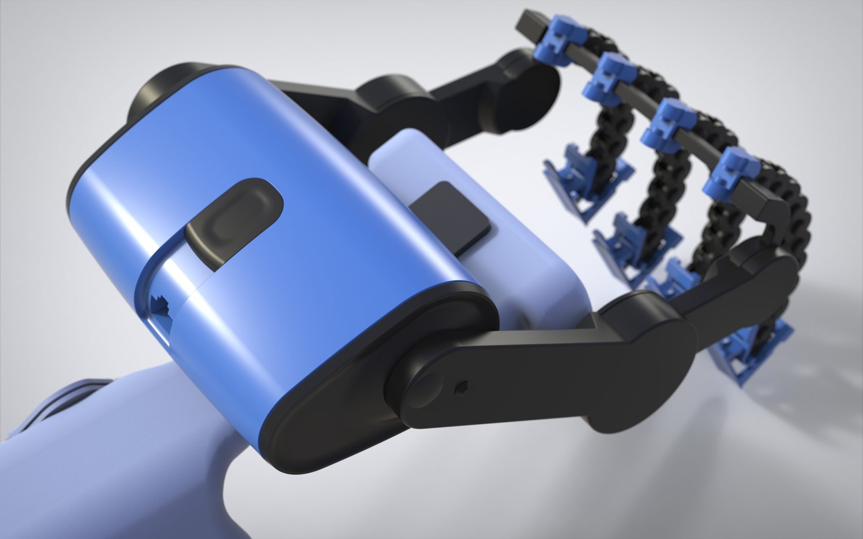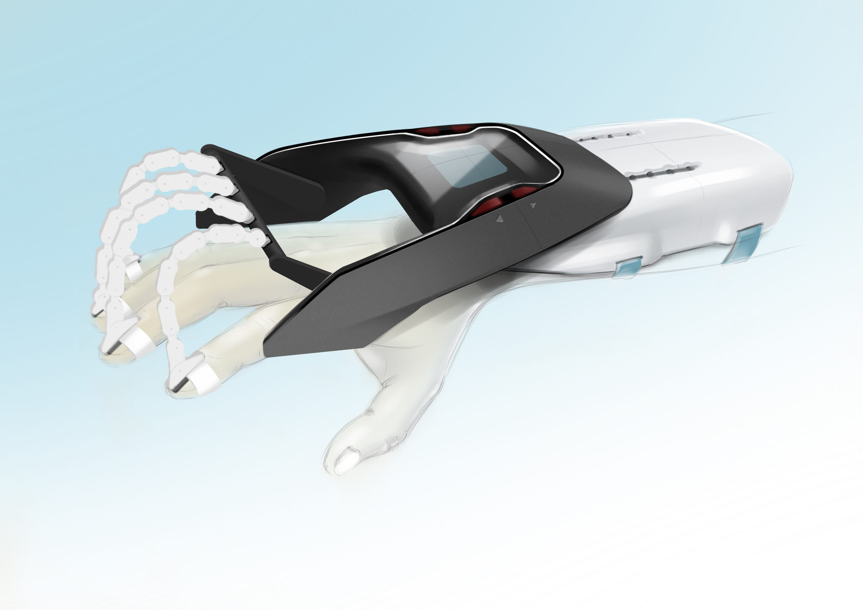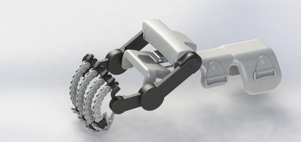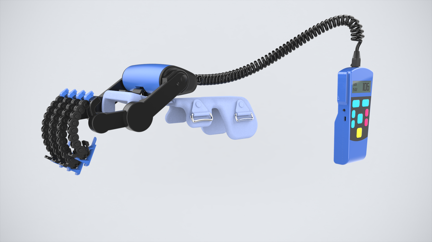 Перед заказчиком тренажёра — молодой компанией из Волгограда — стояла задача максимально удешевить производство аппарата, при этом сохранив его уникальный функционал. Ведь предстояло сконструировать и адаптировать для серийного выпуска очень сложный прибор: тренажёр с разной скоростью может сжимать и разжимать пальцы руки, помогая тем самым сохранить подвижность суставов. Он применяется в реабилитационной терапии после инсультов или травм кисти.