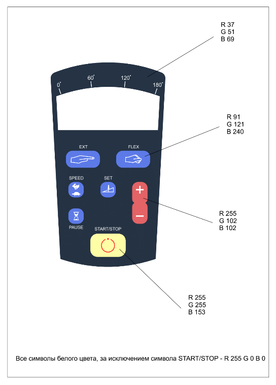 Конструкция состоит из основания, которое надевается на руку, подвижной рамы для системы крепления пальцев к тренажёру, самих «пальцеводителей», электродвигателя и кнопки включения/выключения устройства. Управление — установка углов сгибания/разгибания пальцев, скорости работы, пауз и т.д. – осуществляется с помощью выносного блока с экраном, попросту пульта.