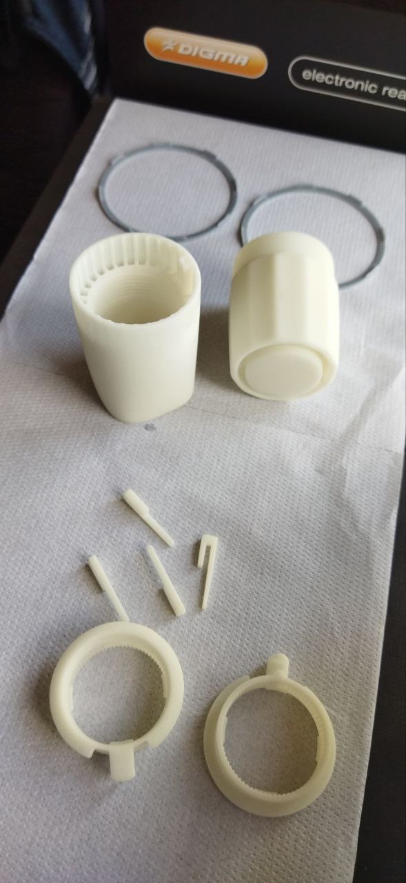 Корпус заказчику нужен прочный, устойчивый к высокой температуре, выдерживающий постоянные повороты (планируются испытания по ГОСТам), с поверхностью, которая не цепляет пыль и грязь. На рукоятке должны быть отверстия для доступа воздуха к термодатчику (он находится внутри). Пластик в перспективе будет цветным (например, черным), и он должен сохранять цвет минимум 10 лет.