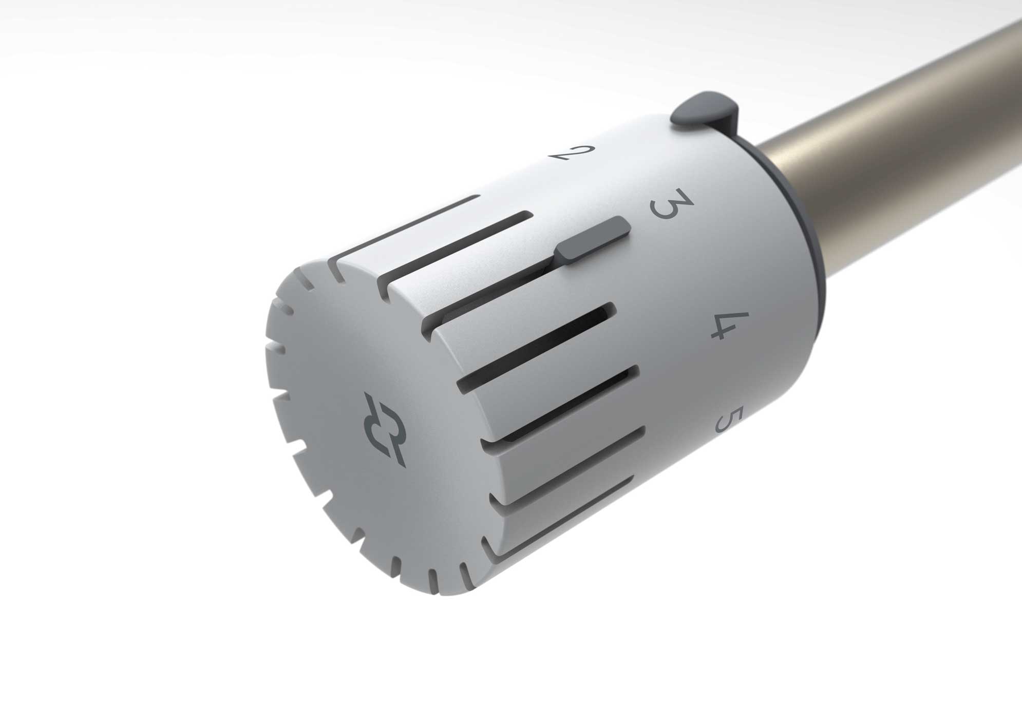 На картинке ниже— рукоятка термостата, прибора, которым регулируется температура в помещении. Термостат присоединяется к радиатору — поворотом рукоятки можно сделать воздух теплее или холоднее. Нам нужно продумать и разработать новые дизайн и эргономику этого элемента.