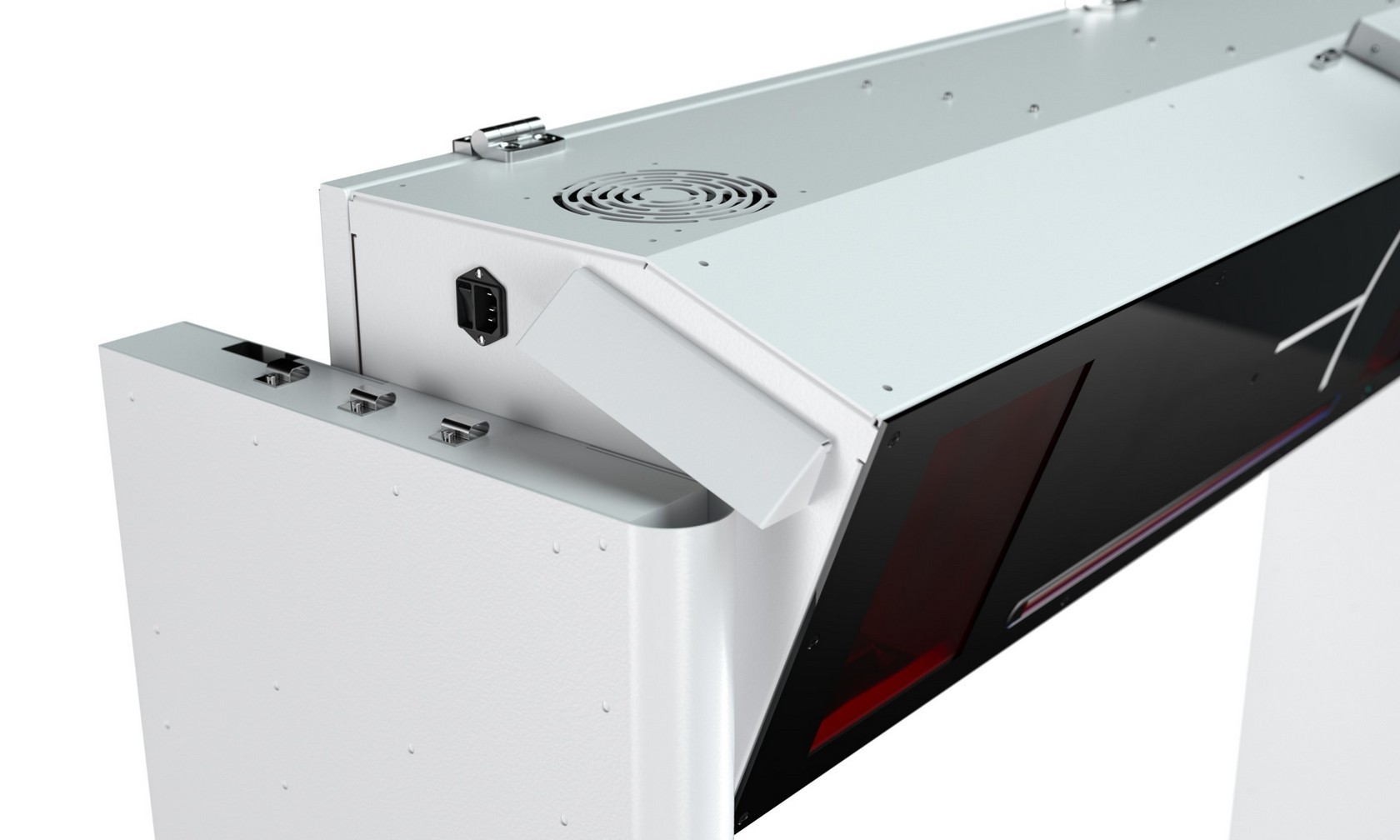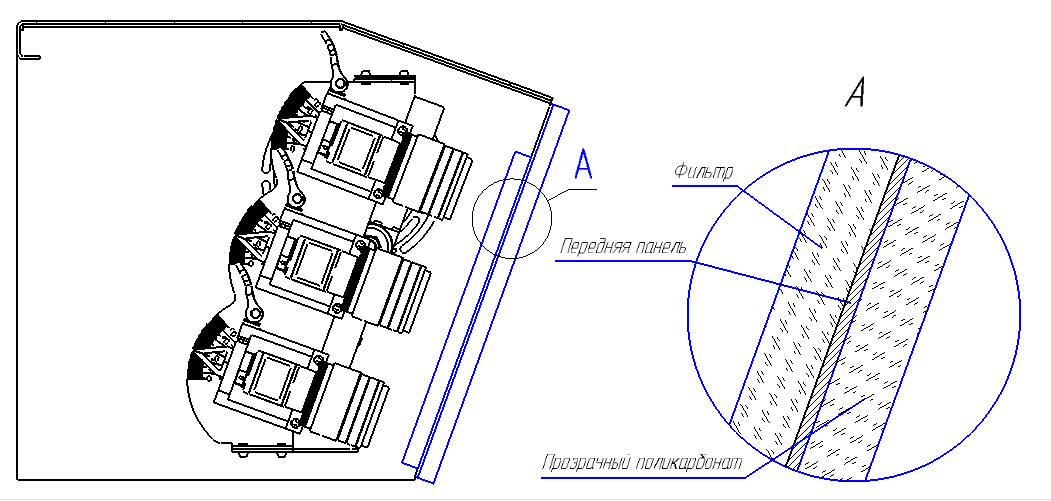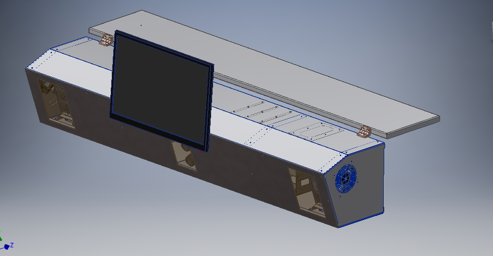 Требование заказчика: минимально возможная ширина рамки (с учётом необходимого расстояния между блоками инфракрасной подсветки). Монитор ставится на кронштейн, и в дальнейшем его наклон можно регулировать.