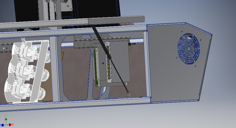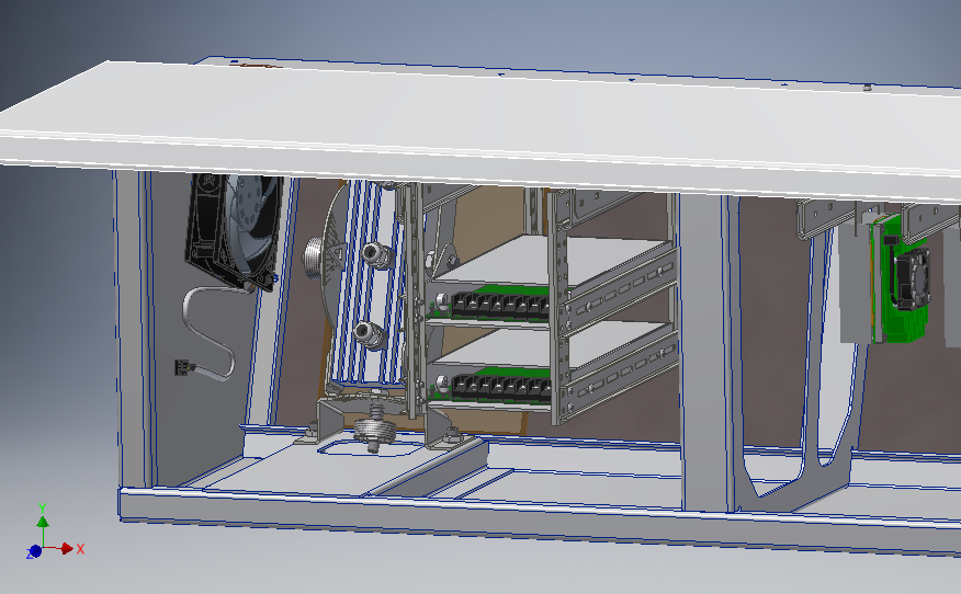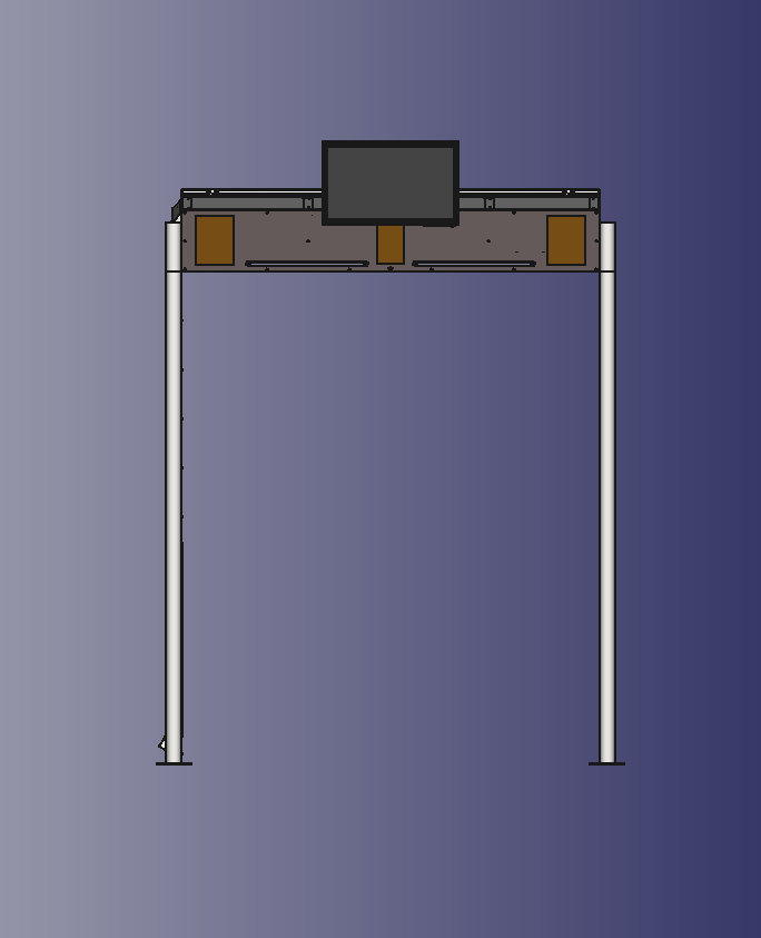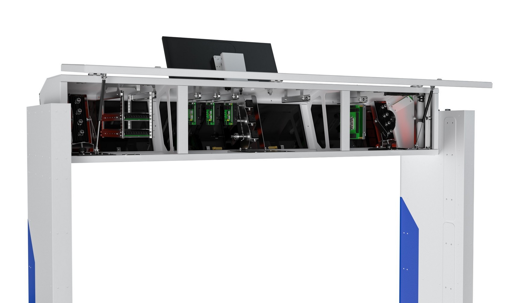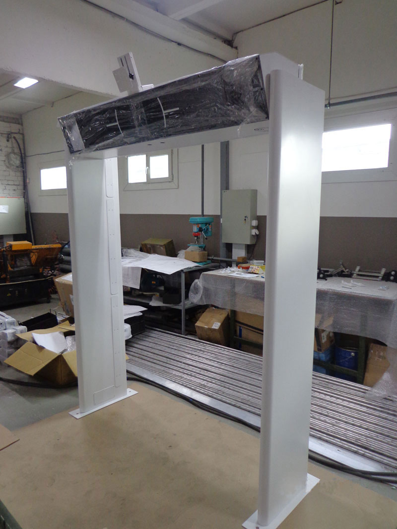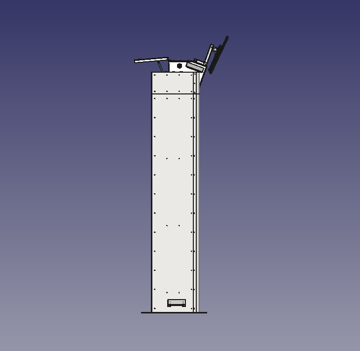 Сам корпус несложный — это опорная рамка на каркасе из металлических труб, обшитая стальным листом, монитор и съёмный модуль электроники из нескольких блоков наверху. Класс защиты — IP21.