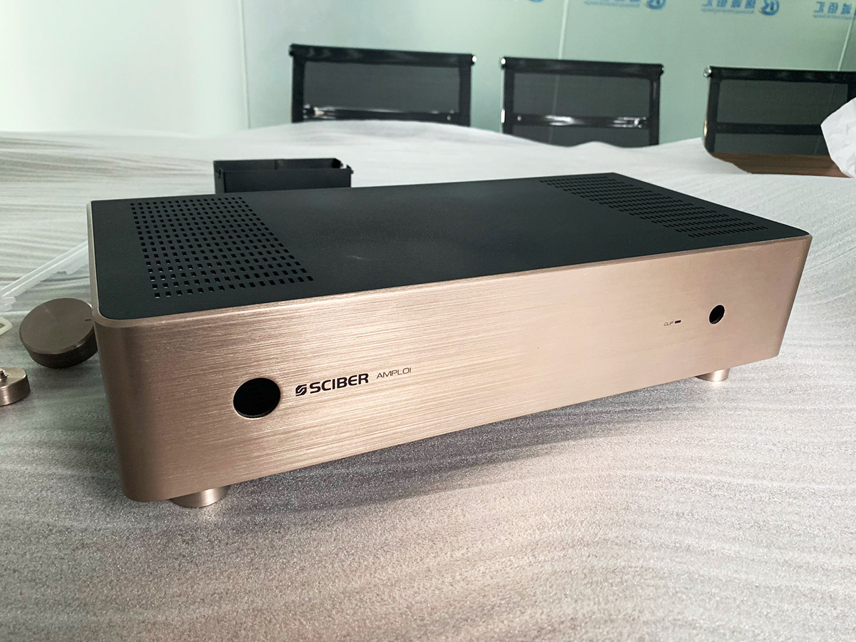 Дизайн усилителю нужен не только современный, но и «дорогой» — такой народный hi-end. А «дорогой» — это на 99% металлический корпус. На лицевой панели можно использовать так называемый brushed metal (шлифованный металл).