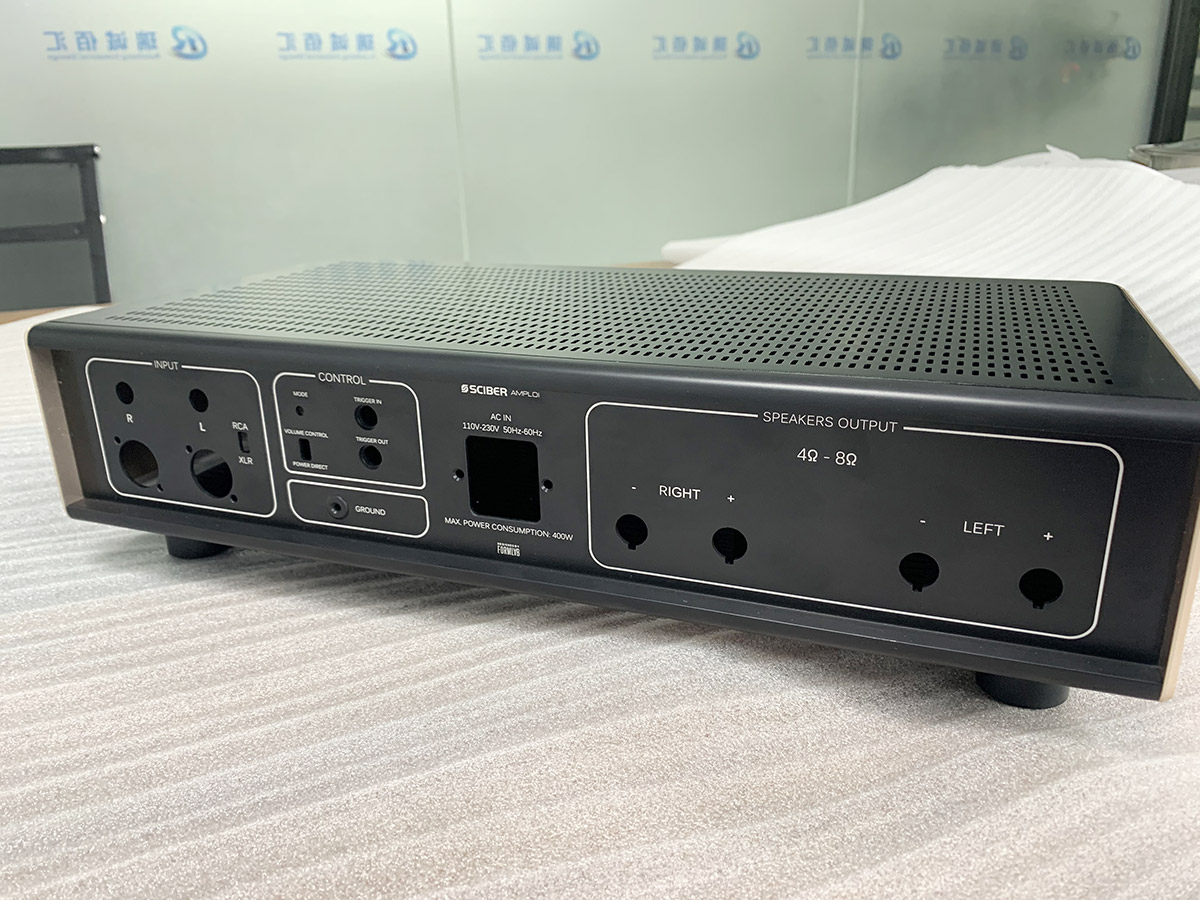 Разумеется, на корпусе должно быть место для логотипа производителя и названия модели усилителя.