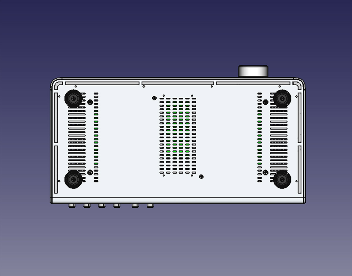 Соединение деталей корпуса — на винтах или болтах. В днище и крышке корпуса, там, где будут радиаторы и блоки питания, нужно предусмотреть вентиляционные прорези. А для притока воздуха к днищу рекомендуется поставить устройство на ножки (пусть невысокие, но они должны быть).
