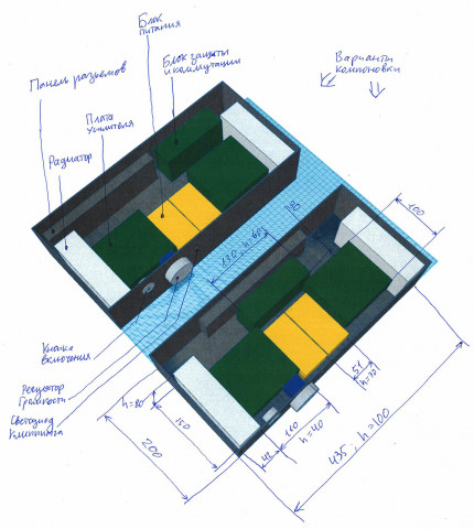 Заказчик смотрит, как в модель «вписываются» электронные компоненты. Первое замечание — высота коробки недостаточна, как минимум один радиатор выше на несколько миллиметров.