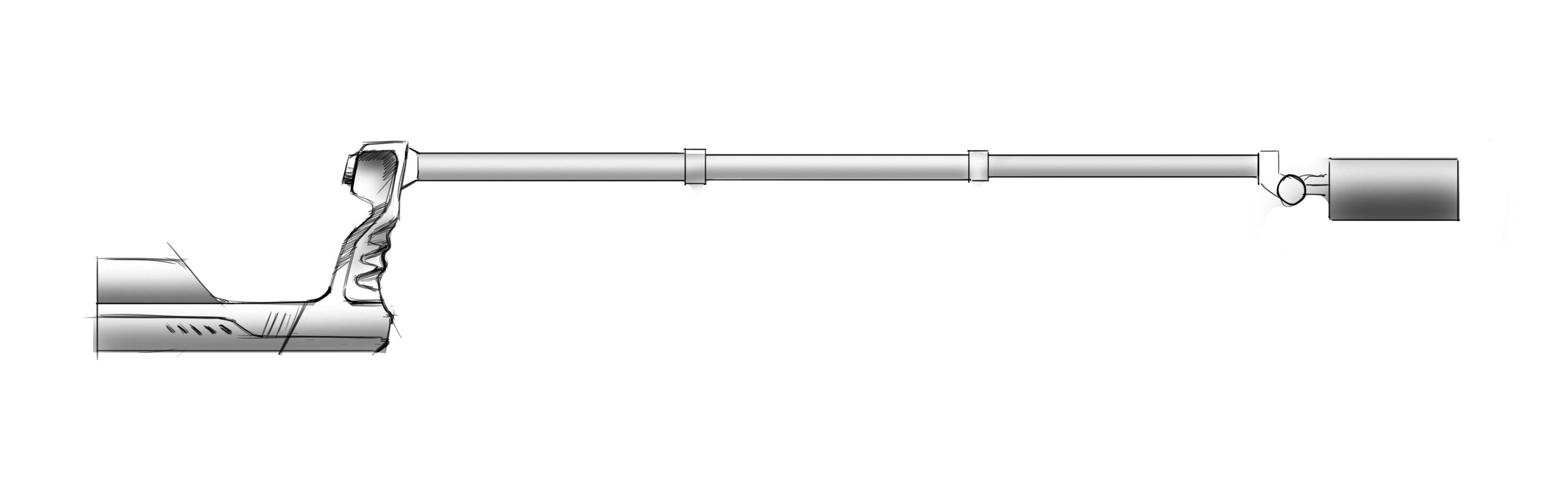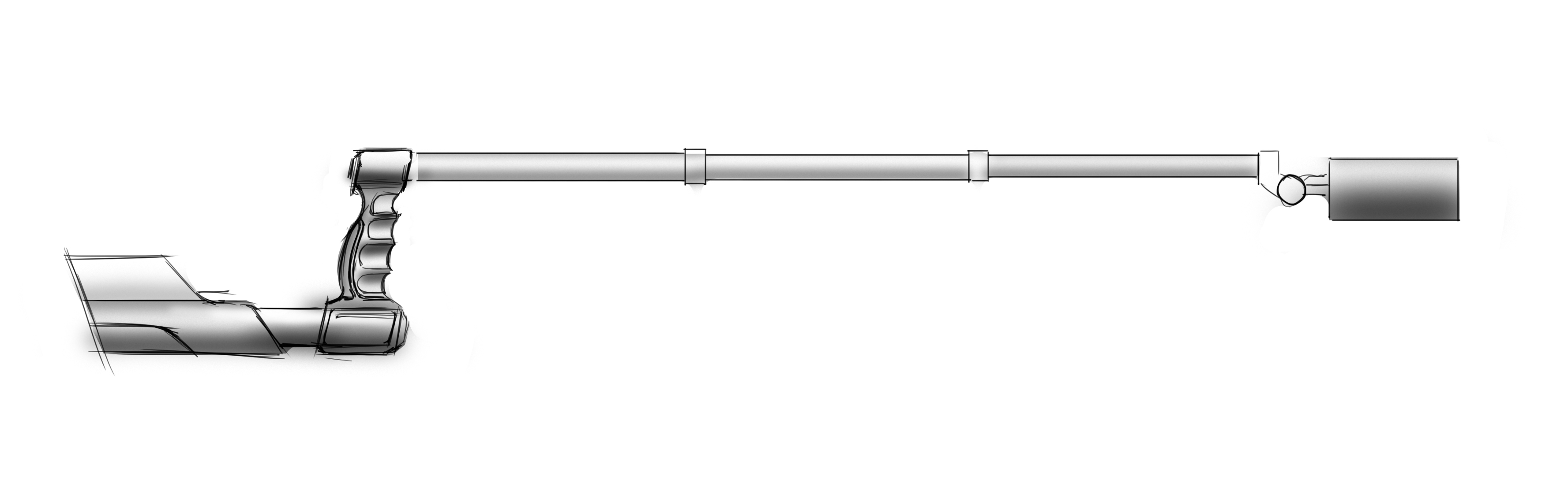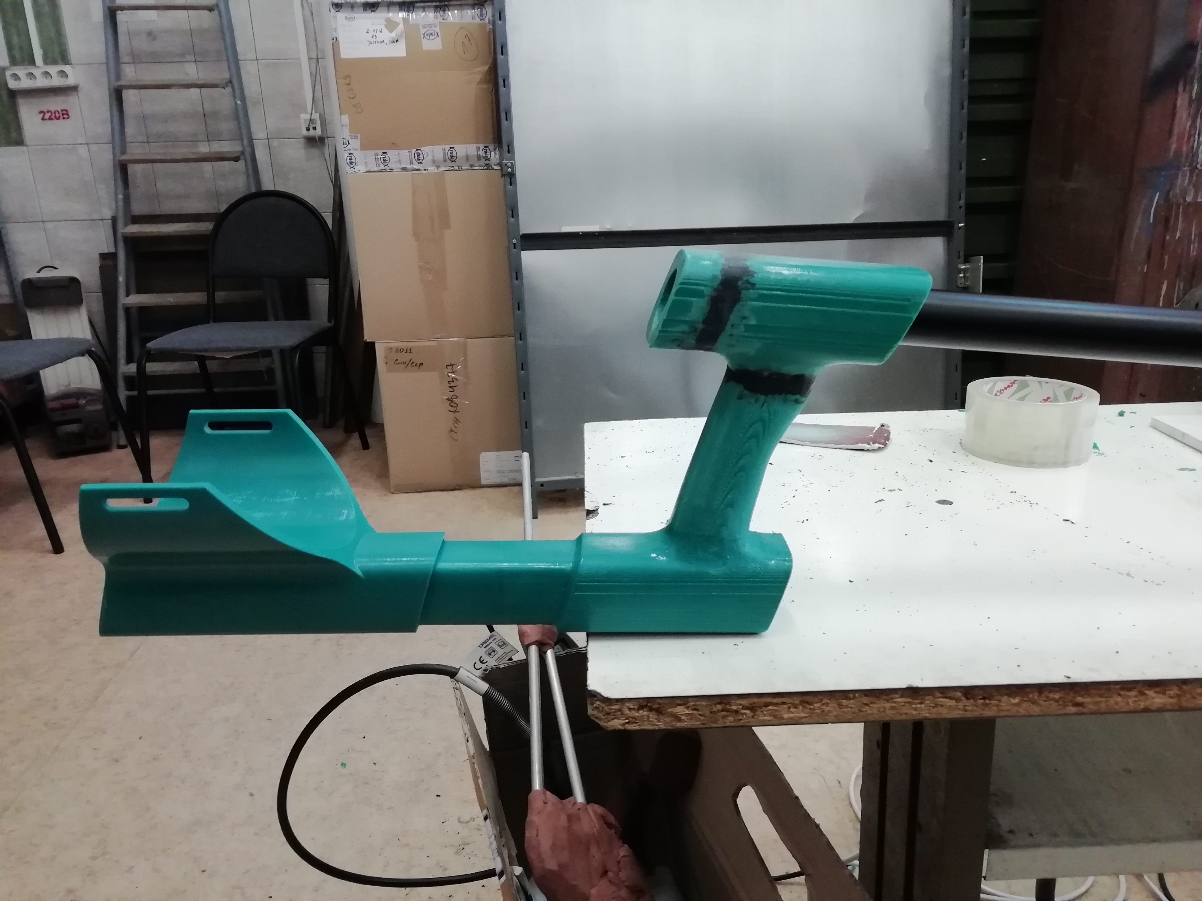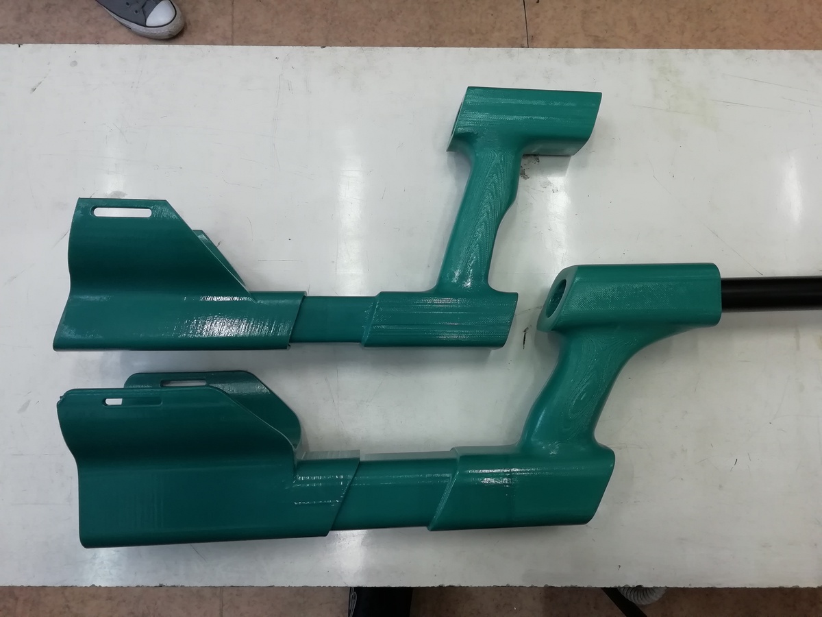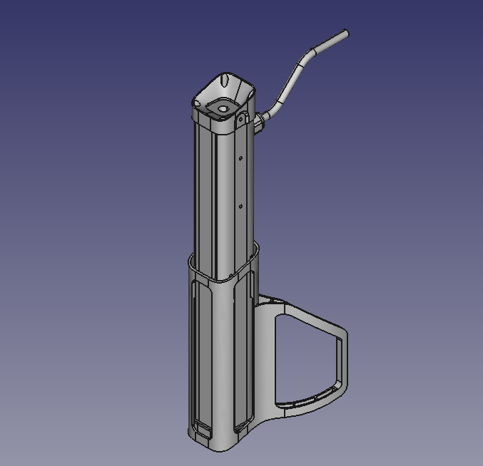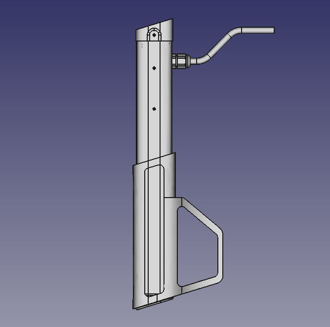 С рукояткой пока заканчиваем, замечаний по ней нет, приступаем к штанге. Помнится, заказчик хотел, чтобы она была складывающейся. Предлагаем варианты, но здесь поступает указание складывание не делать. Лучше пусть будет чемодан подлиннее — штангу буду переносить в специальном кейсе.