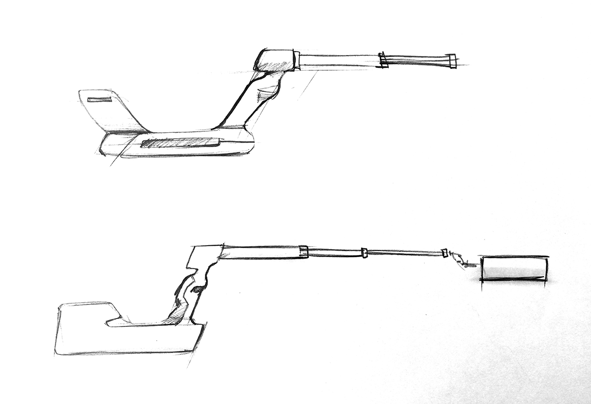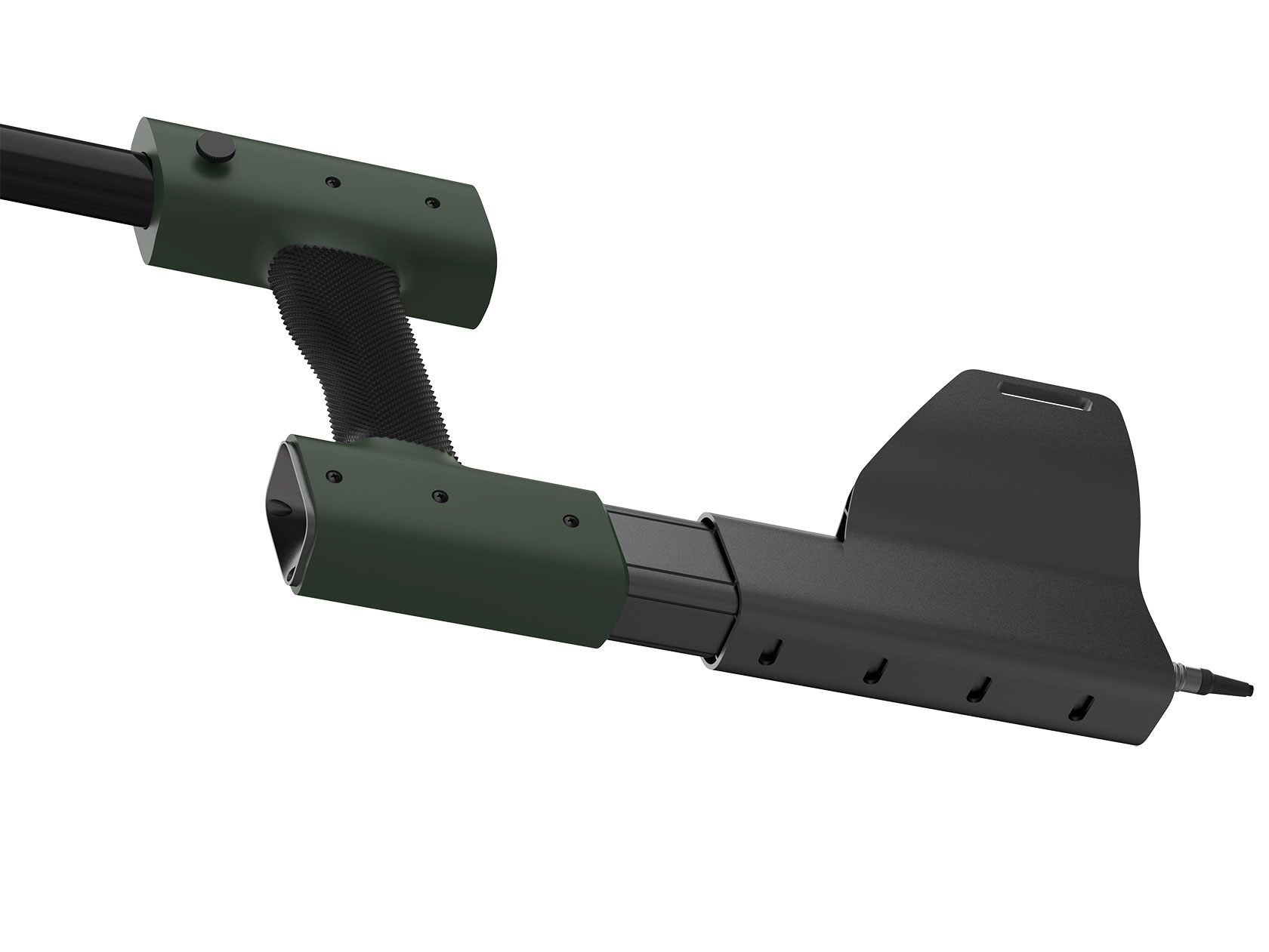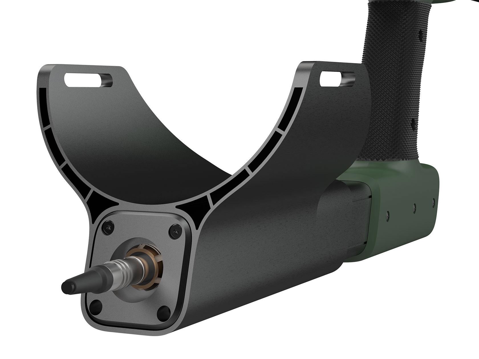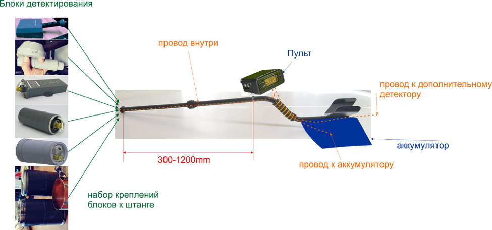 Здесь поможет штанга с рукояткой. Последняя будет удерживать сразу несколько элементов — навесной блок детектирования, пульт управления и аккумулятор. Внутри штанги размещены кабели.