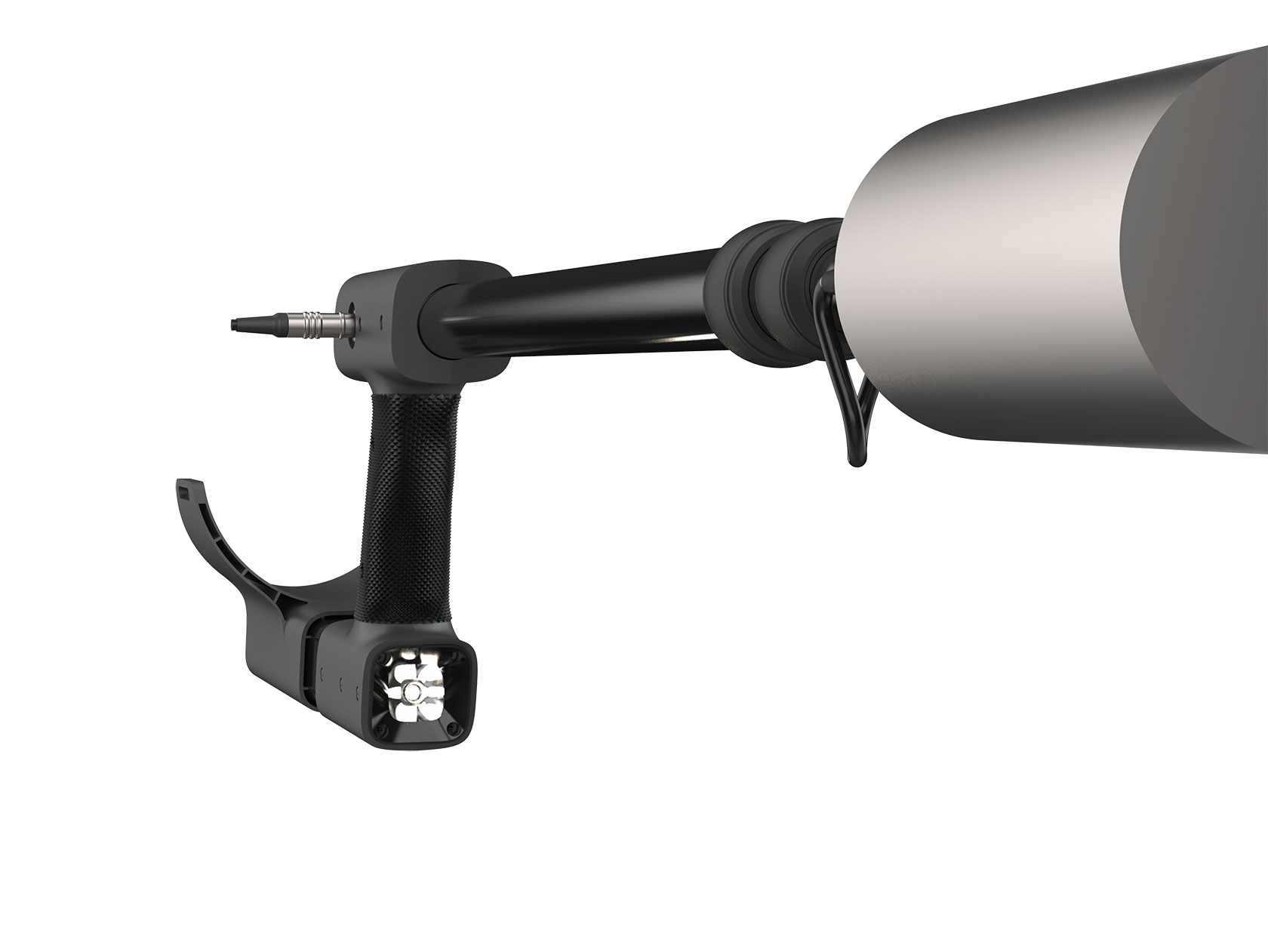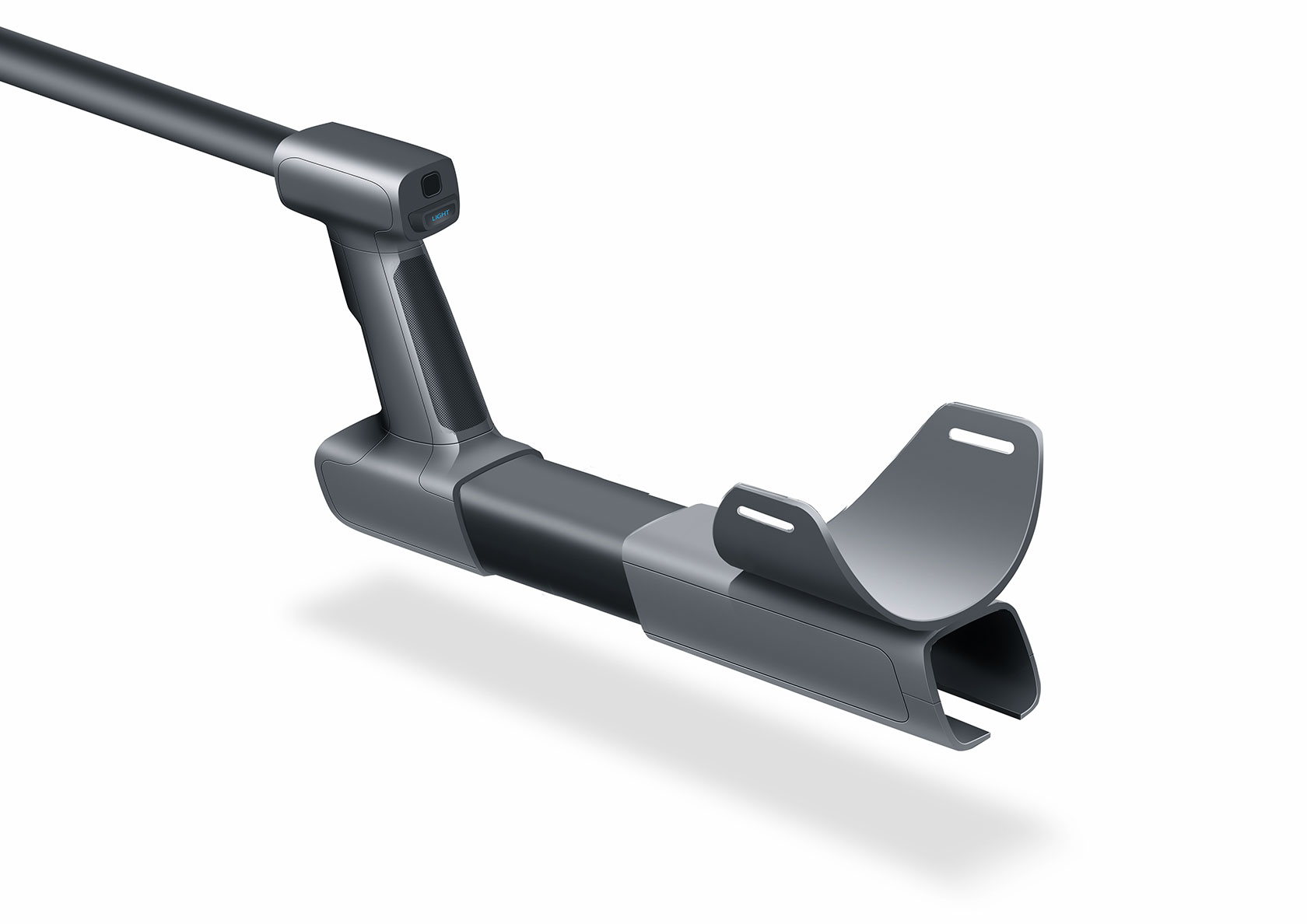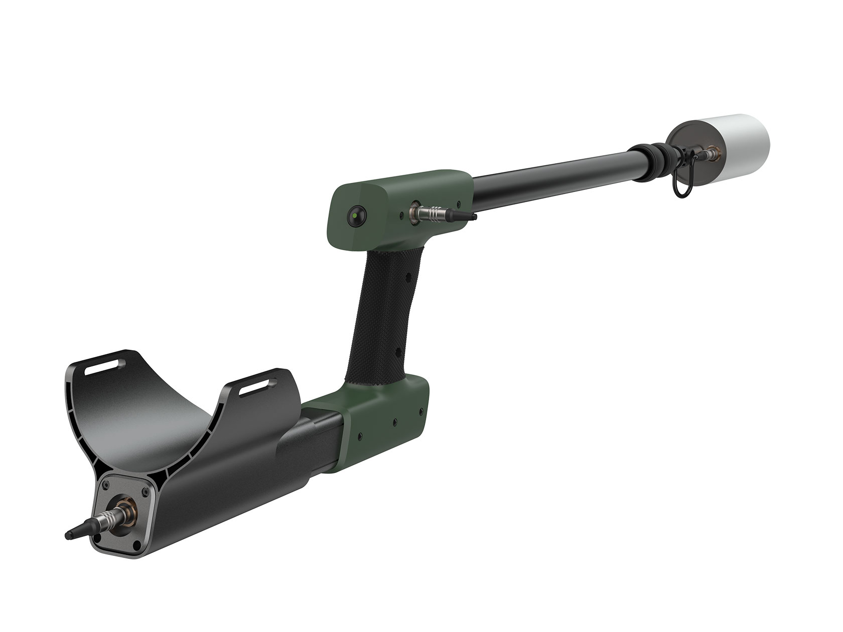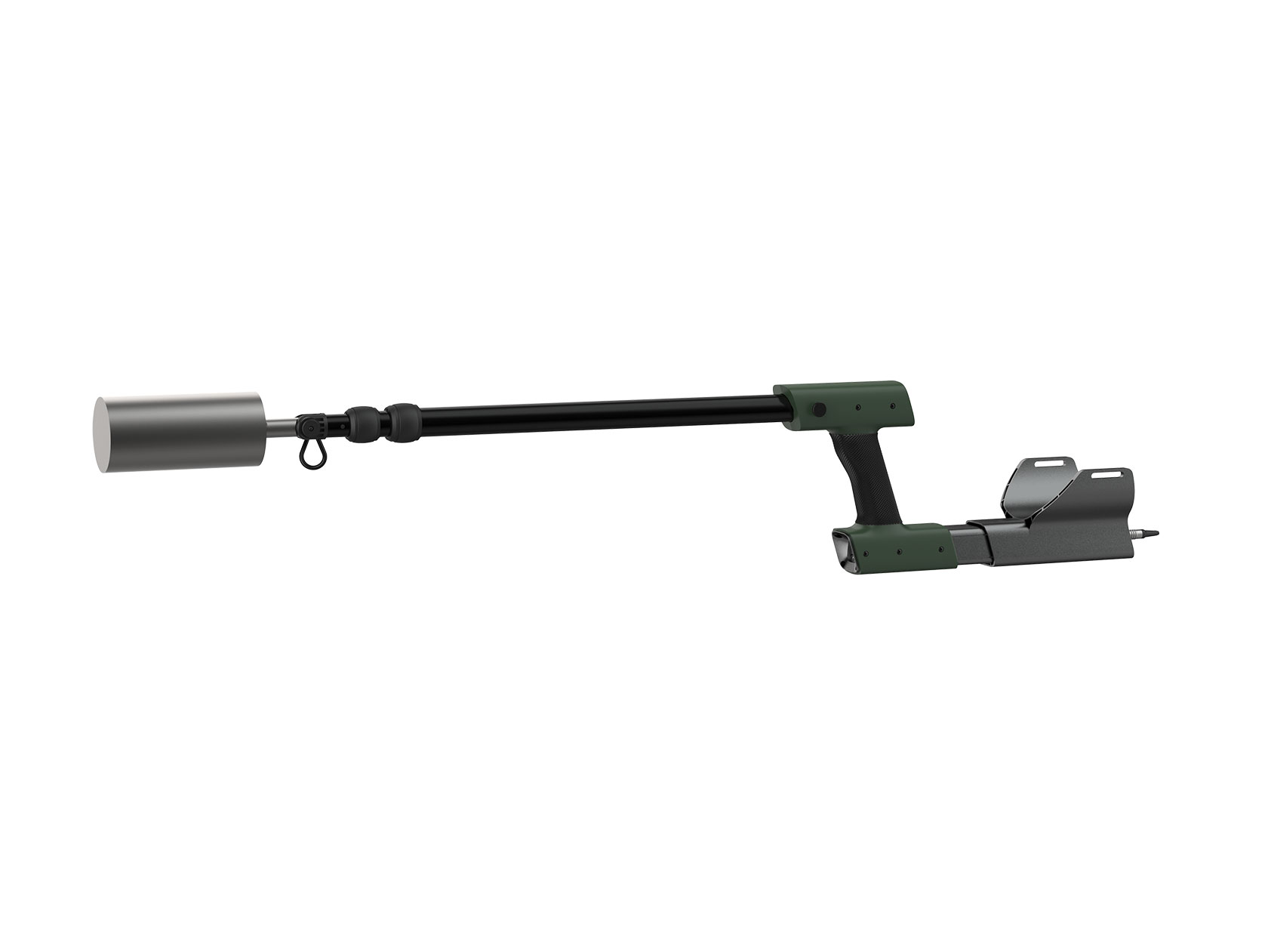 Здесь поможет штанга с рукояткой. Последняя будет удерживать сразу несколько элементов — навесной блок детектирования, пульт управления и аккумулятор. Внутри штанги размещены кабели.