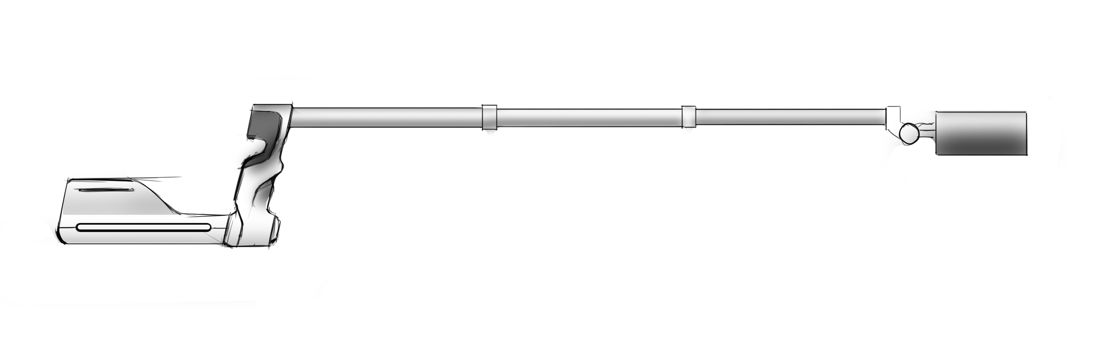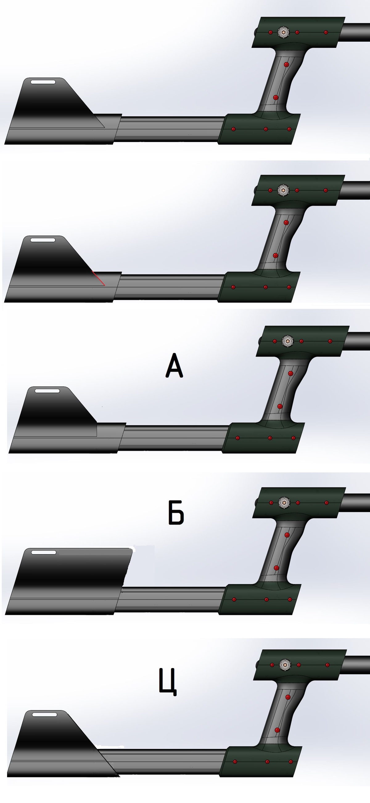 Условия: штанга должна обеспечивать вылет блока детектирования на расстояние от 300 до 1200 мм, считая от ручки. К ней могут подключаться разные блоки разных габаритов и веса (до килограмма).