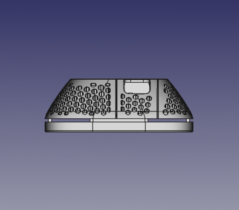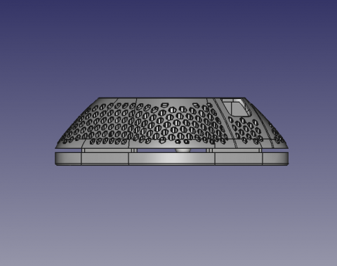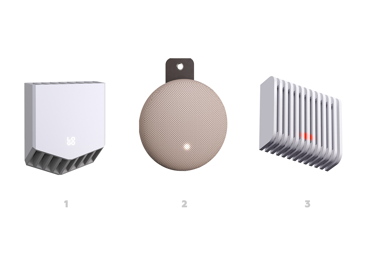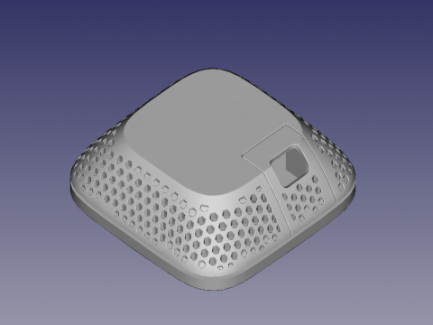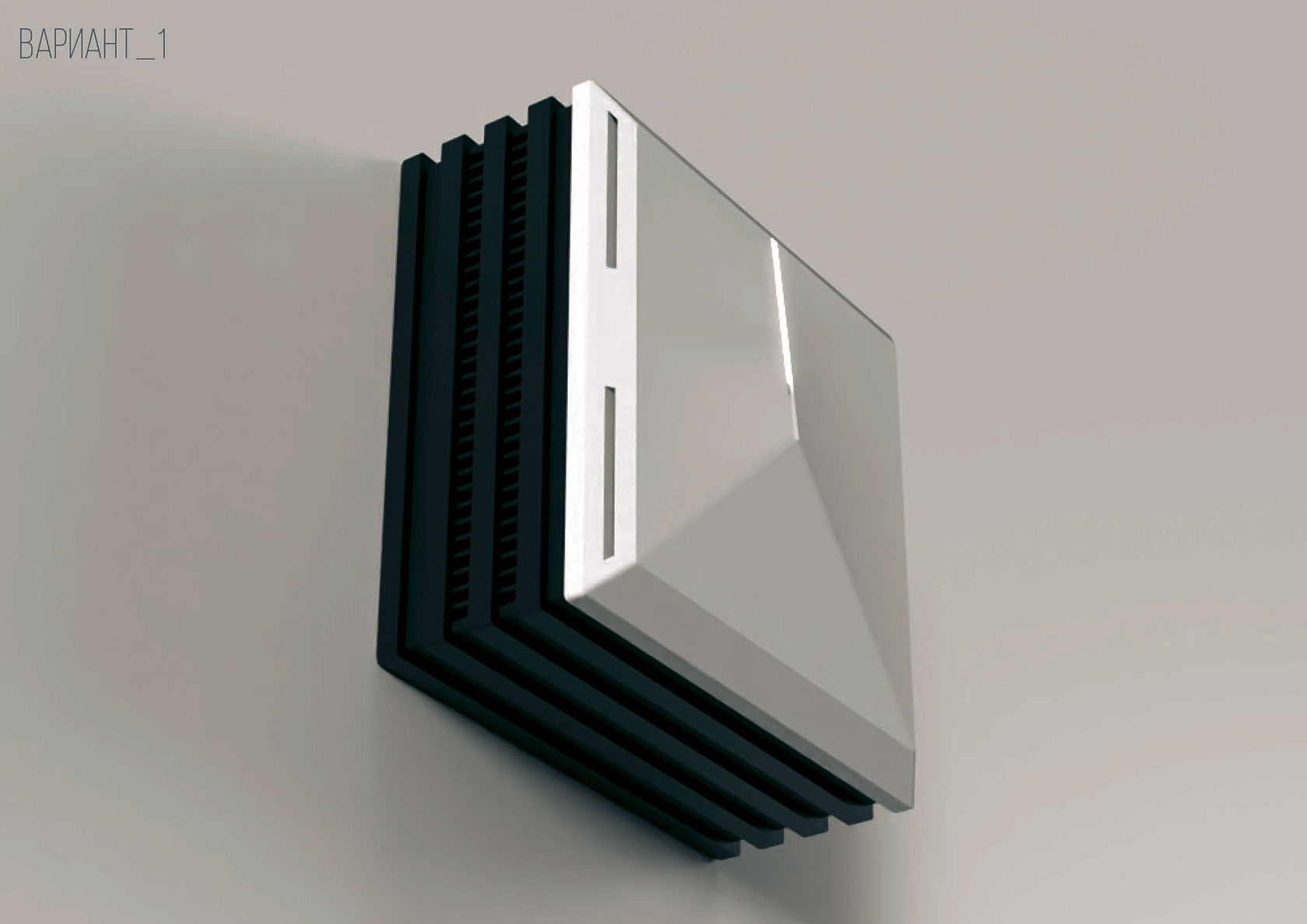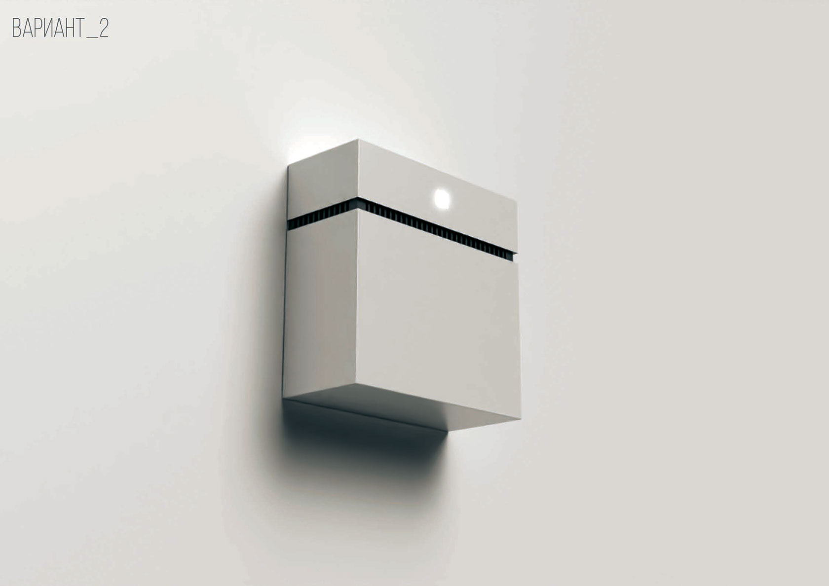 | Что нужно сделать? Задачи | 1. Устройство — бытовое, формат — «Умный дом», надо сделать «модно-молодежно». Но в то же время солидно. Это массовый бытовой продукт низкого ценового сегмента. Следовательно, необходимо минимальное количество деталей, закладных элементов, точек сборки и крепежа и пр. — для удешевления производства. 2. Обязательна перфорация на боковых стенках корпуса. Желательно — на лицевой панели корпуса, для свободной циркуляции воздуха, чтобы обойтись без вентиляторов. 3. Корпус состоит из двух частей. Нужно, чтобы стык между частями был заметен по минимуму. 4. Внутри корпуса есть приёмо-передающее устройство, экранирование антенны которого крайне нежелательно. 5. IP30 или IP40. 6. Должна быть звуковая сигнализация на 85 Дб, а также светодиод для индикации состояния работы. 7. Предусмотреть внутреннюю кнопку «Тест» с нажатием спицей/скрепкой на тыльной стороне корпуса. 8. Устройству нужен отделяемый кронштейн для крепления на стену. |