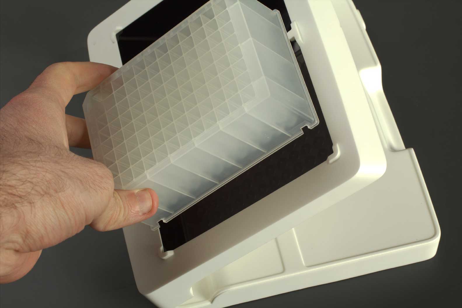 Светодиодная подставка — вещь, необходимая для проведения популярного ПЦР-анализа. На эту подставку в лаборатории устанавливается специальный планшет с пробирками, лаборант на ПК выбирает нужный реагент, а подставка подсвечивает лунки, в которые этот реагент необходимо налить.