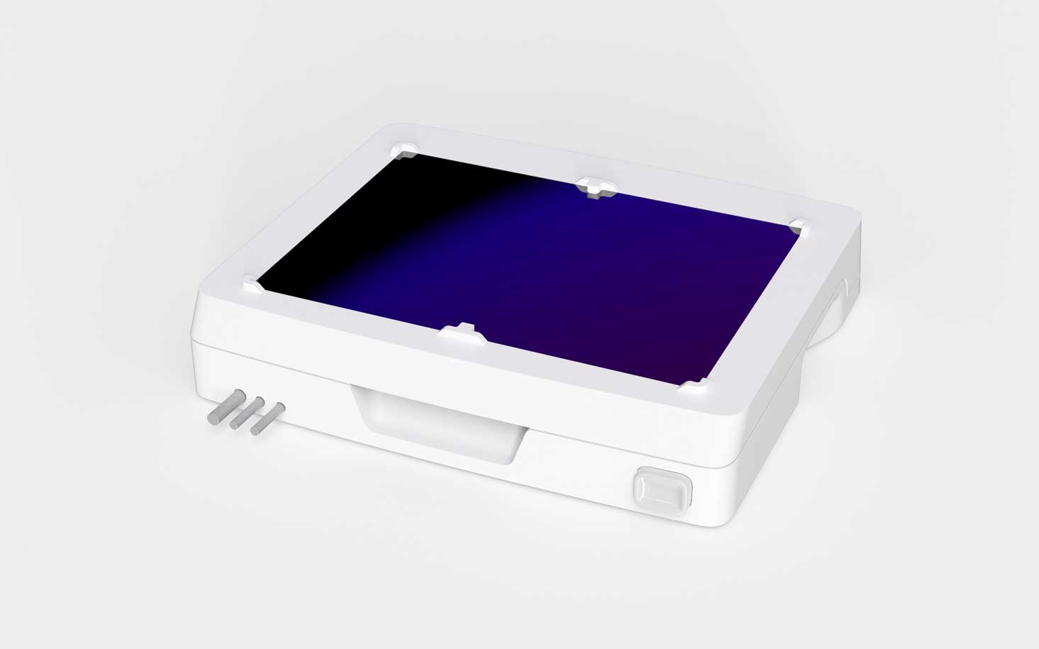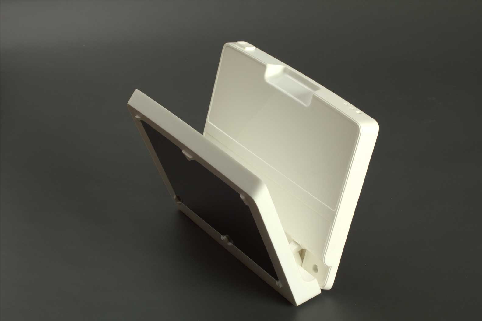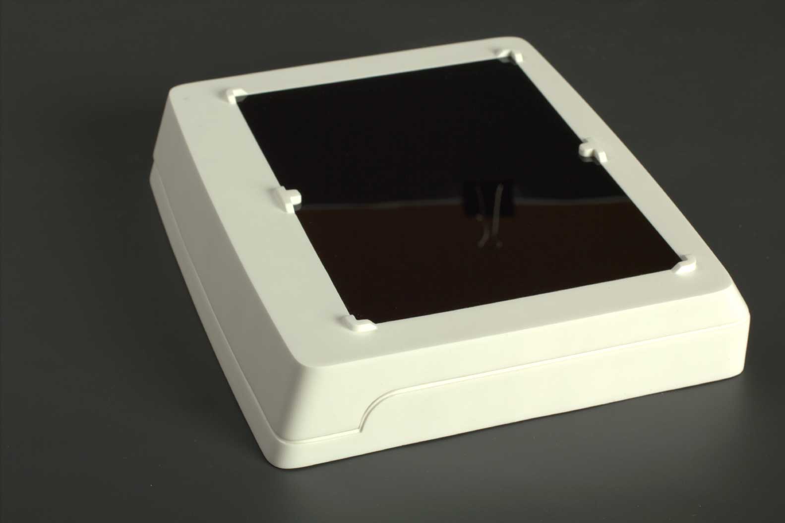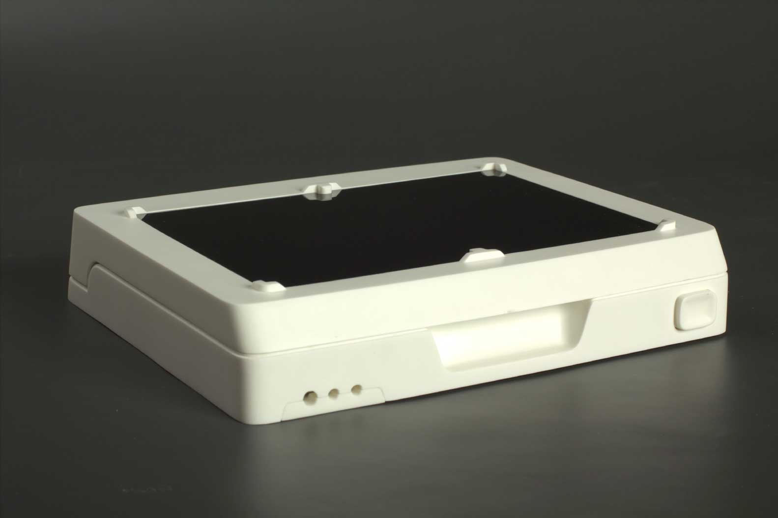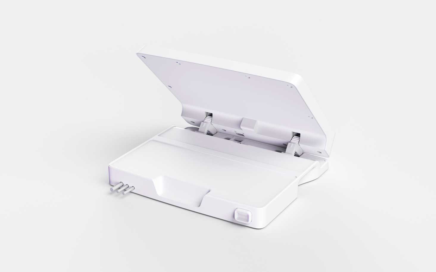 Платы внутри корпуса и сами половины корпуса должны крепиться при помощи винтов; соединение — разъёмное, с использованием металлических закладных. Материал корпуса нужно выбрать устойчивый к обработке обеззараживающими составами и облучению ультрафиолетом. На подставку запросто могут нечаянно пролить какой-нибудь реагент, и она должна без проблем это выдержать.