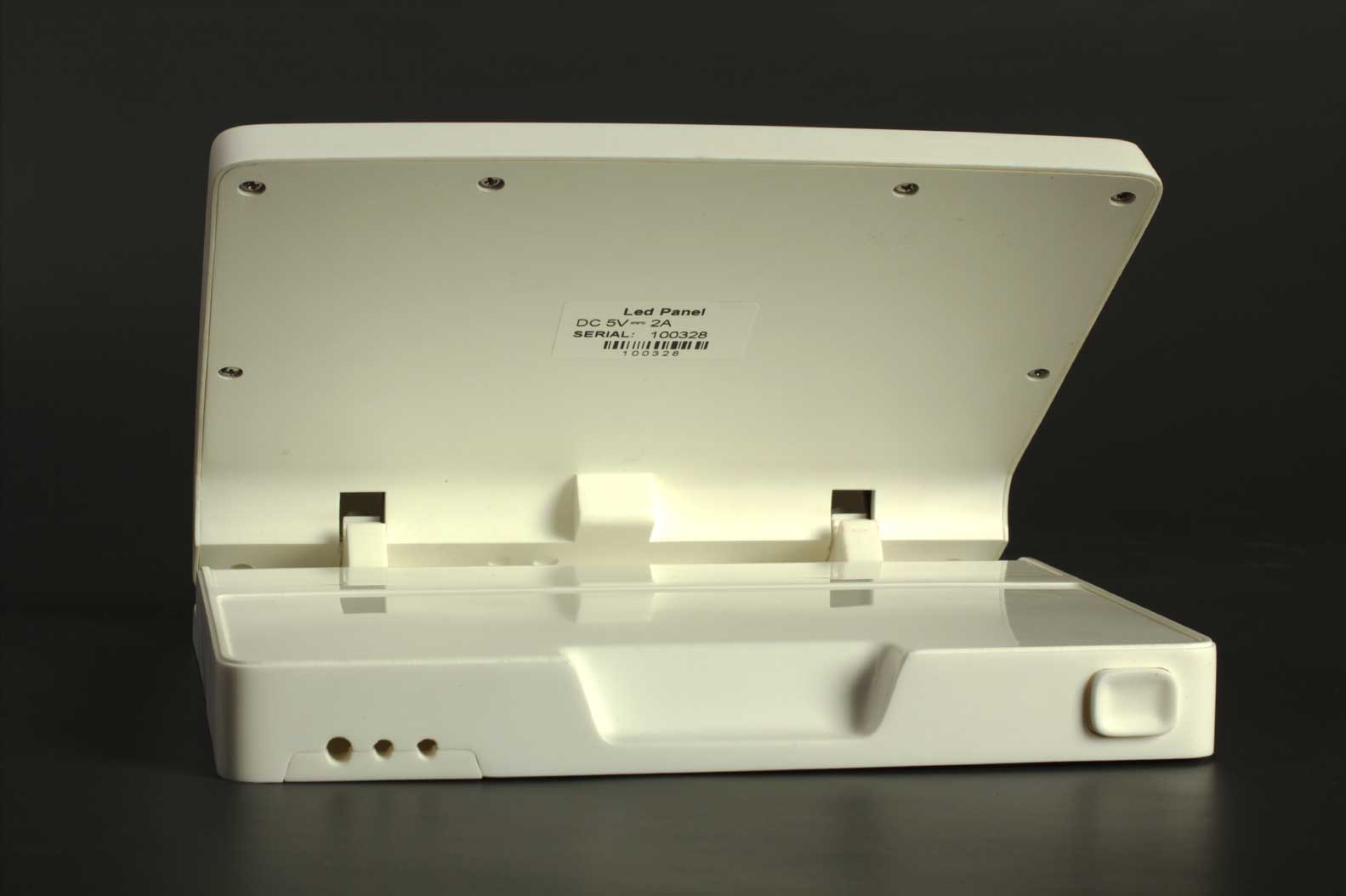 На корпусе есть разъёмы питания, Ethernet, USB, собственно механизм, регулирующий угол наклона, нескользящие ножки и стекло над светодиодной панелью из акрила. Стекло обеспечивает затемнение, чтобы скрыть светодиоды и плату.